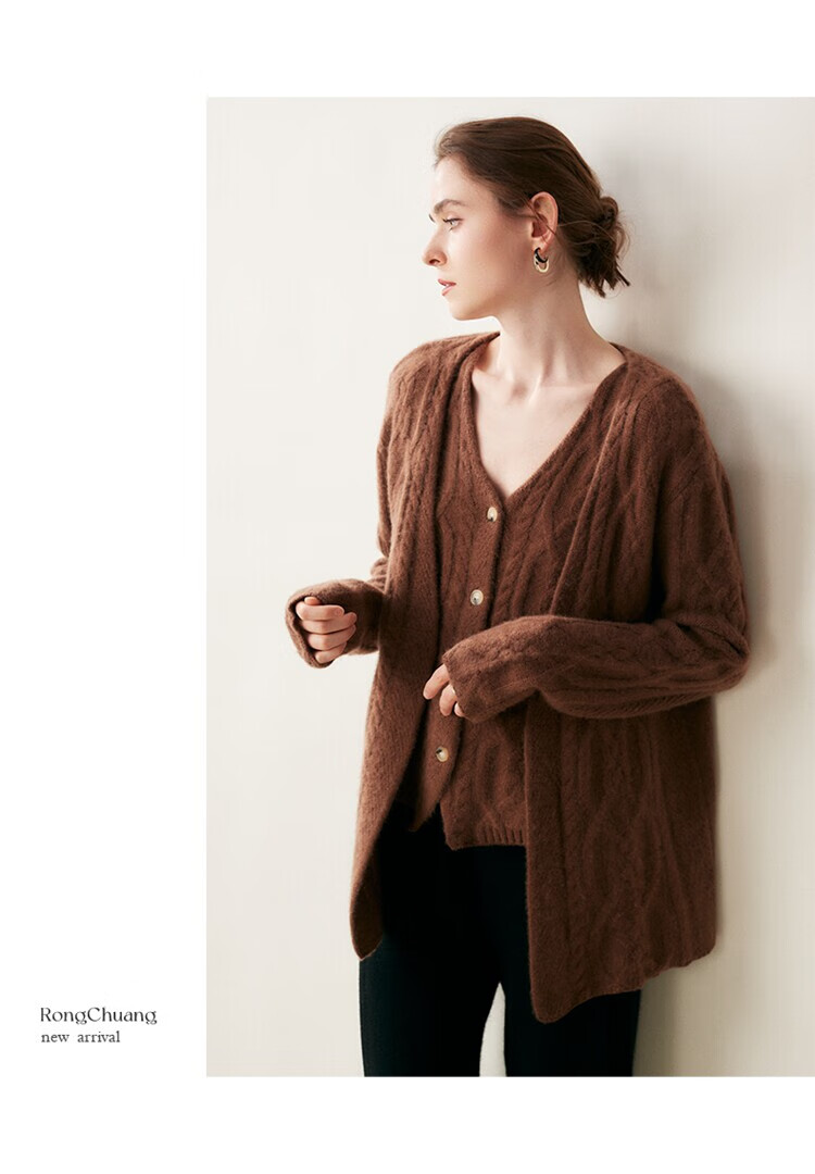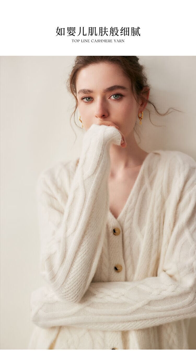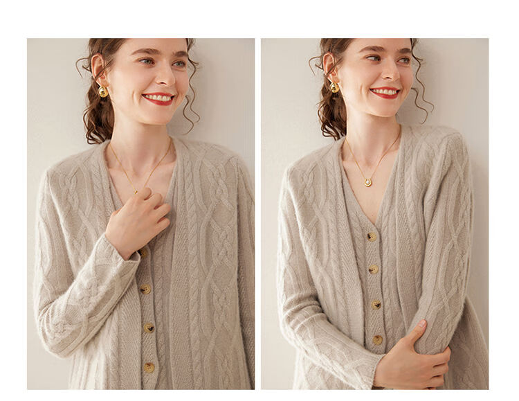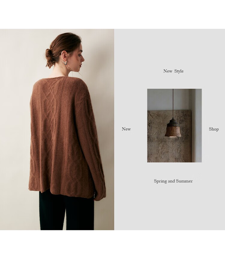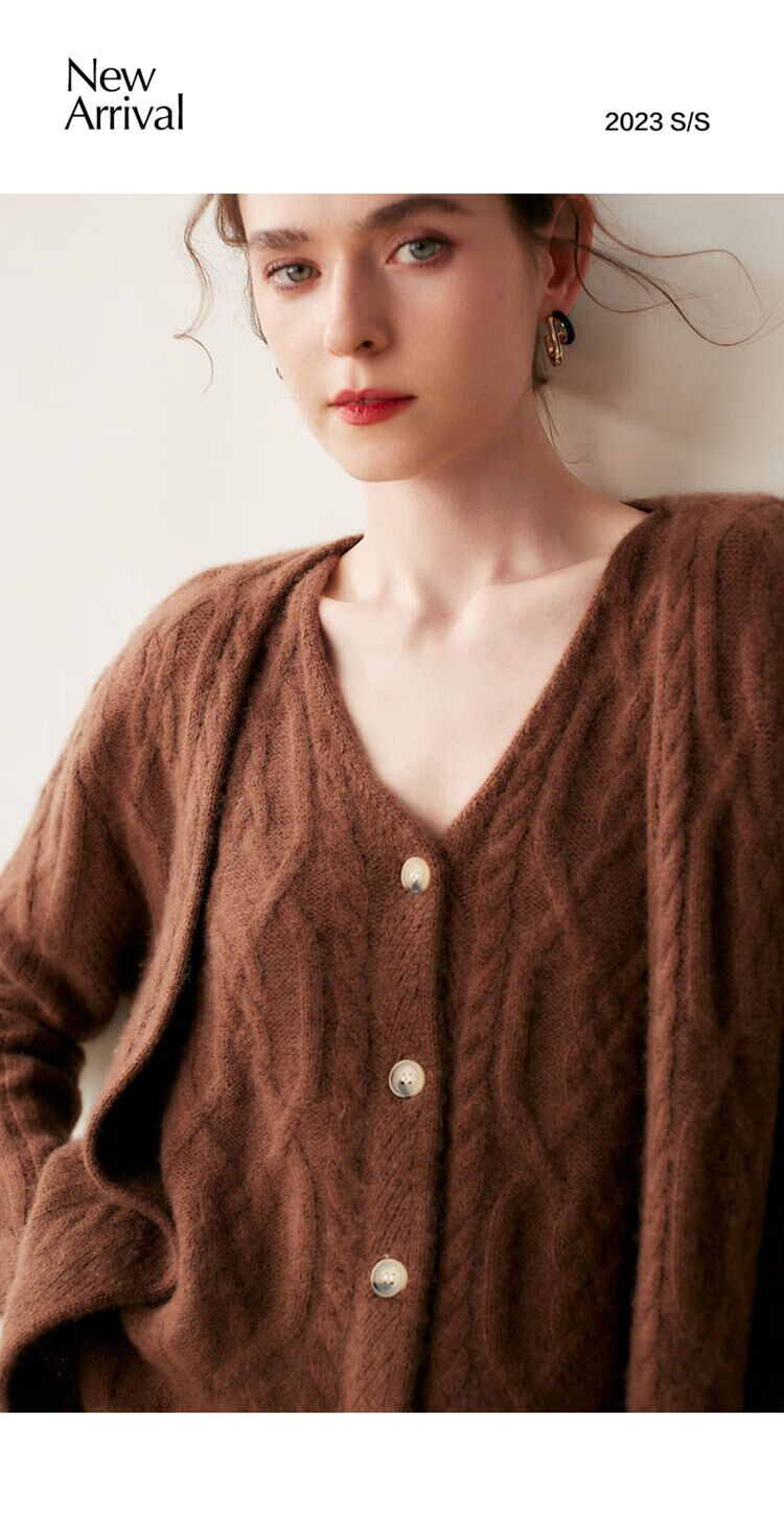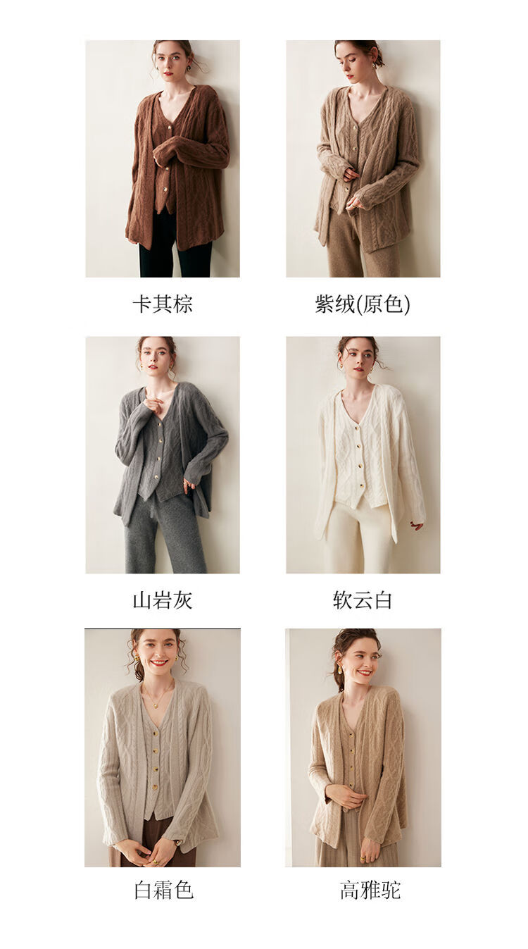 SENLIYA international light luxury high-end cashmere sweater baby small cashmere knitted cardigan women's loose lazy style cashmere sweater hemp khaki brown M