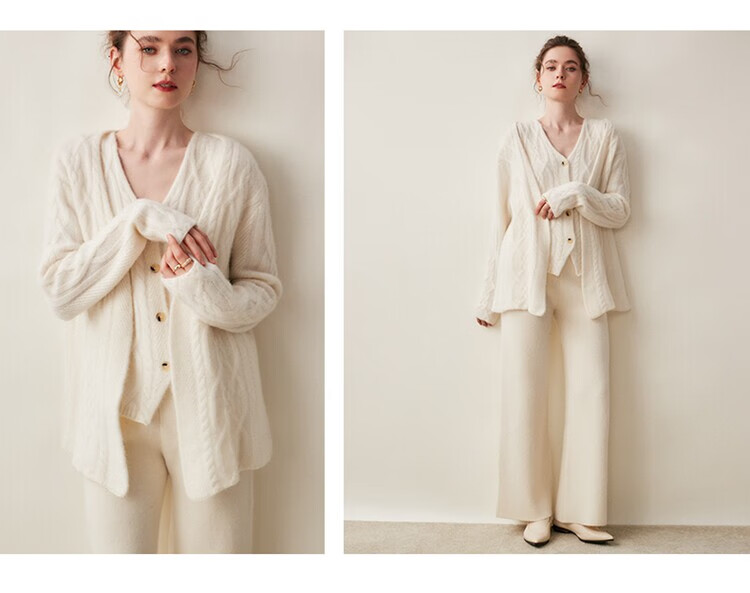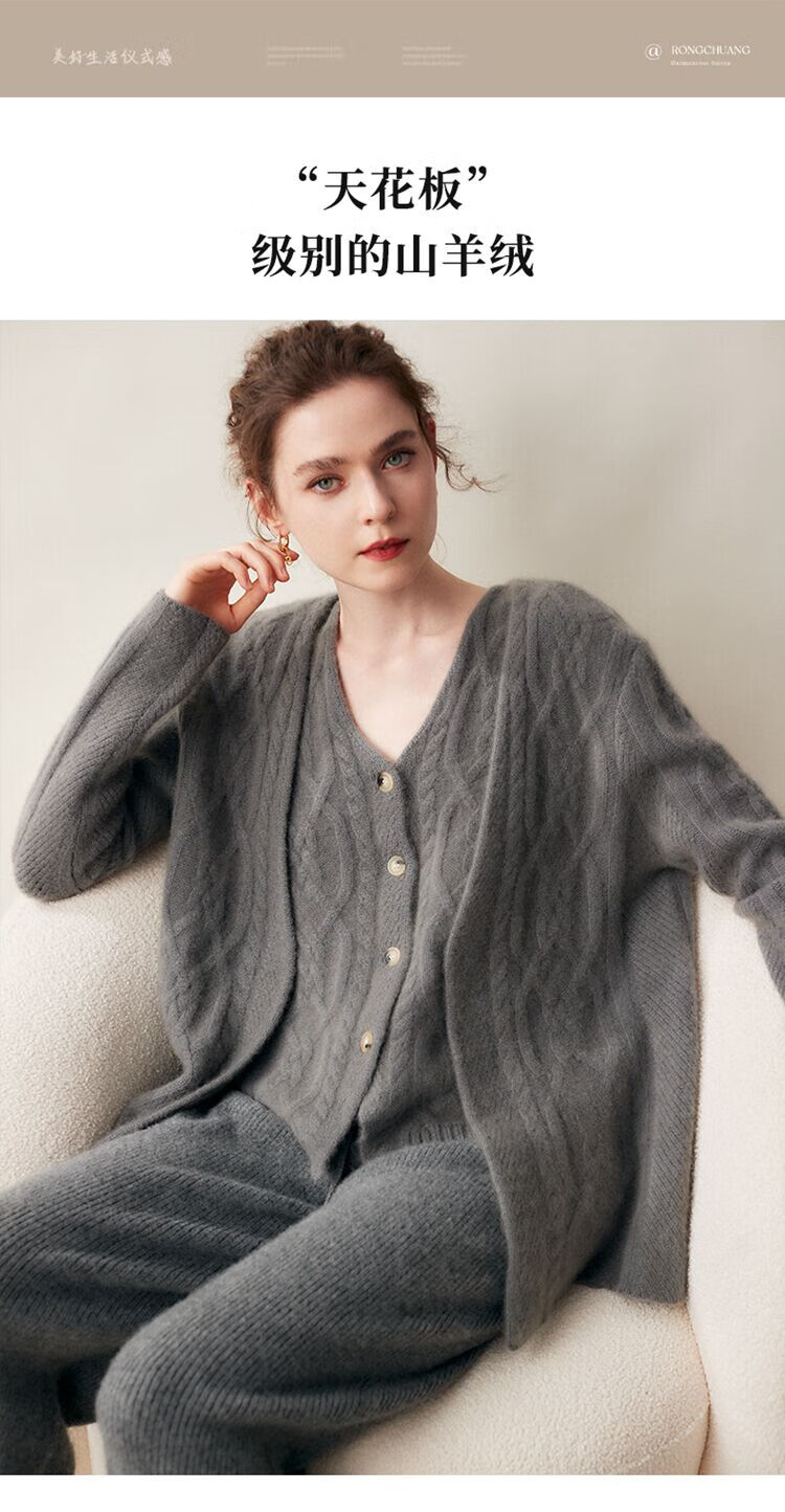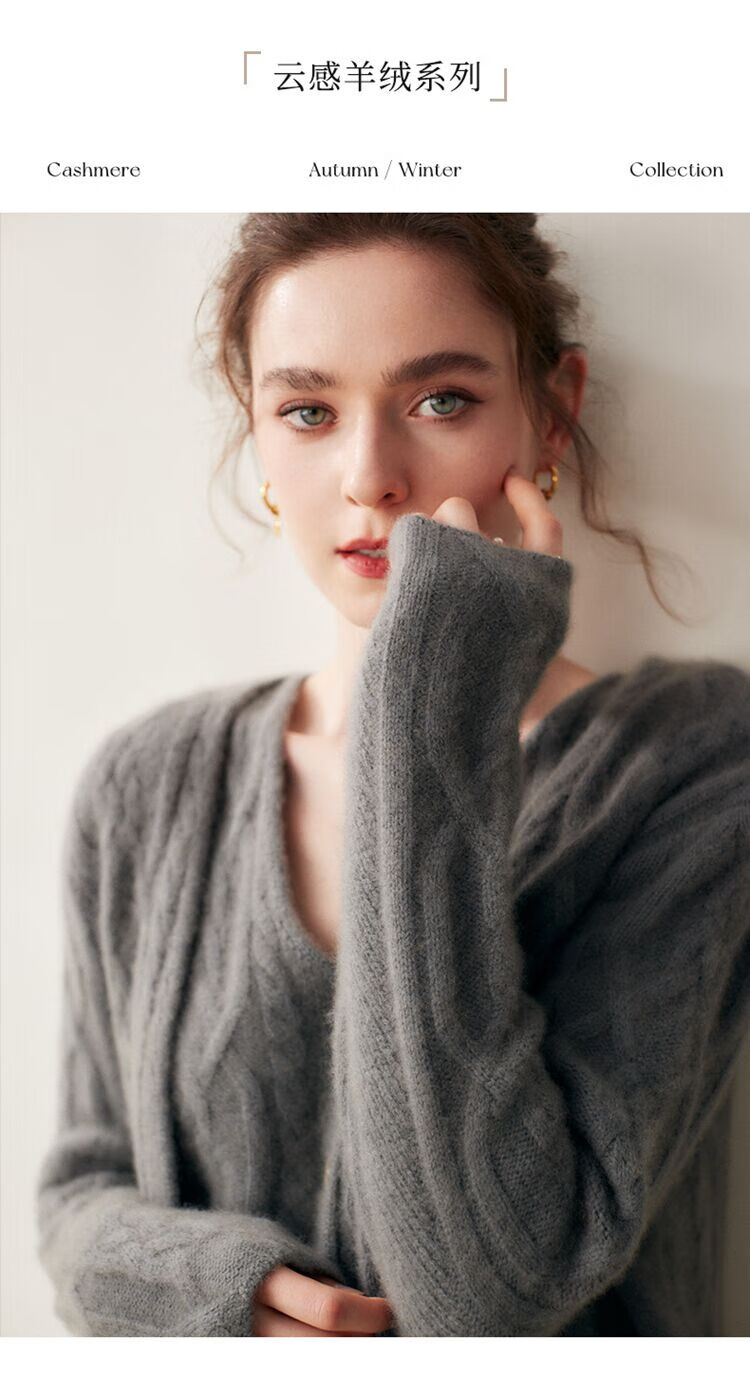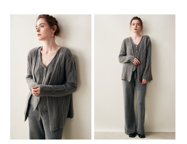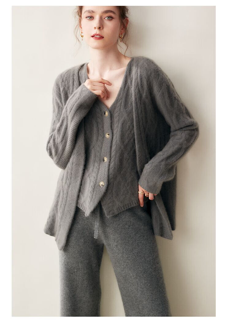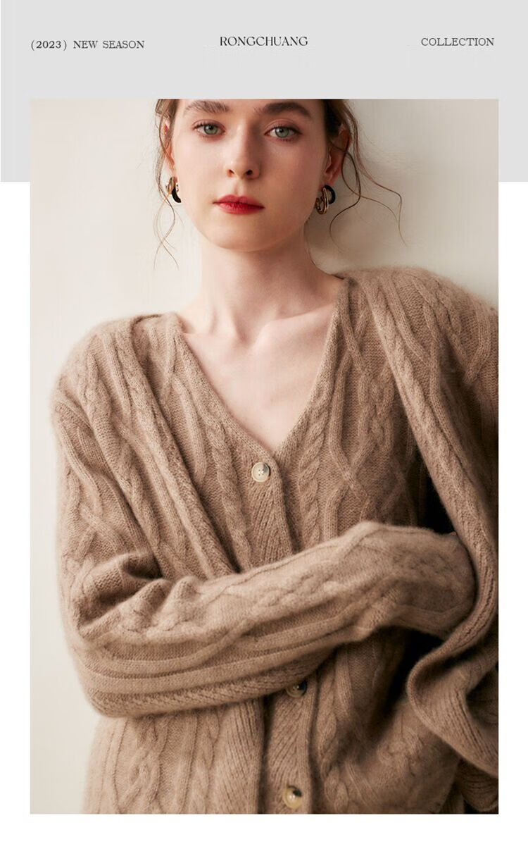 SENLIYA international light luxury high-end cashmere sweater baby small cashmere knitted cardigan women's loose lazy style cashmere sweater hemp khaki brown M