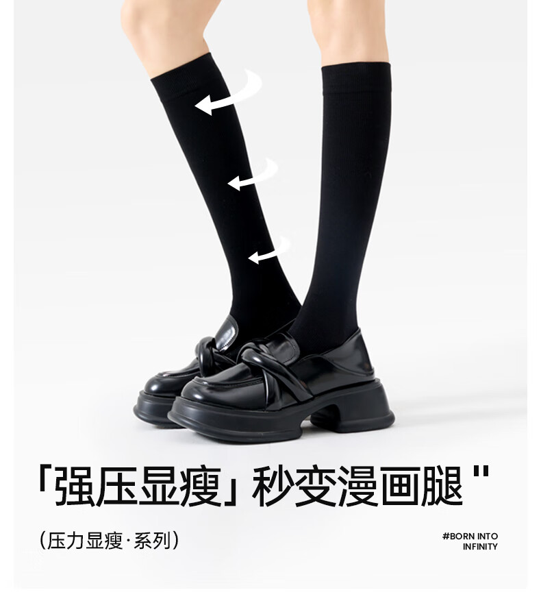 Modal calf socks pressure socks JKN pressure women's spring and autumn strong pressure JK socks black over-the-knee high tube half-medium tube long tube pressure over-the-knee socks 48cm black (155-168cm) 1 pair L strong pressure version double the pressure upgrade, fleshy legs