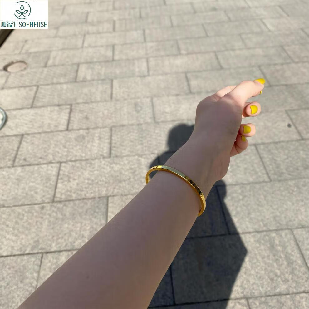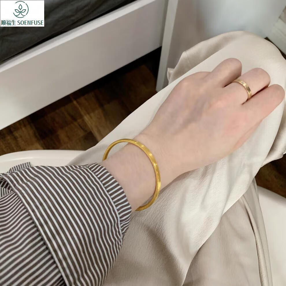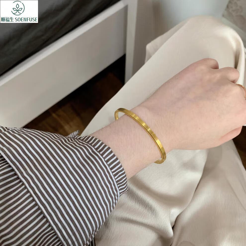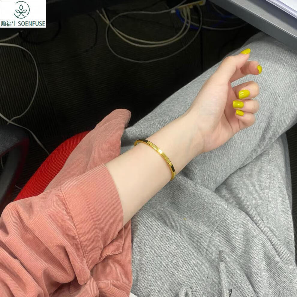 Yongsi 18K gold light luxury cold style minimalist ancient style open bracelet personality versatile bracelet high color retention