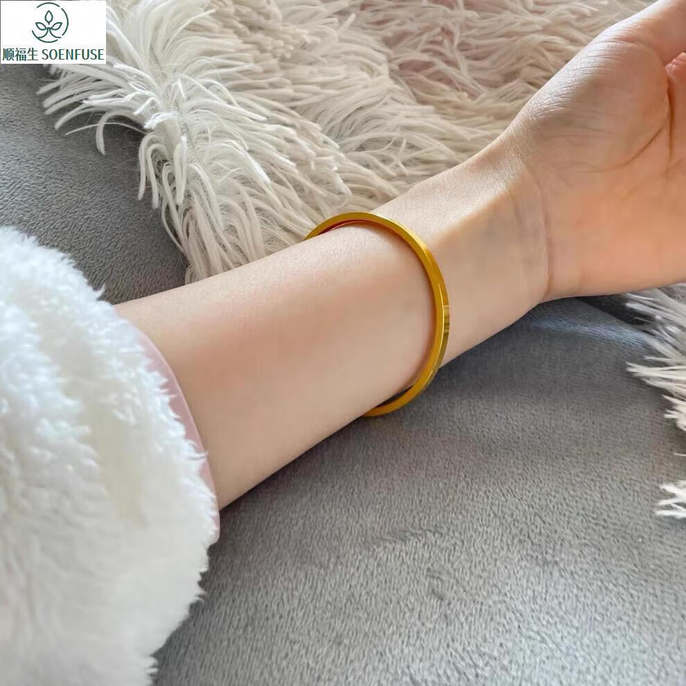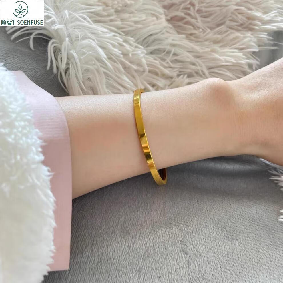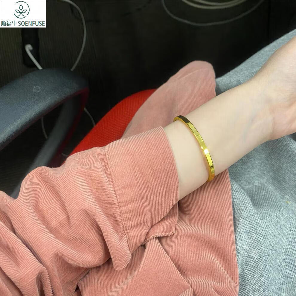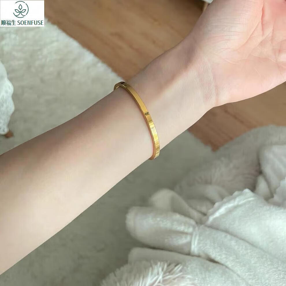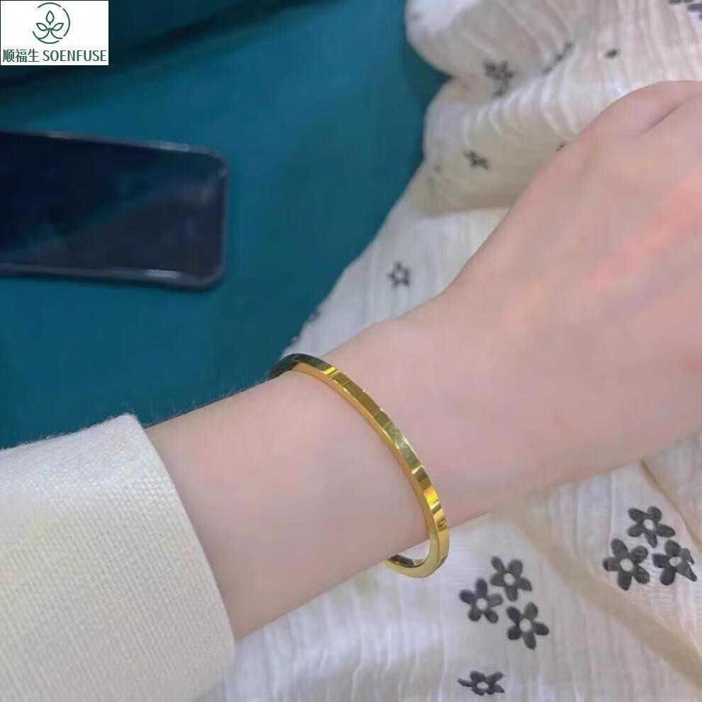 Yongsi 18K gold light luxury cold style minimalist ancient style open bracelet personality versatile bracelet high color retention