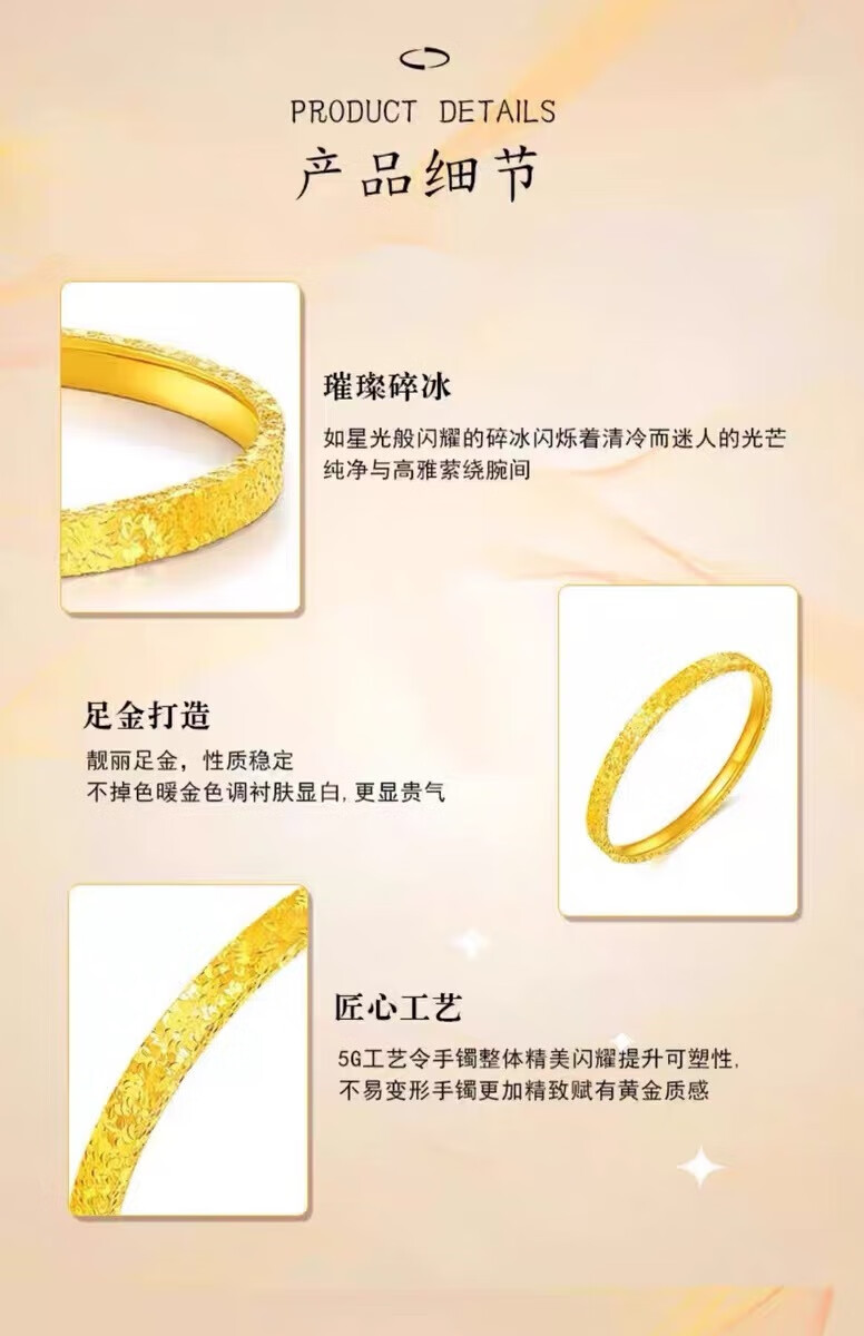 Quan Yin Gold New Bracelet Women's Ice Bracelet 999 Gold Plated Bracelet for Mom and Girlfriend on Holidays 56 Circle Mouth 8090 Jin Jin equals 0.5 kg 5.9g