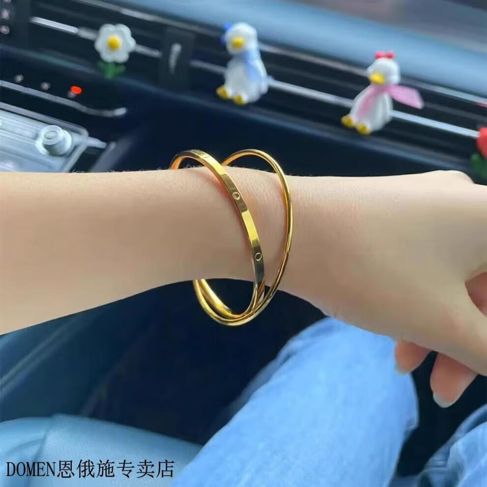 Reza Old Phoenix Gold Store Gold Double Circle Bracelet Retro Plated 5G Imitation Gold Dot Bracelet Solid Simple 999 Circle Bracelet