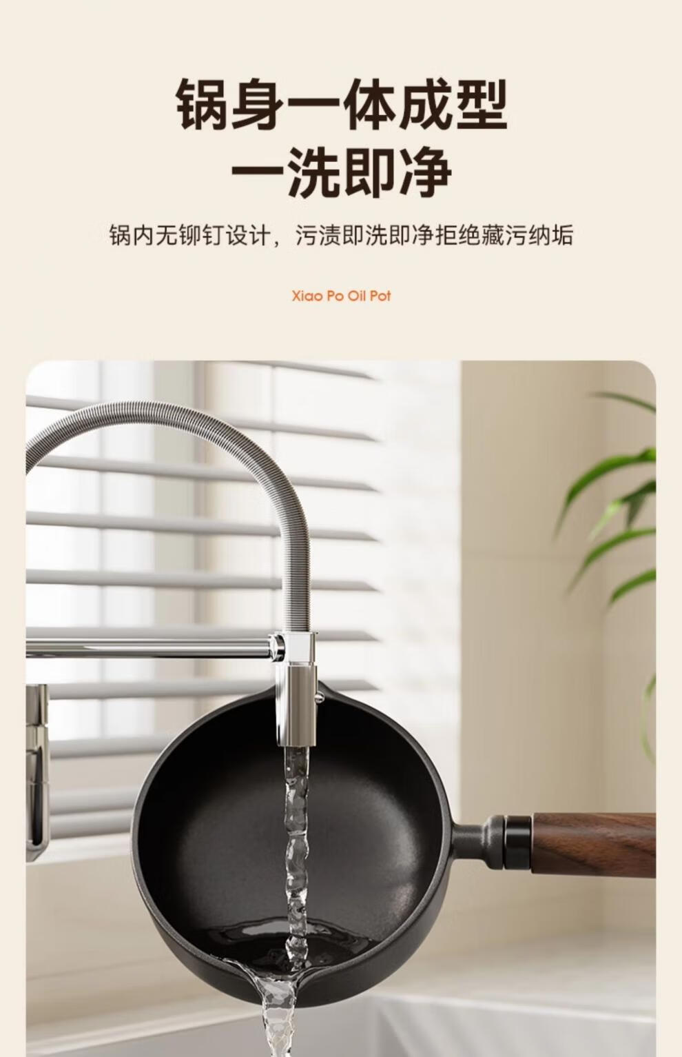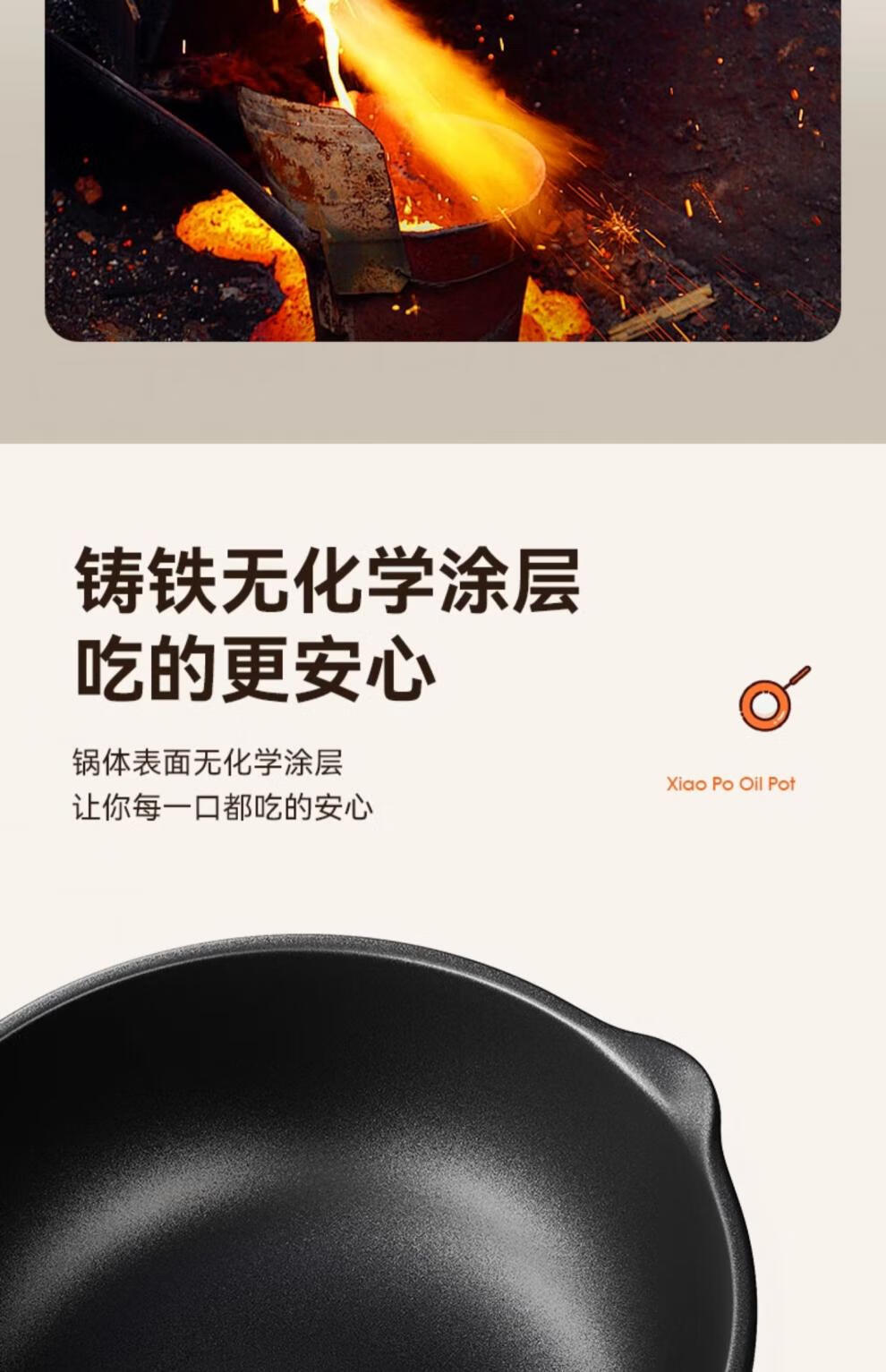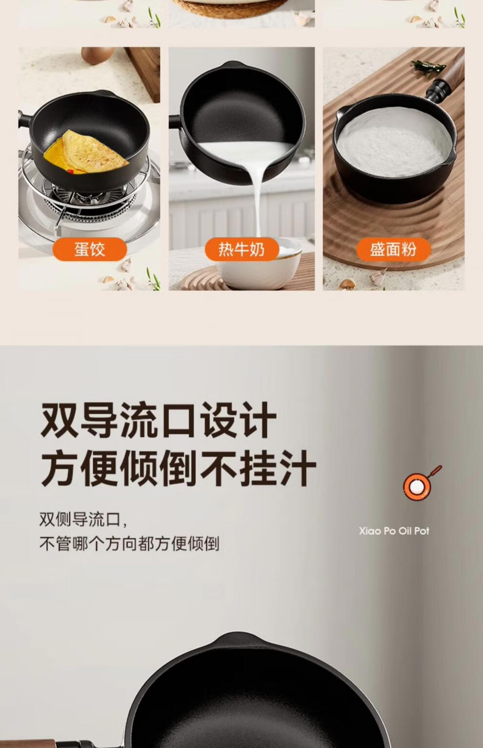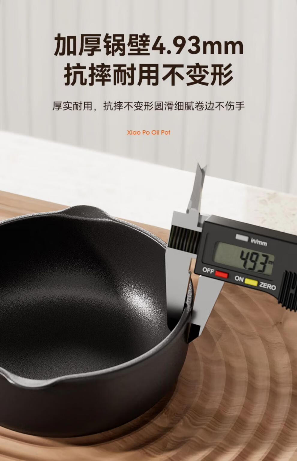 Fat Donglai's same style cast iron small frying pan, deepened omelette pan, multi-functional hot oil burning oil pouring oil pouring pan (height 6cm) pouring oil pan + free pot stand + oil brush + frying spatula, hanging handle 13cm