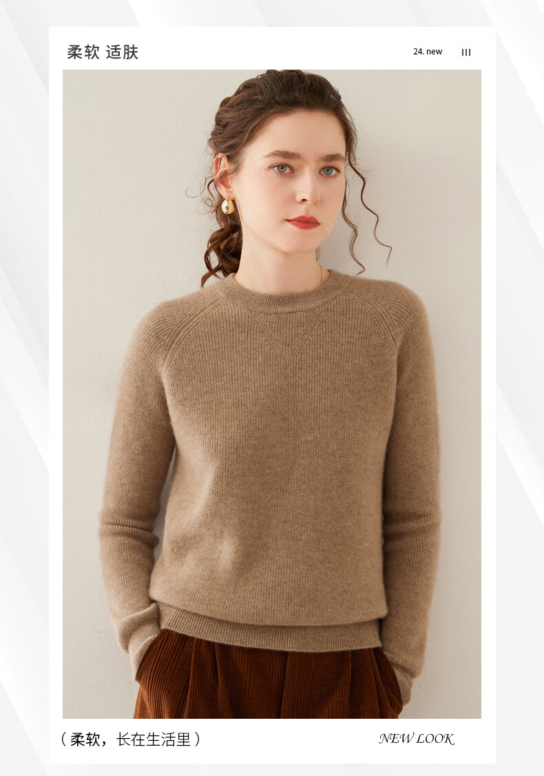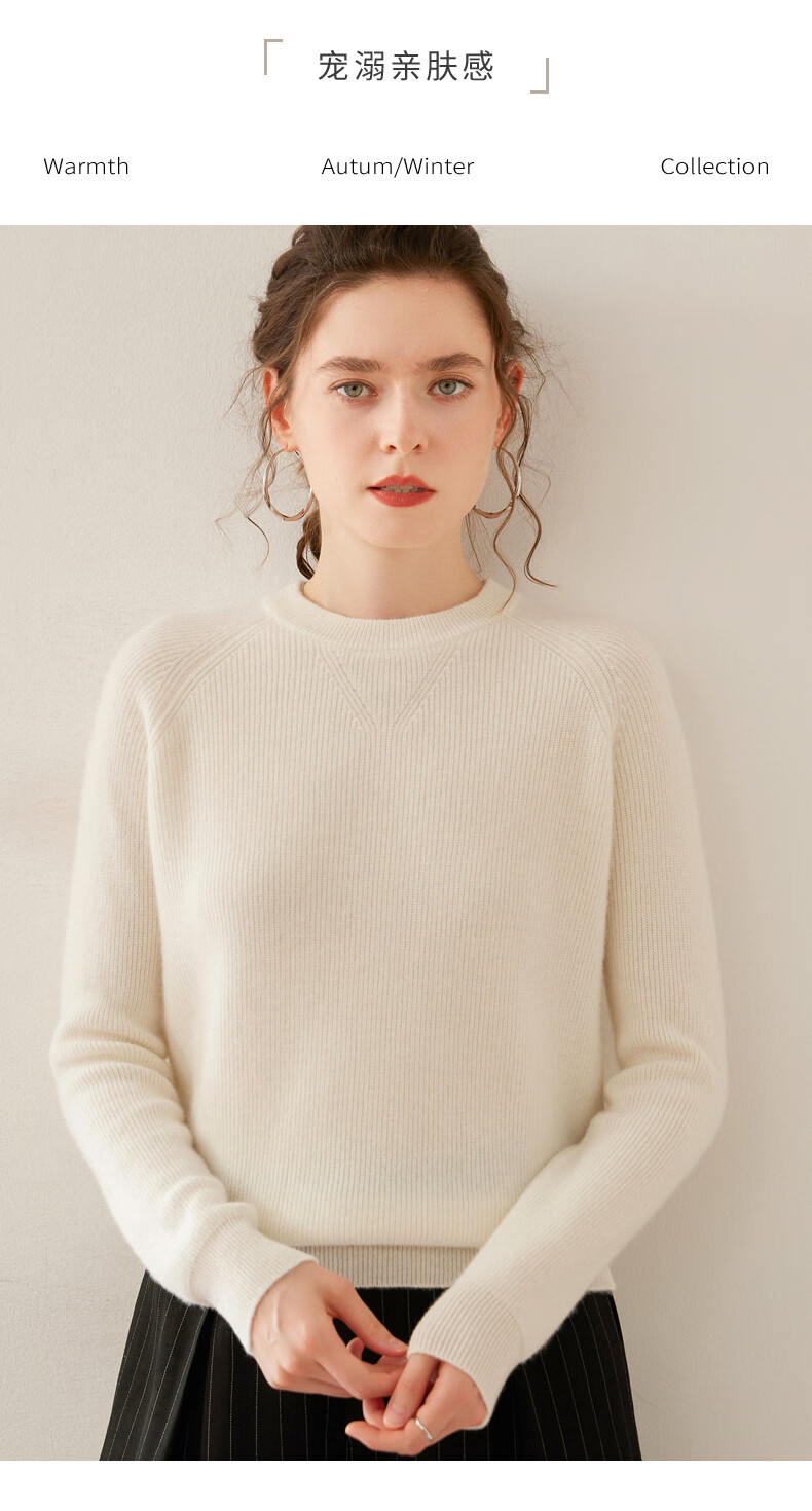 Golden Rabbit Brand 2025 Autumn and Winter Round Neck Cardigan Sweater Women's Thick Loose Top Slimming Soft Skin Friendly Cashmere Sweater Pearl White 86.8% Wool + 13.2% Cashmere L