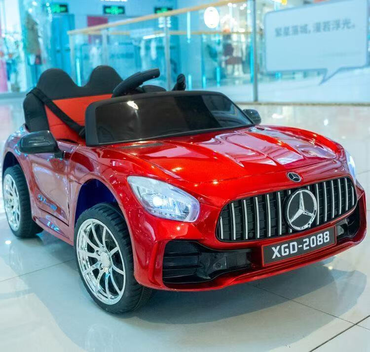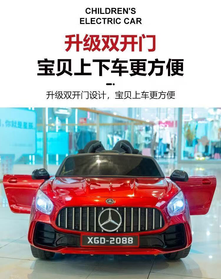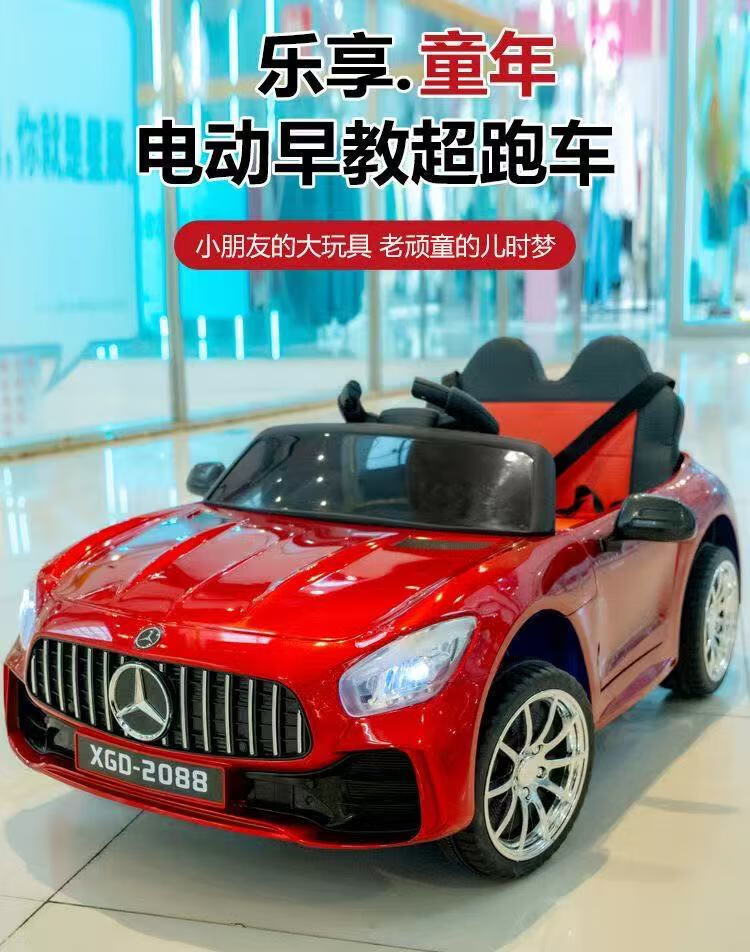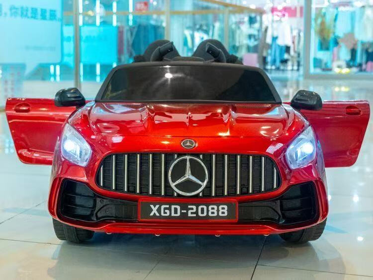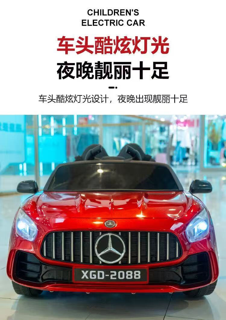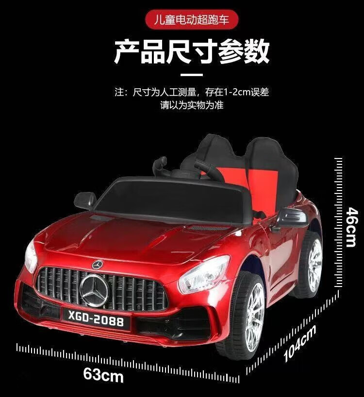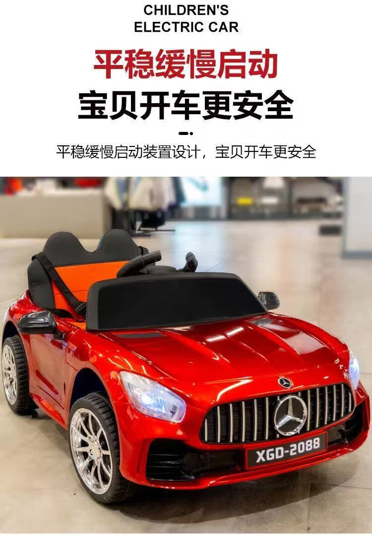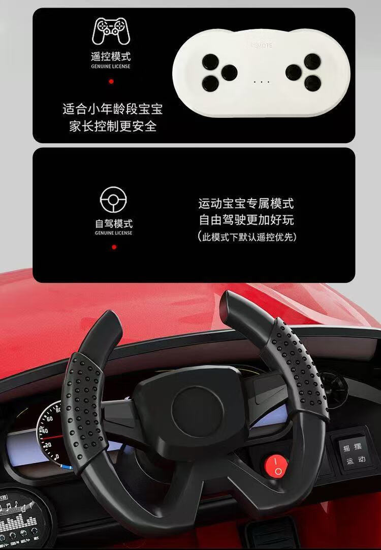 GUYN children's electric car, four-wheeled car, can seat people, can be controlled by remote control and can drive itself, men and women, baby toys, charging stroller, luxury red, remote control + self-driving + early education + Bluetooth music