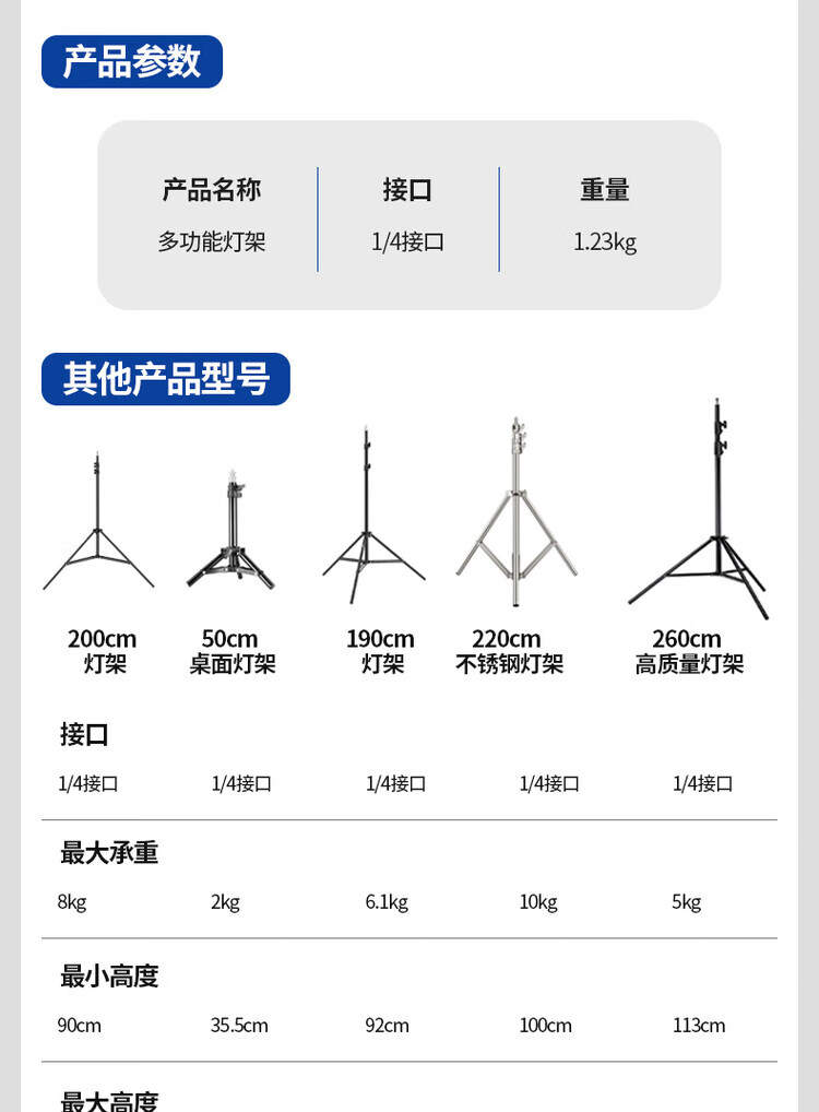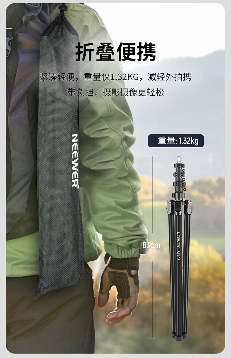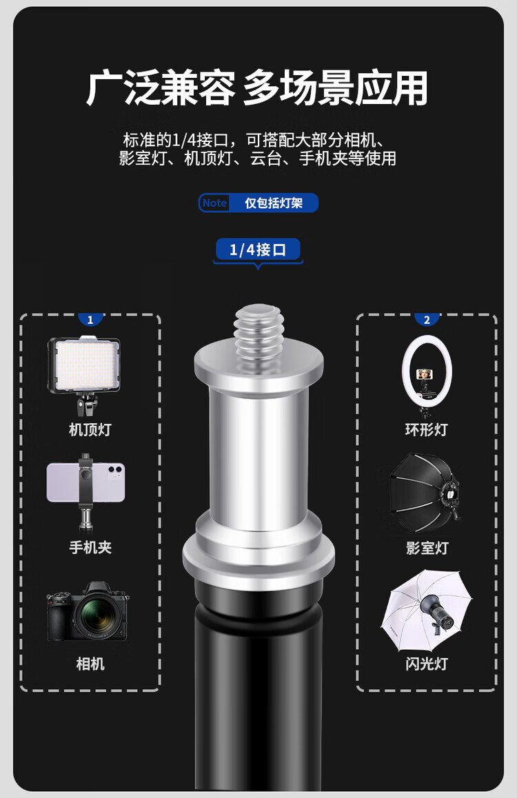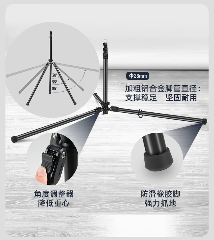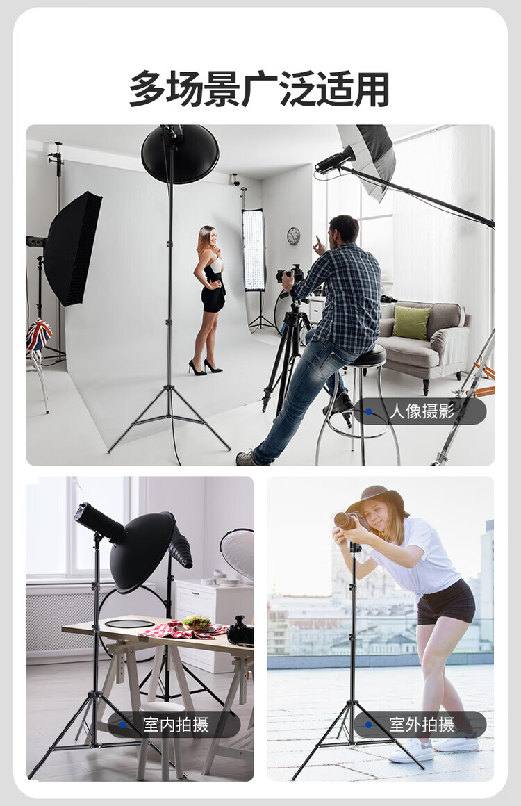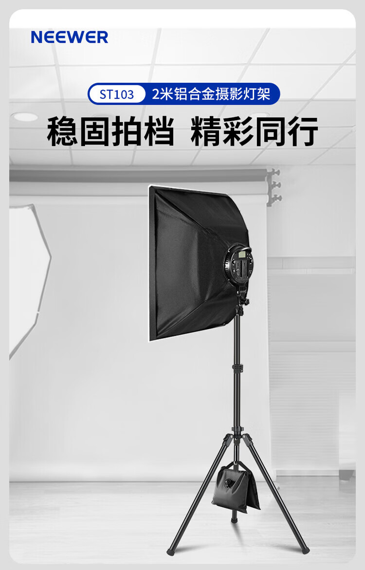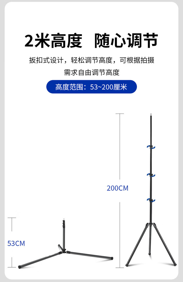 NEEWER 2m/3m/4m light stand photography tripod stainless steel stand fill light flash soft light box mobile phone camera photo aluminum alloy wishbone crossbar tripod mobile phone clamp cold shoe mount + GoPro adapter