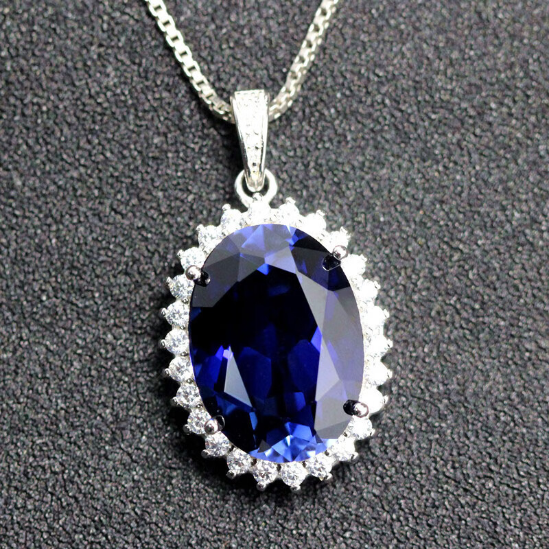 Eternal Leaf Shaped Tanzanite Sapphire Necklace Pendant for Women, Clavicle, Sterling Silver, Versatile Colored Treasure, Does Not Fade, White Gold (Main Stone 12X16mm), No Chain