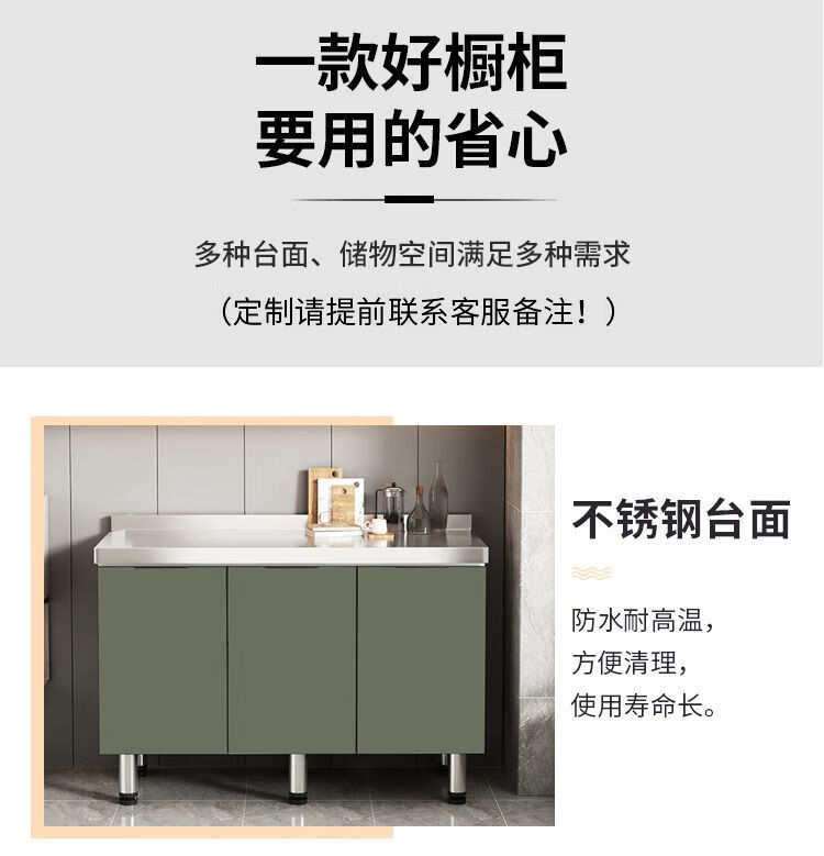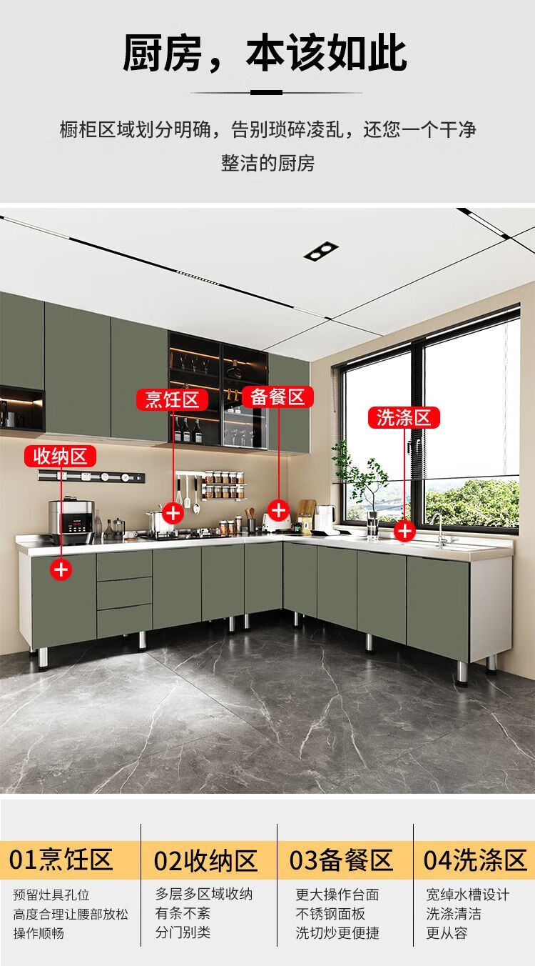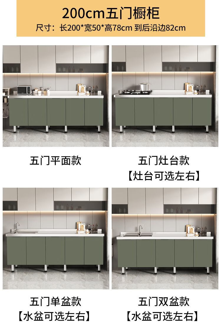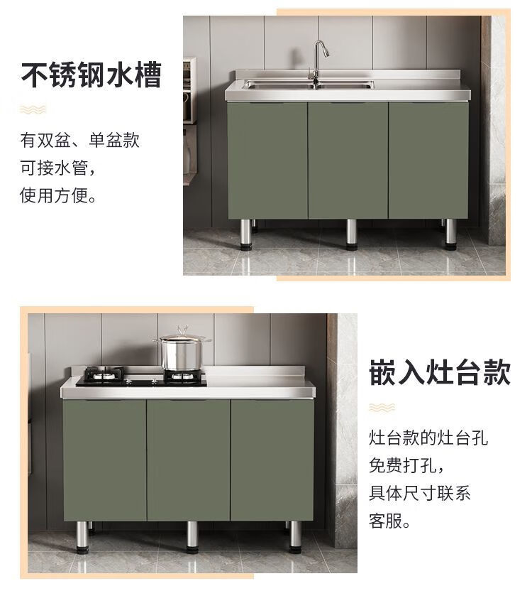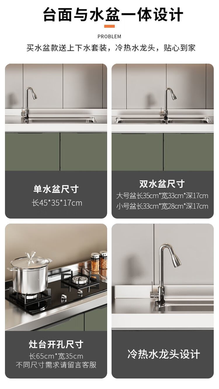 JPHZNB kitchen cabinet stove cabinet integrated kitchen cabinet cupboard household simple assembly rental stainless steel kitchen cabinet PET-single basin solid wood cabinet-170 cm