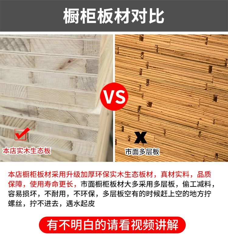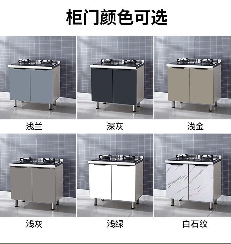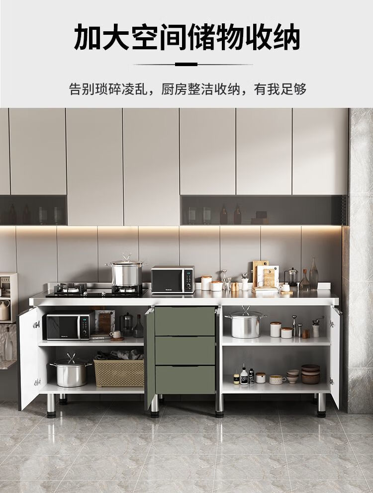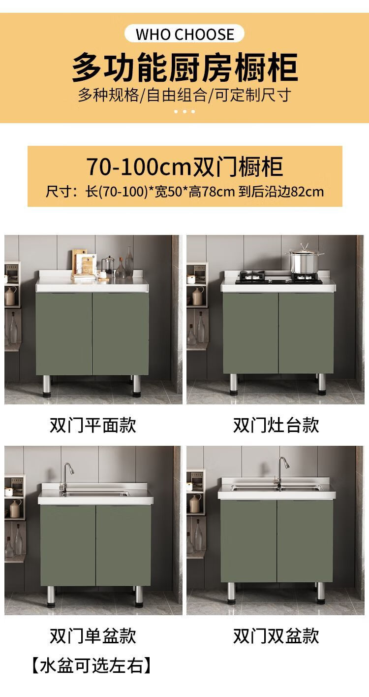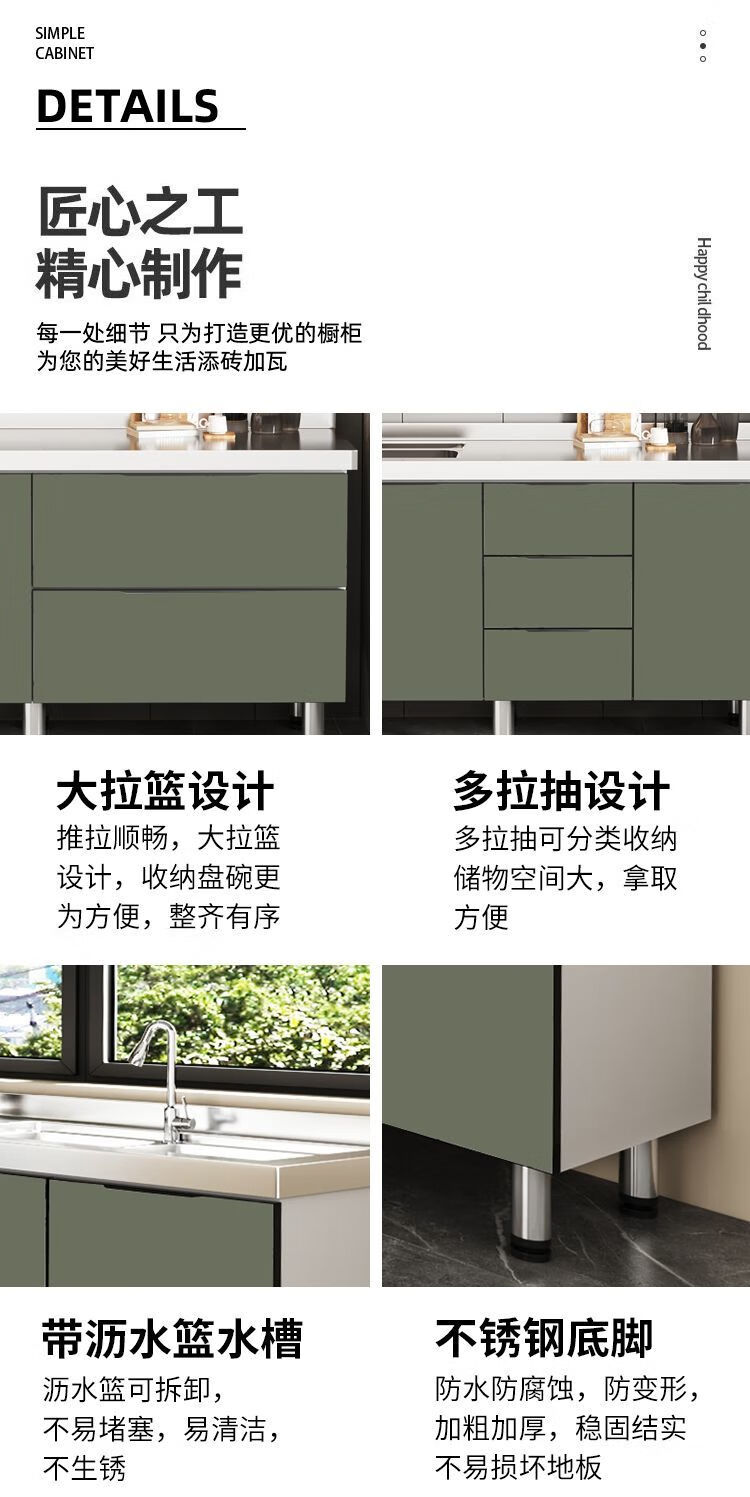 JPHZNB kitchen cabinet stove cabinet integrated kitchen cabinet cupboard household simple assembly rental stainless steel kitchen cabinet PET-single basin solid wood cabinet-170 cm