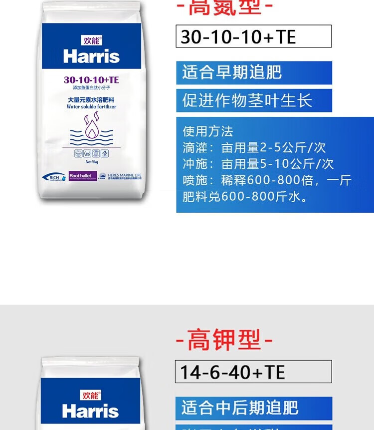 Huaneng a large number of elements water-soluble fertilizer fertilization fruit trees and vegetables drip irrigation fertilizer organic compound fertilizer fish protein peptide Huaneng high potassium type 14-6-40 5kg a pack