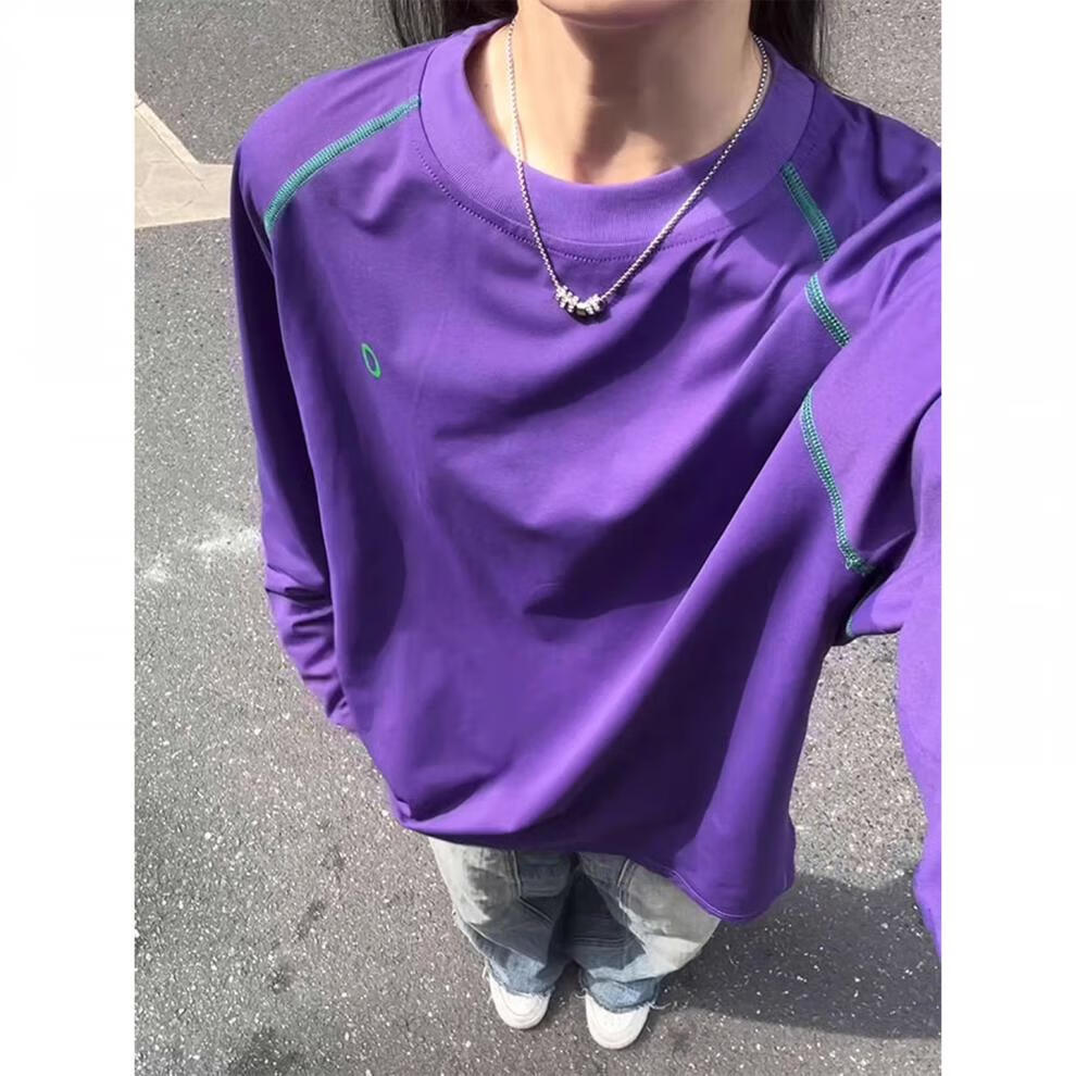 Mango plum purple right shoulder quick-drying long-sleeved T-shirt men's autumn running sports training clothing outdoor cycling clothing bottoming shirt black L