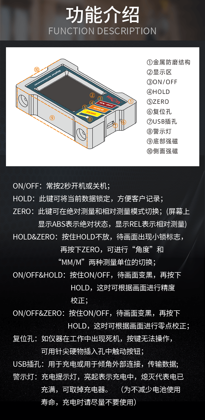 Dual-axis electronic digital display inclinometer angle meter level ruler with magnetic strong magnetic DMI410 American Refn-DMI410