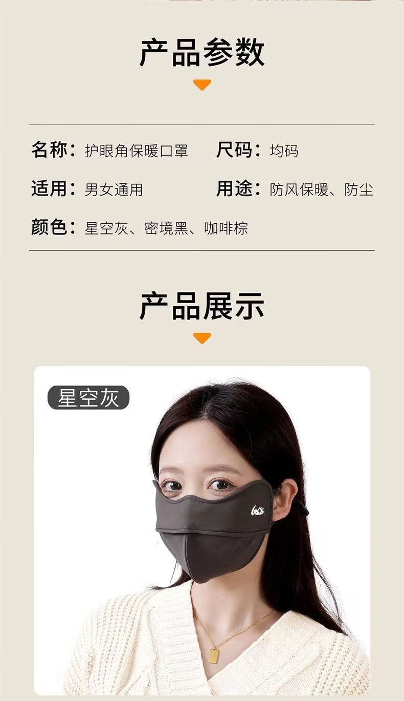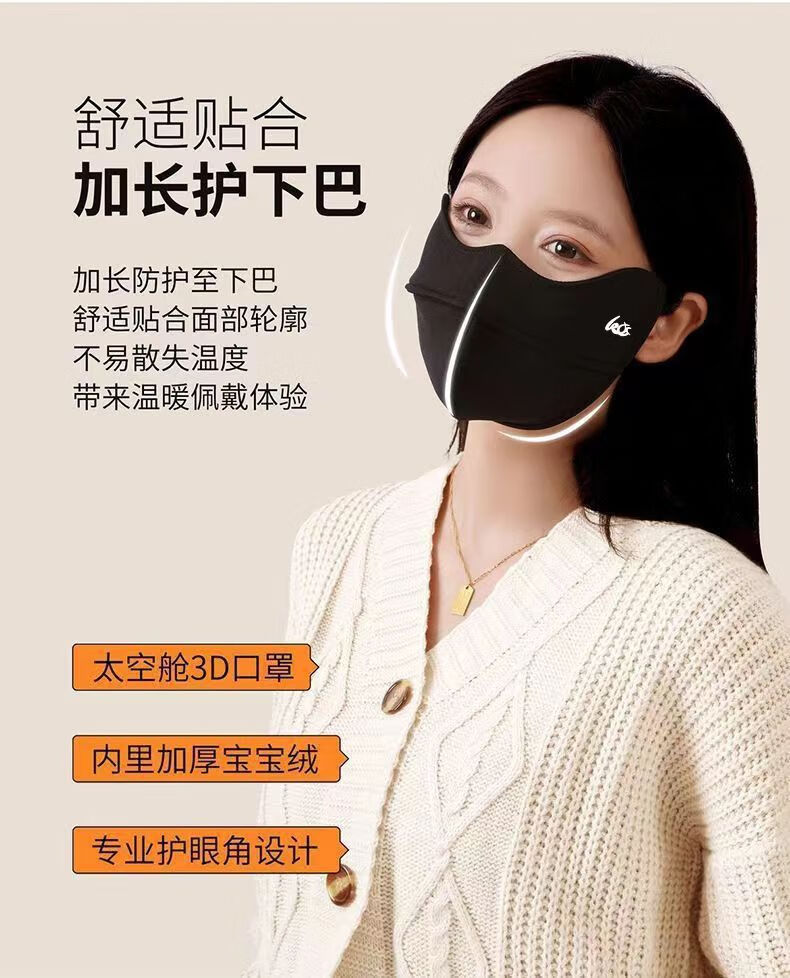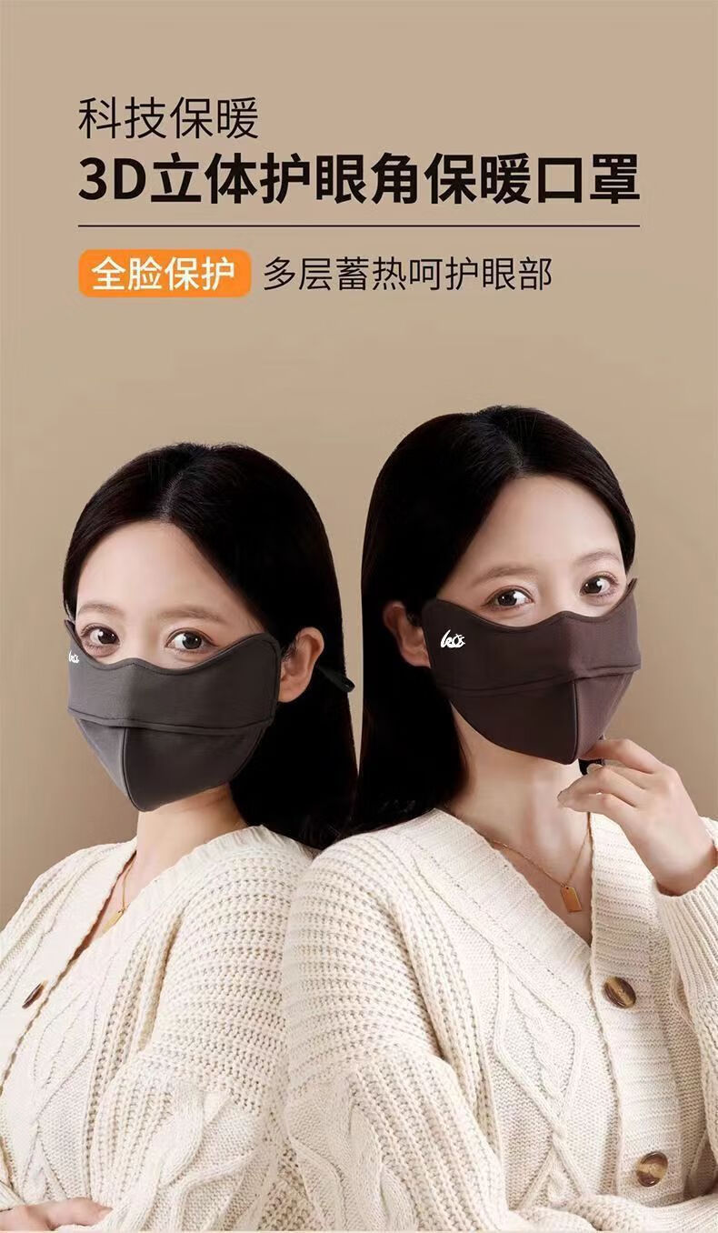 Warm fish bone mask for women, thickened 5D three-dimensional autumn and winter windproof eye protection, small face sun protection mask, autumn and winter fish bone mask, coffee color