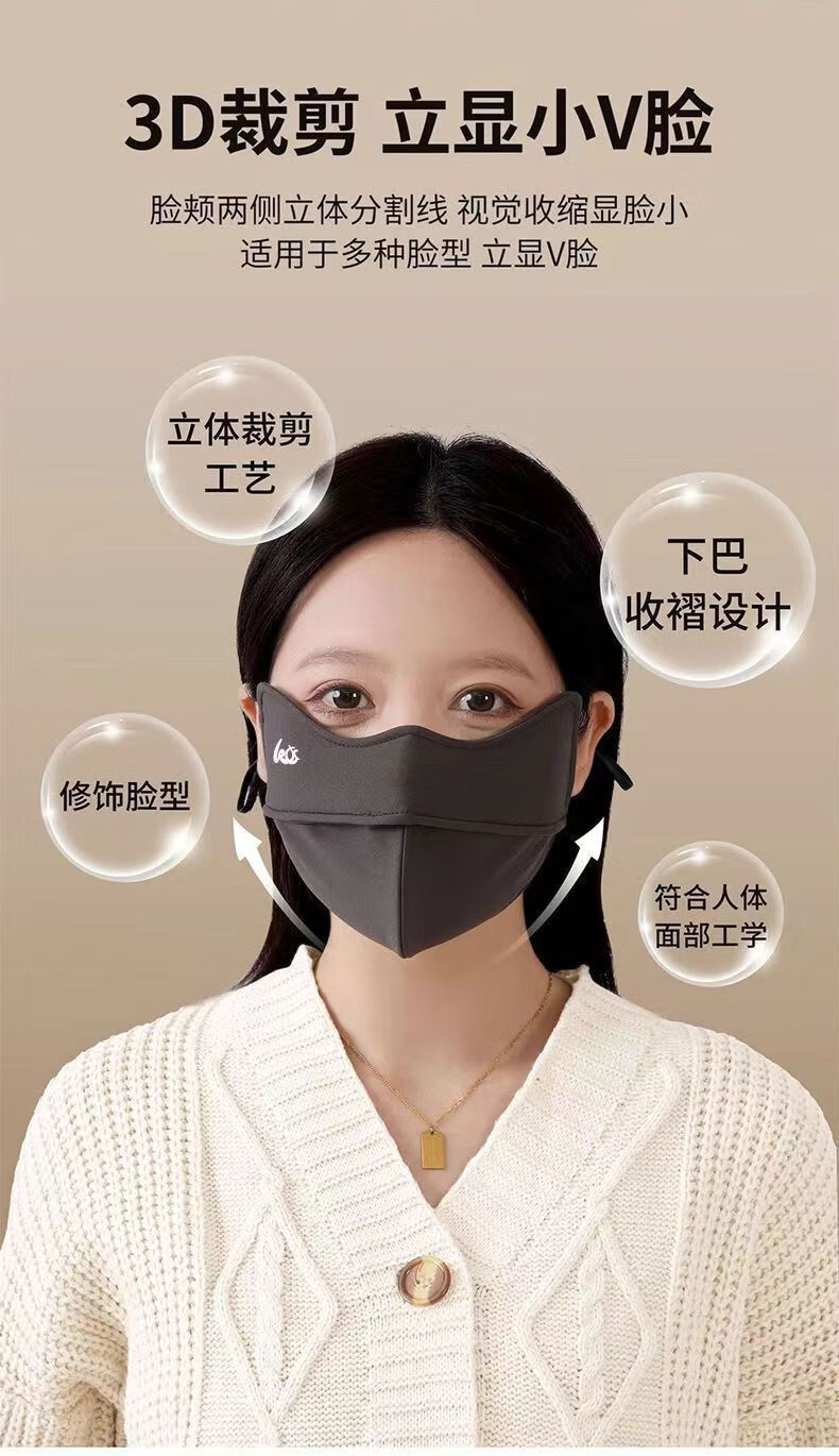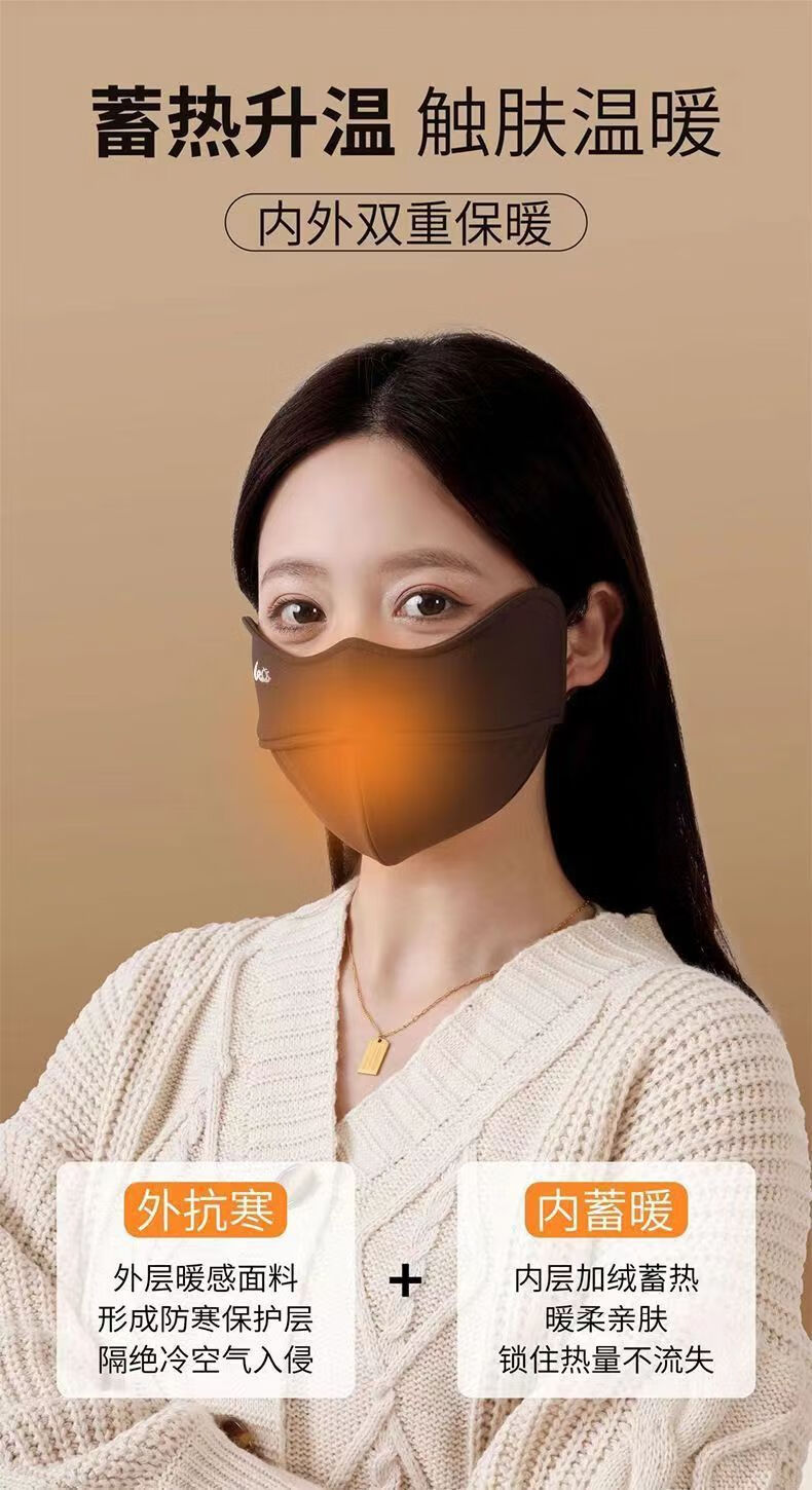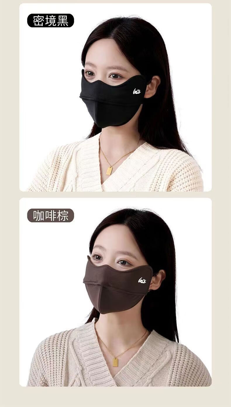 Warm fish bone mask for women, thickened 5D three-dimensional autumn and winter windproof eye protection, small face sun protection mask, autumn and winter fish bone mask, coffee color