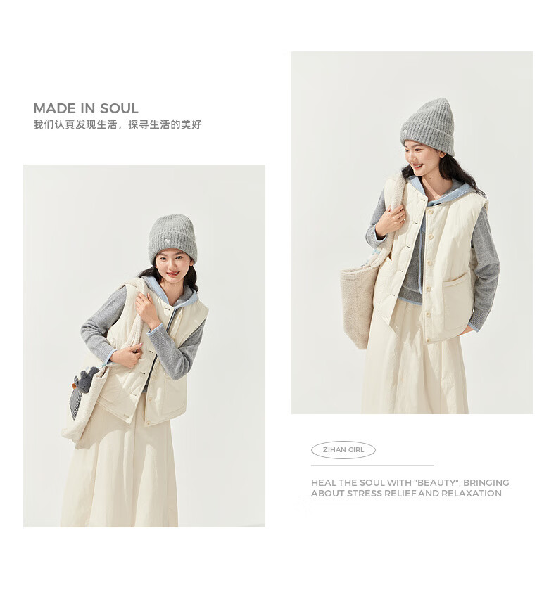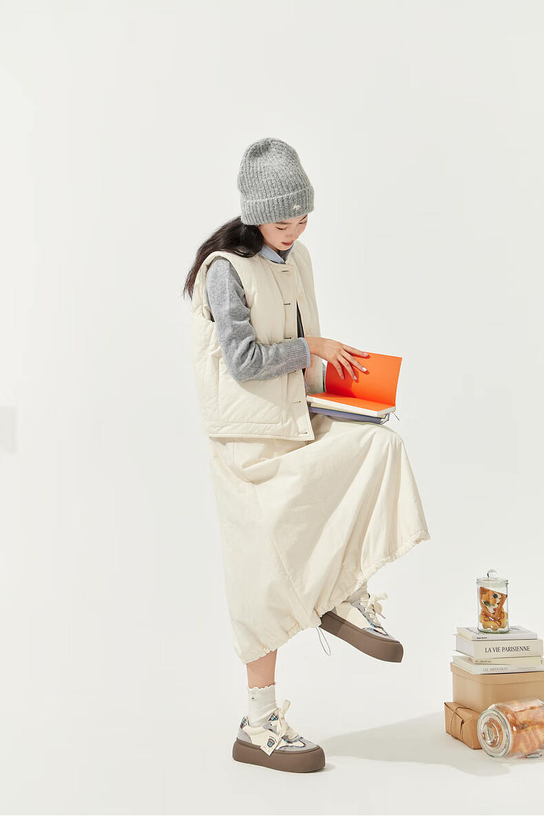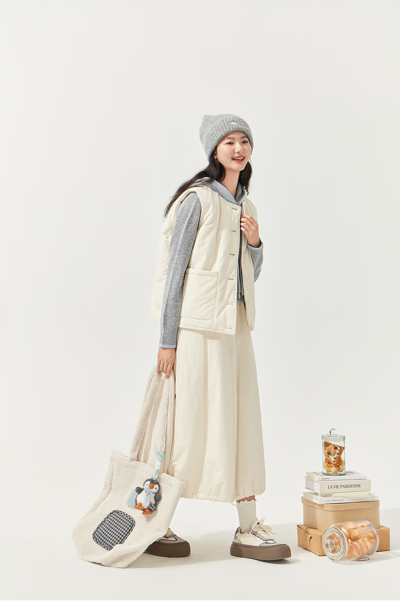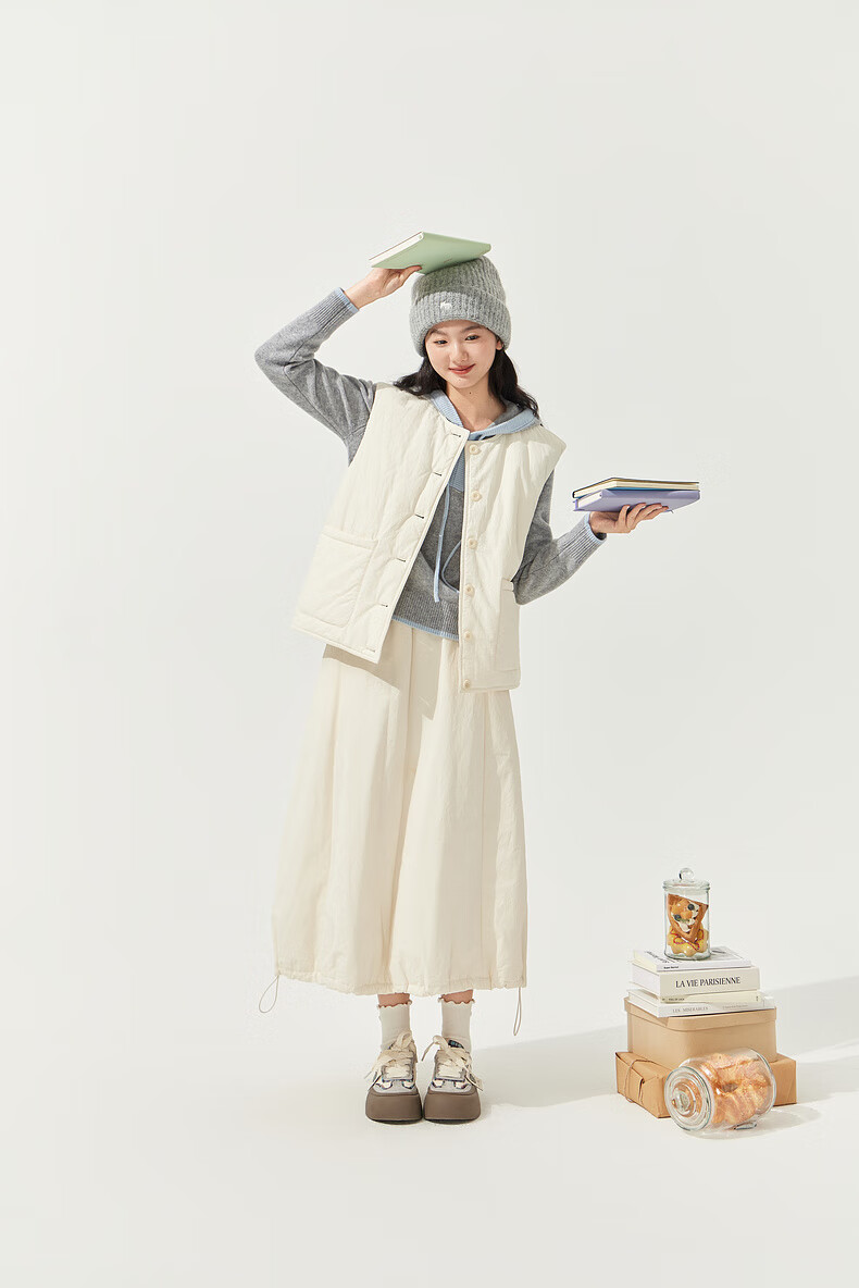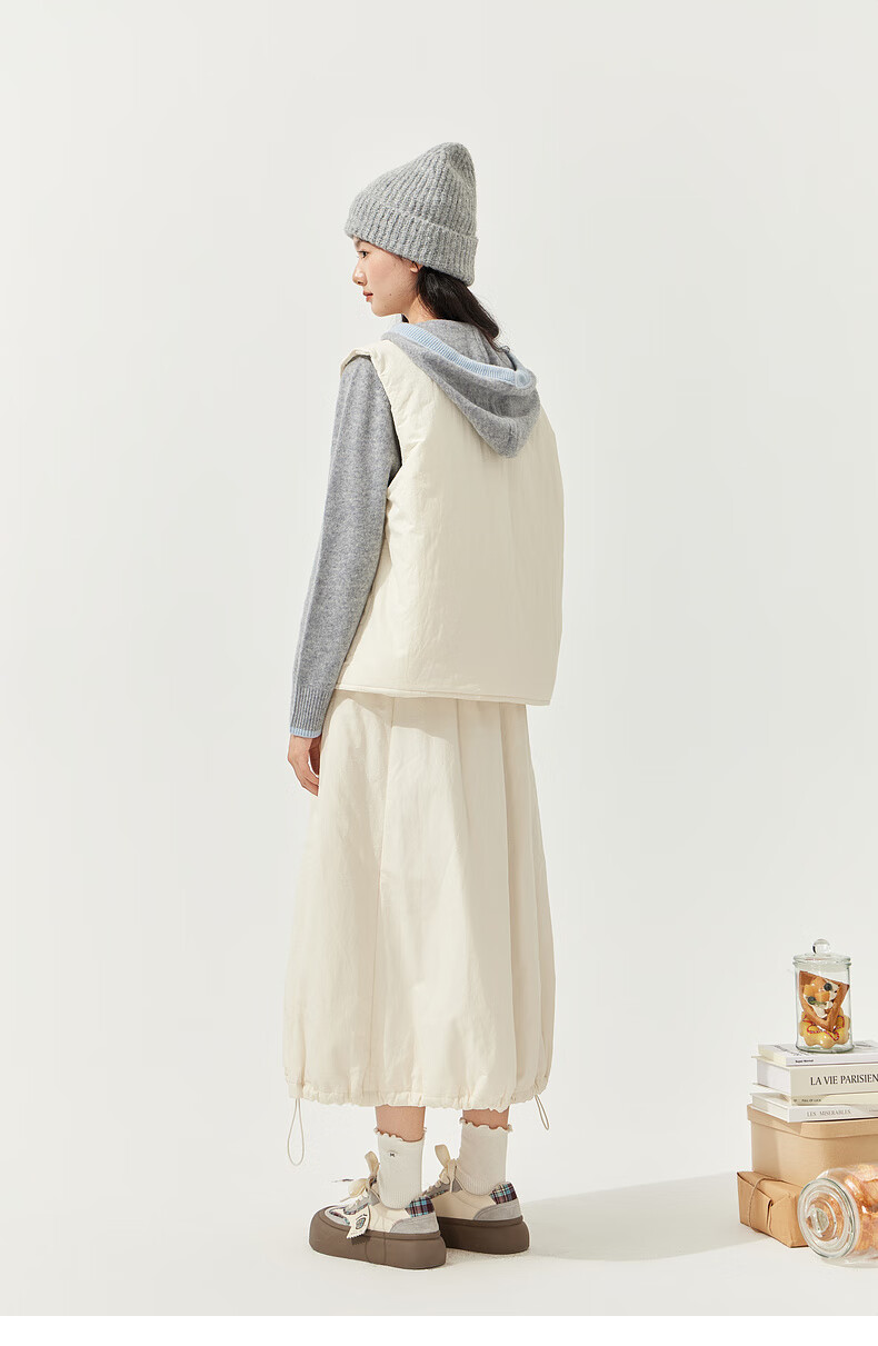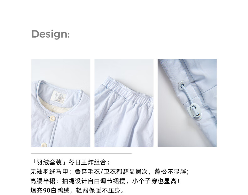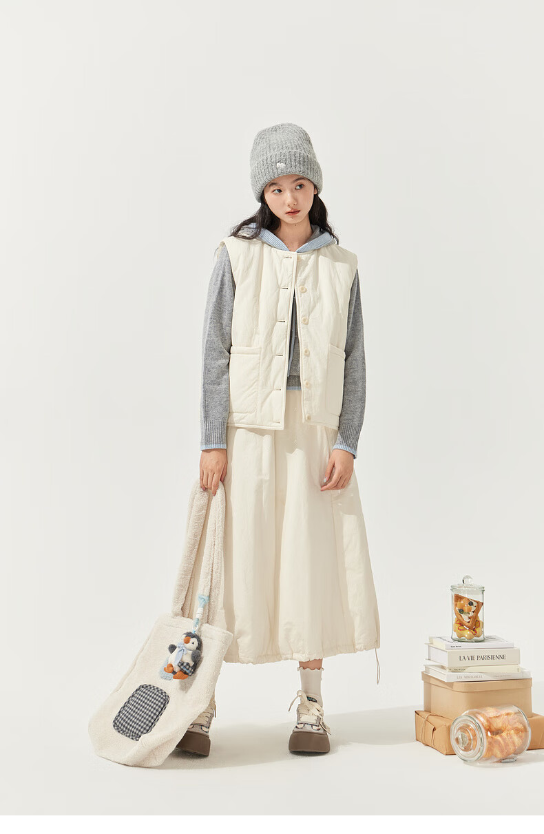 Zihan (ZIHAN) Zihan round neck sleeveless down vest elastic high waist down skirt two-piece suit for women 2025 winter new style winter rice M