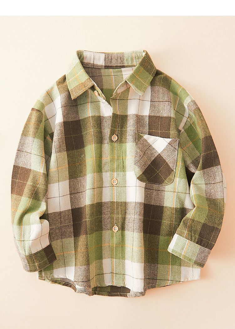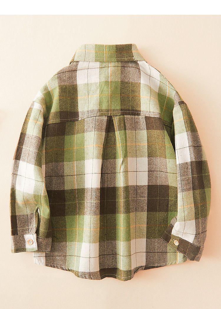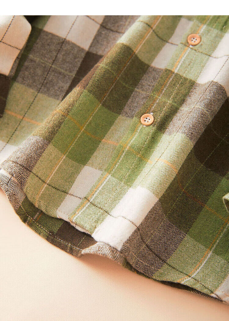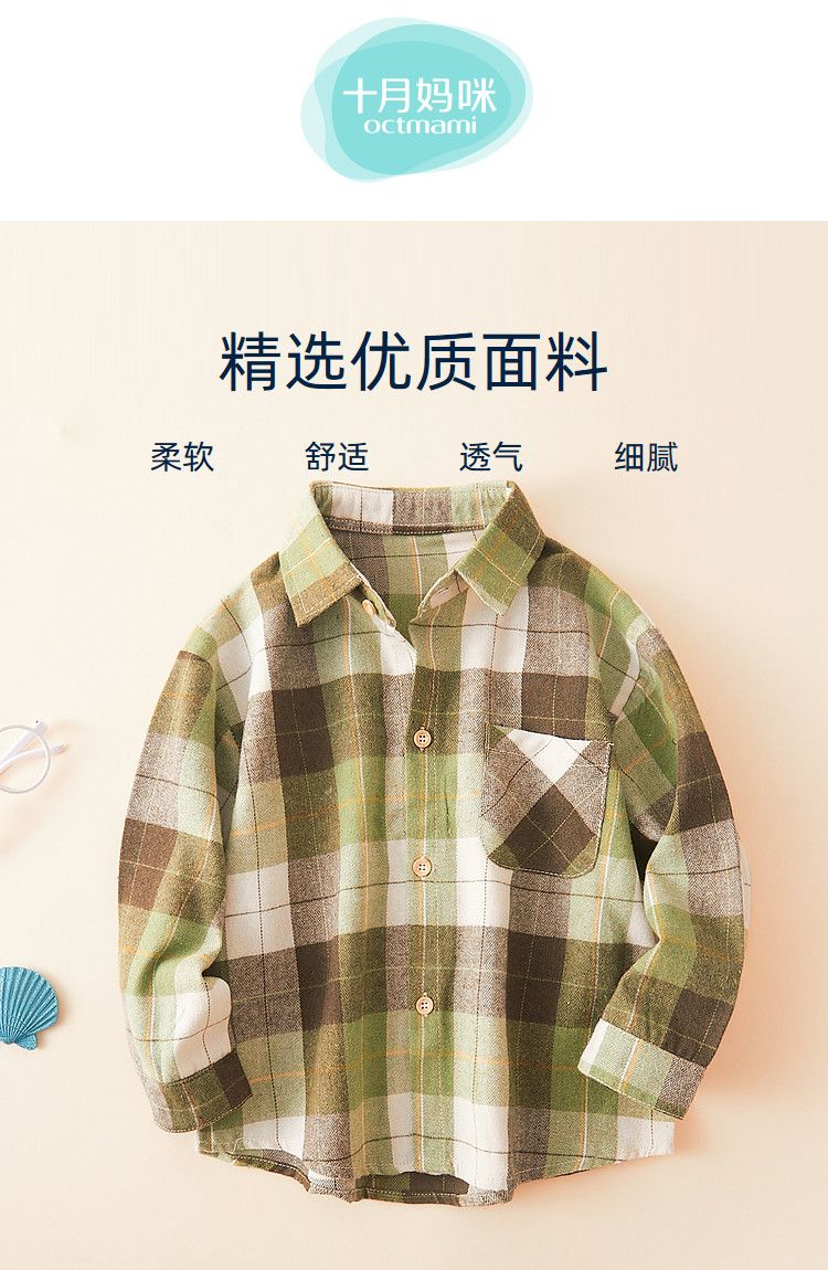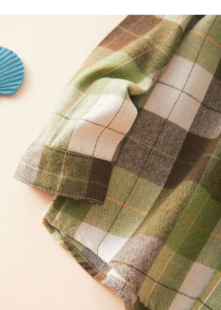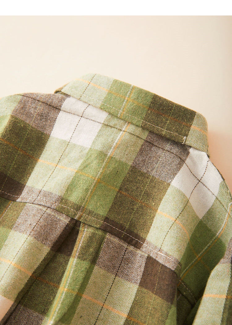 October Mommy (octmami) October Mommy fashion plaid lapel shirt soft and comfortable fabric breathable green 120