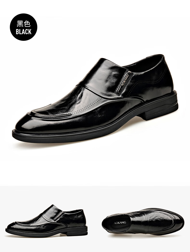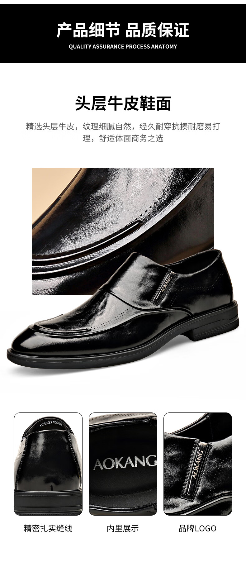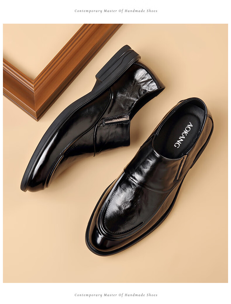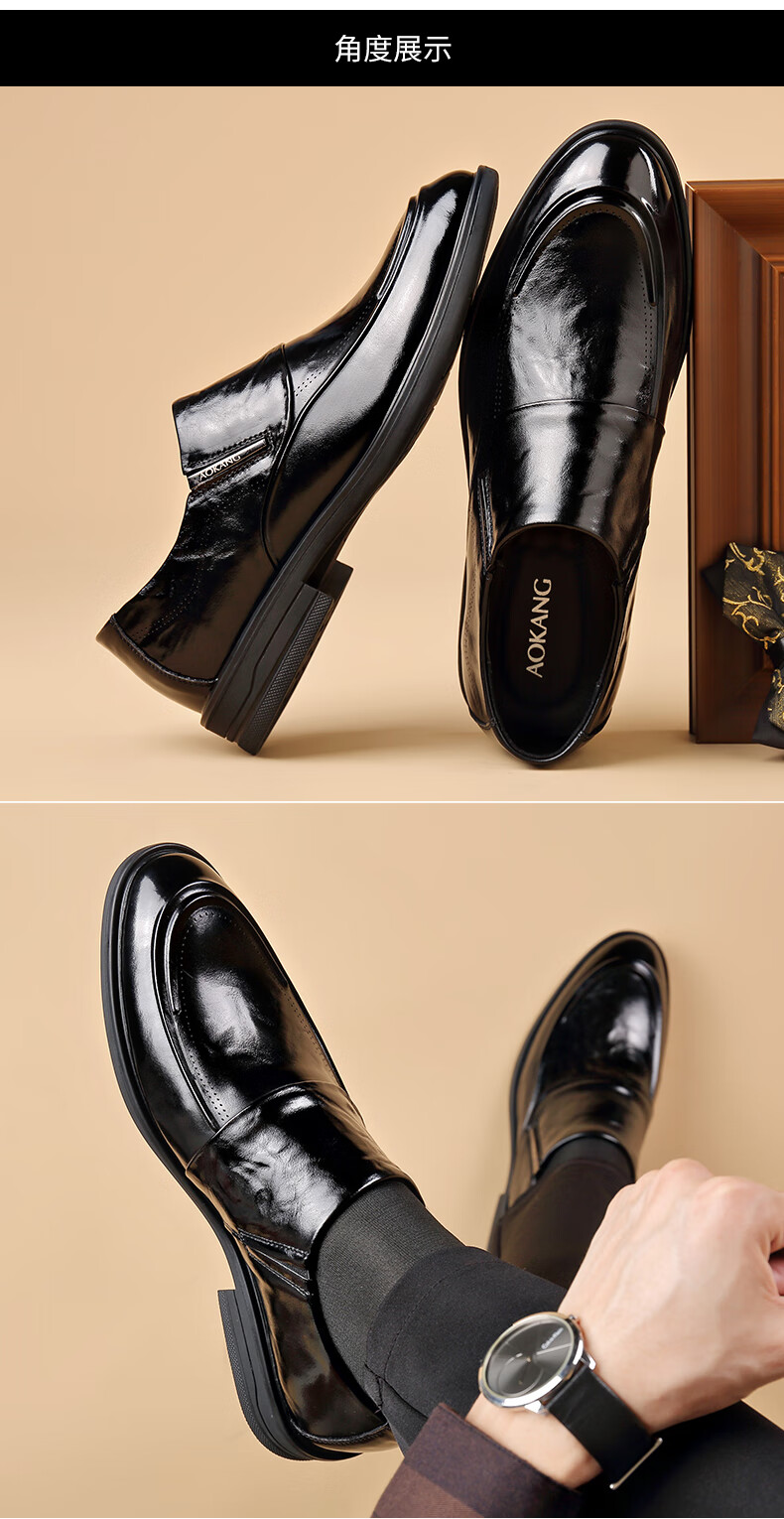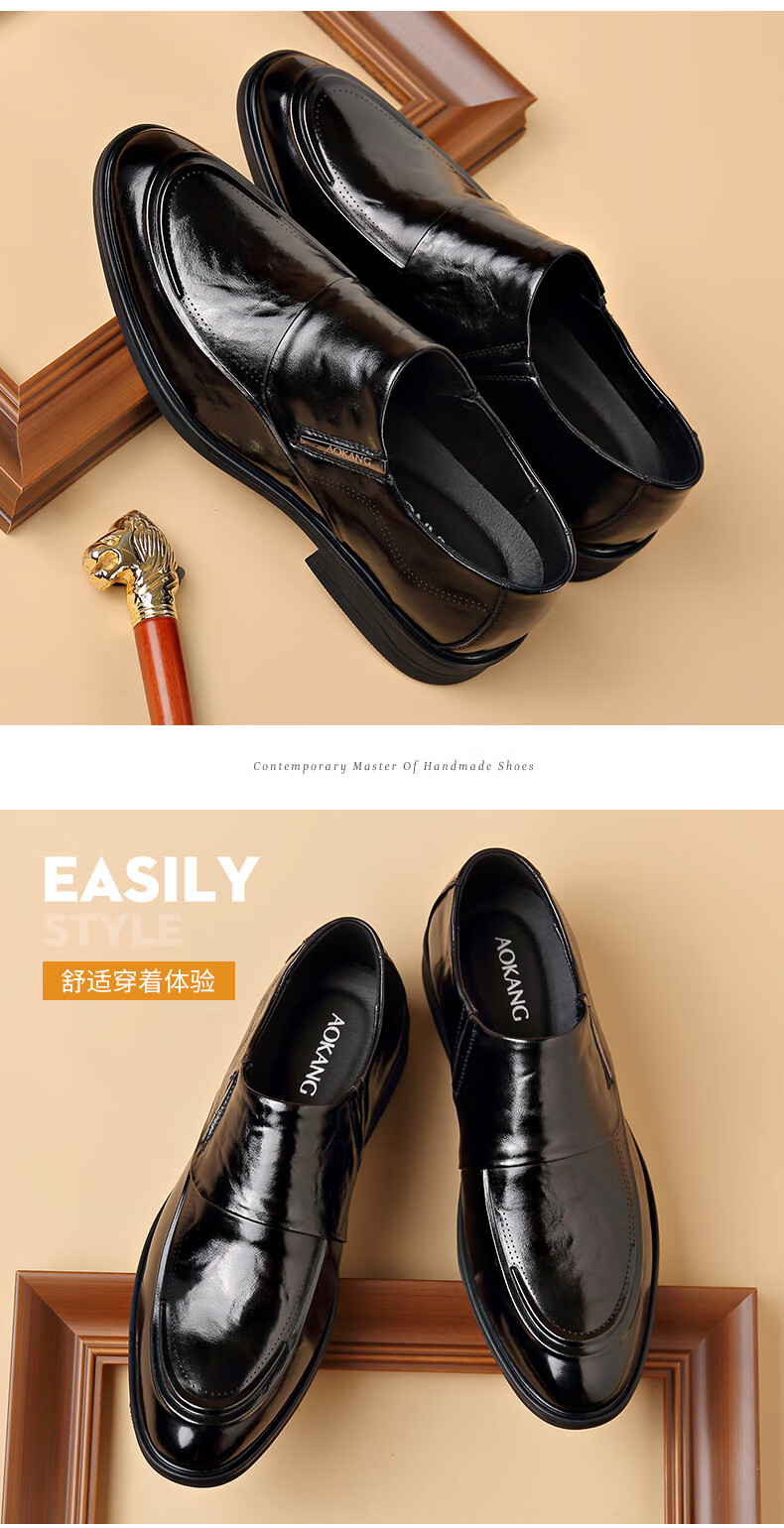 Aokang men's shoes autumn genuine leather top layer cowhide business formal casual leather shoes men's derby commuting shoes groom's wedding shoes 1255211096R style black 41 (255mm)