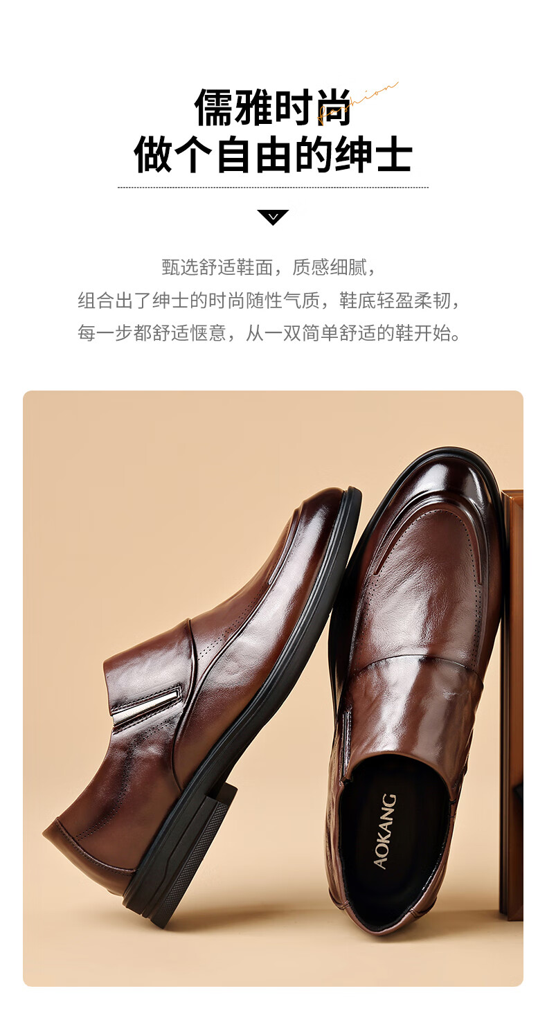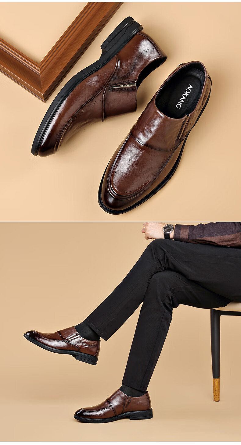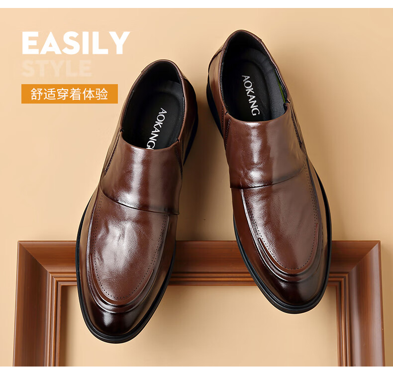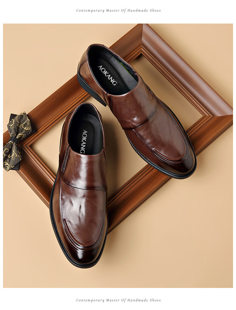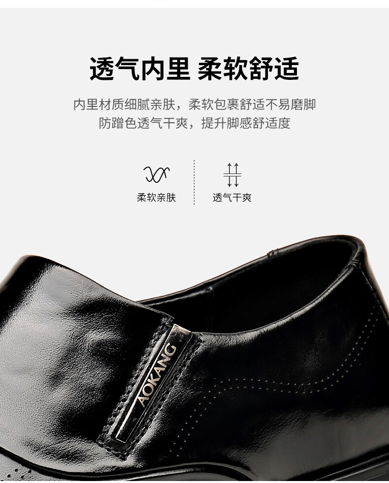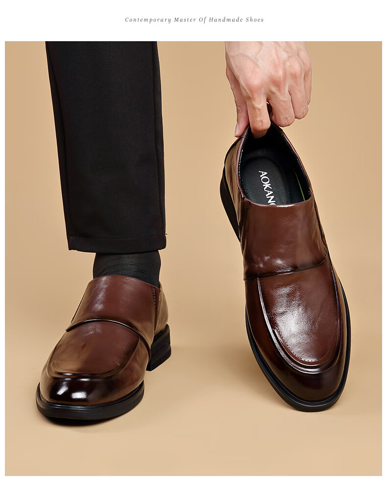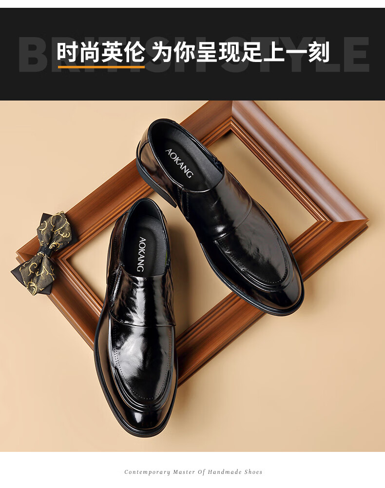 Aokang men's shoes autumn genuine leather top layer cowhide business formal casual leather shoes men's derby commuting shoes groom's wedding shoes 1255211096R style black 41 (255mm)