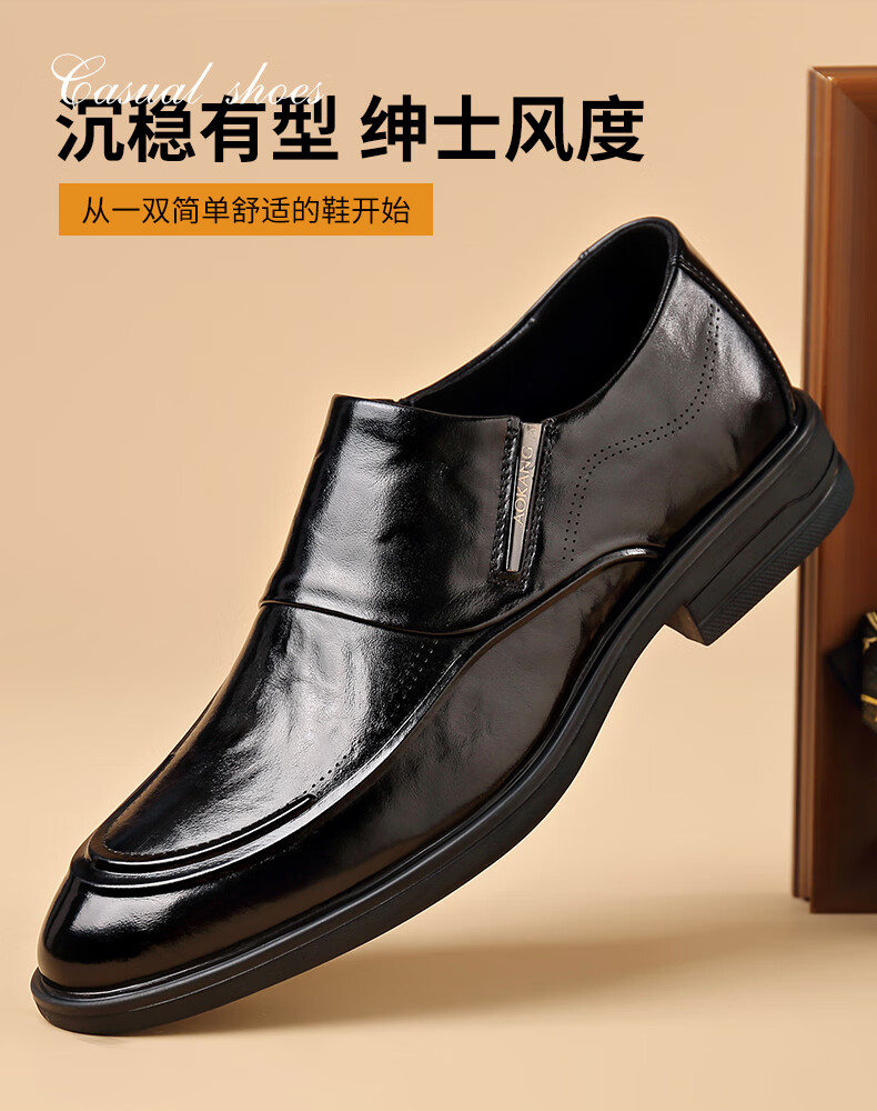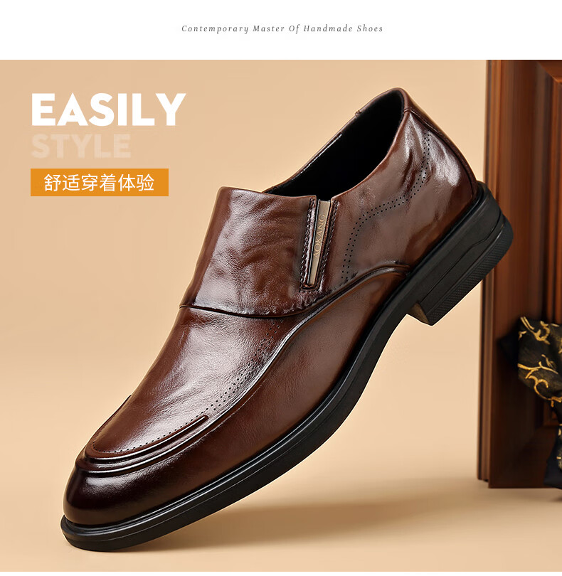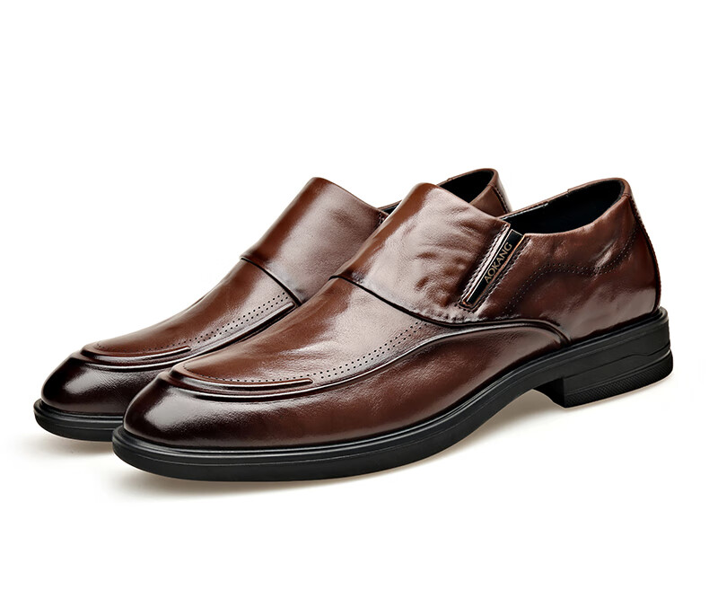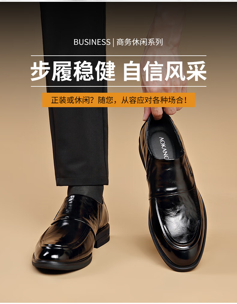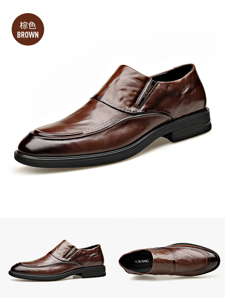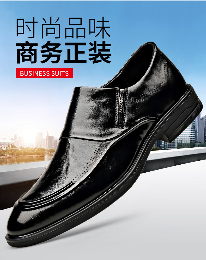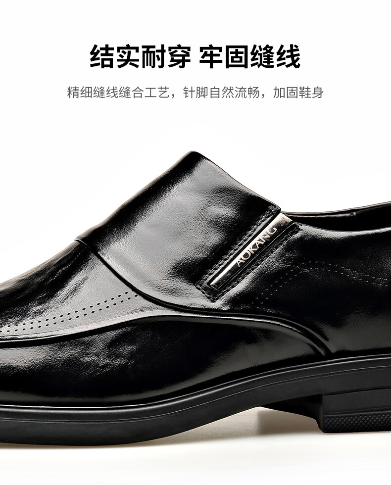 Aokang men's shoes autumn genuine leather top layer cowhide business formal casual leather shoes men's derby commuting shoes groom's wedding shoes 1255211096R style black 41 (255mm)