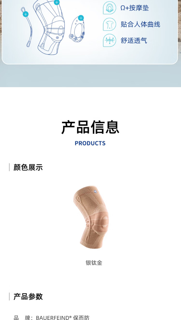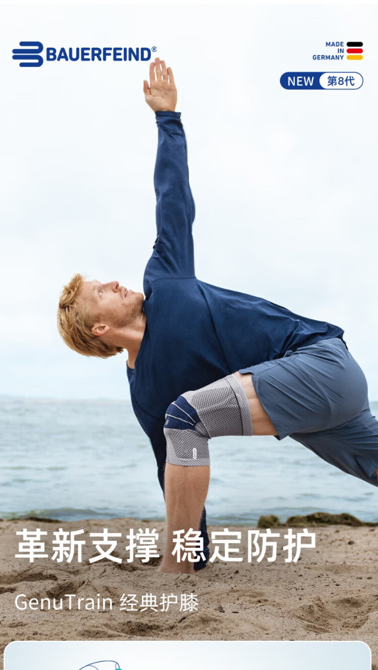BAUERFEIND German professional sports kneepad basic model eighth generation new silver titanium anti-slip model 4.5