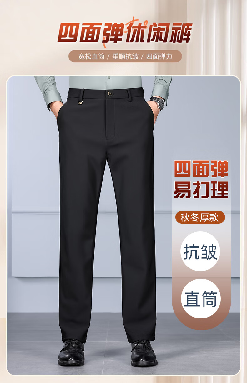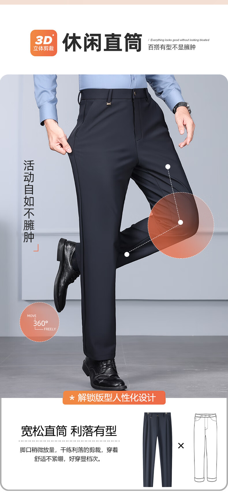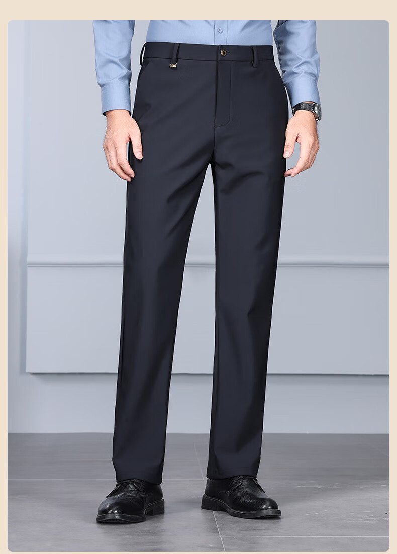 Pierre Cardin Casual Pants Men's Autumn and Winter 2025 New Velvet Thickened Men's Business Suit Pants No-Iron Straight Long Pants Navy (Spring and Autumn Thick Style) 33 (175/88A) 140-150Jin Jin equals 0.5 kg