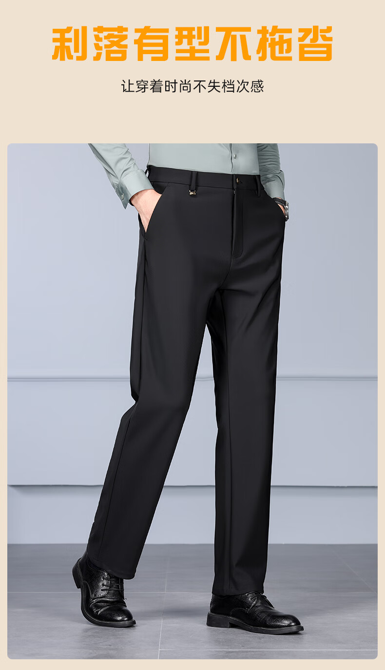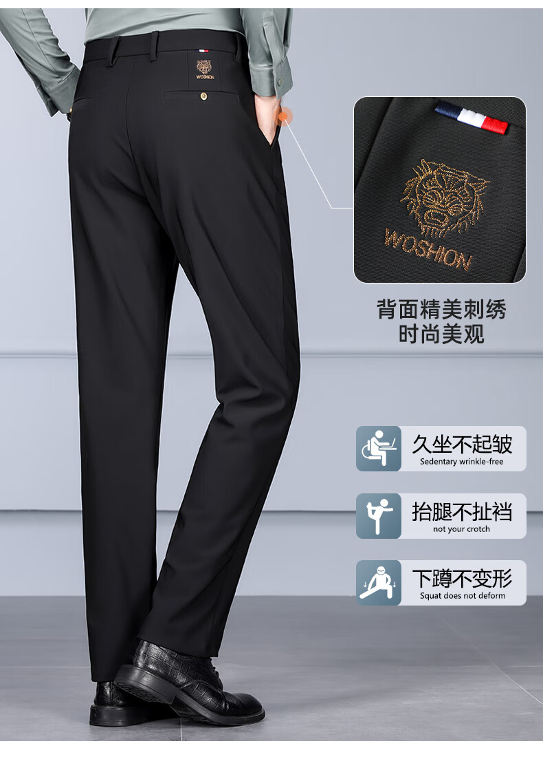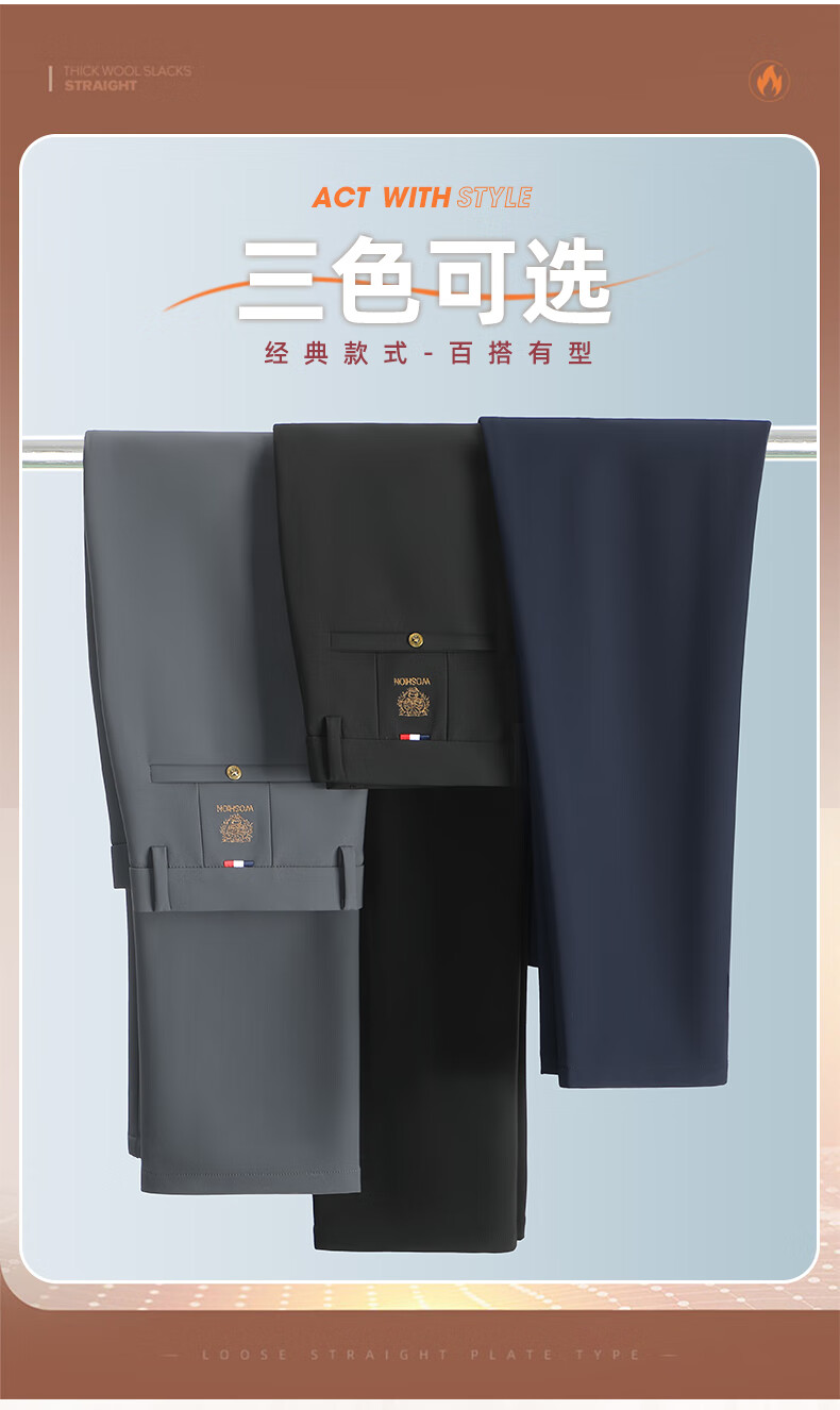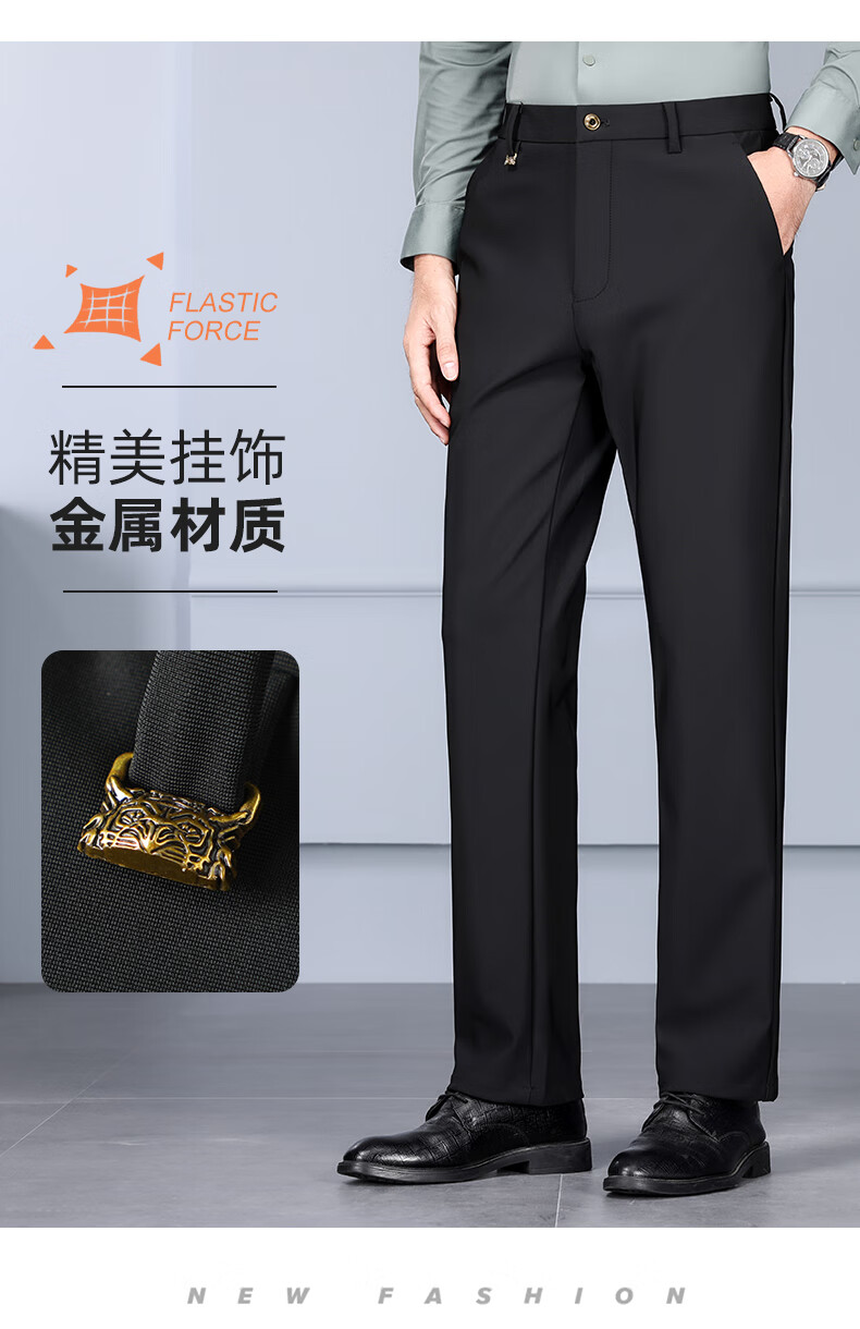 Pierre Cardin Casual Pants Men's Autumn and Winter 2025 New Velvet Thickened Men's Business Suit Pants No-Iron Straight Long Pants Navy (Spring and Autumn Thick Style) 33 (175/88A) 140-150Jin Jin equals 0.5 kg