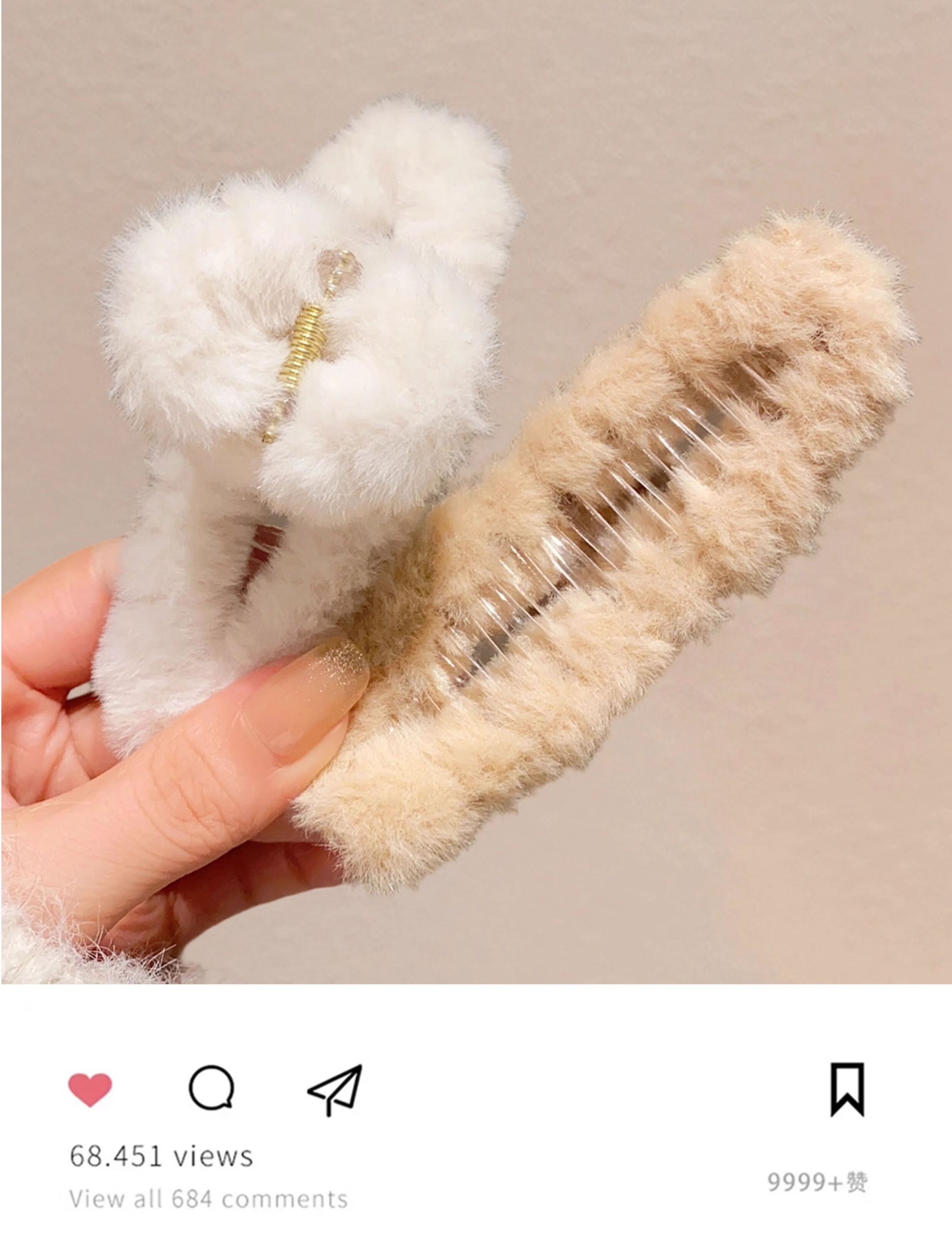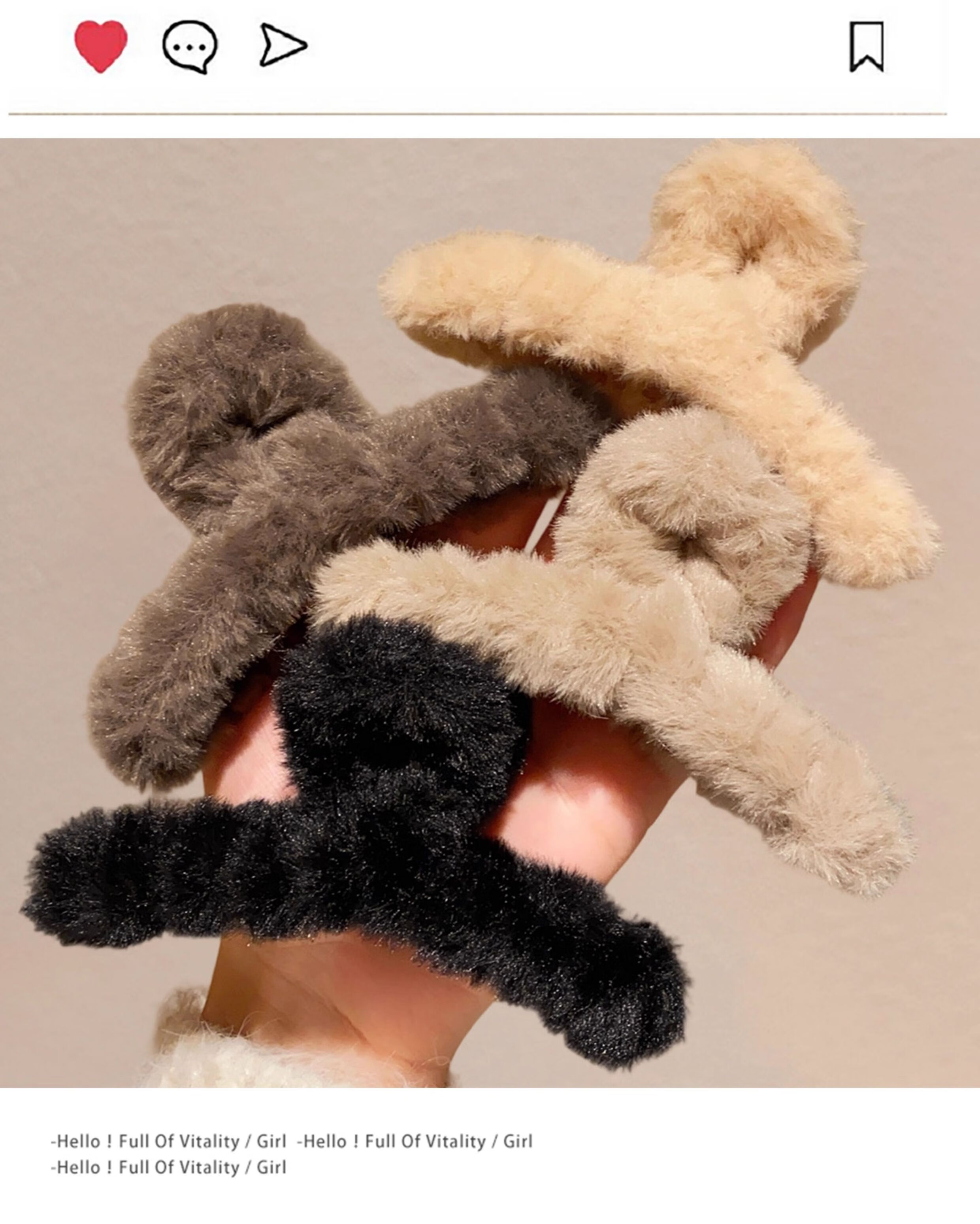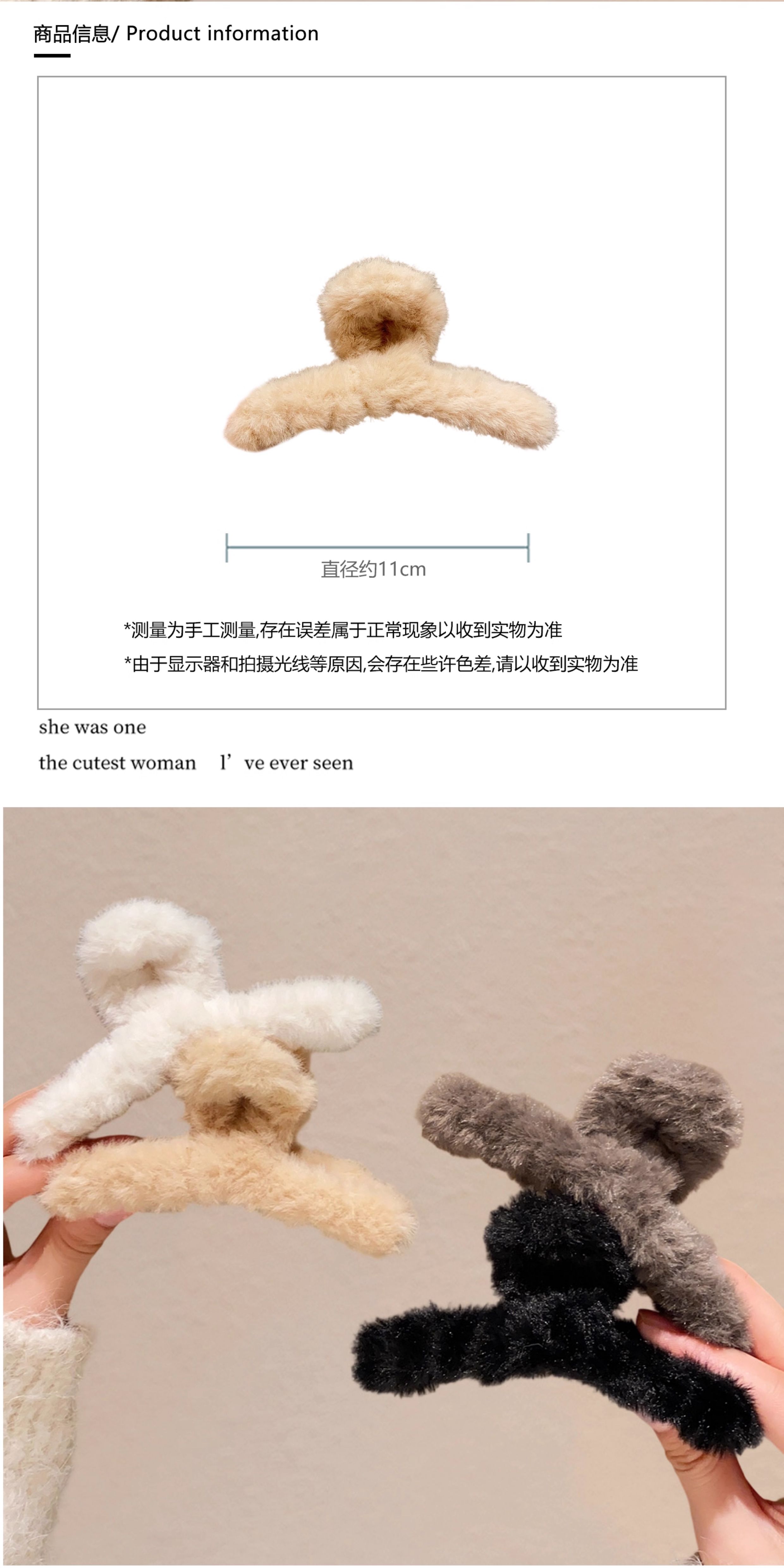 Autumn and winter plush large grabber clip for women 2025 new hairpin back of head hair clip headwear high-end shark clip 11# off-white + black