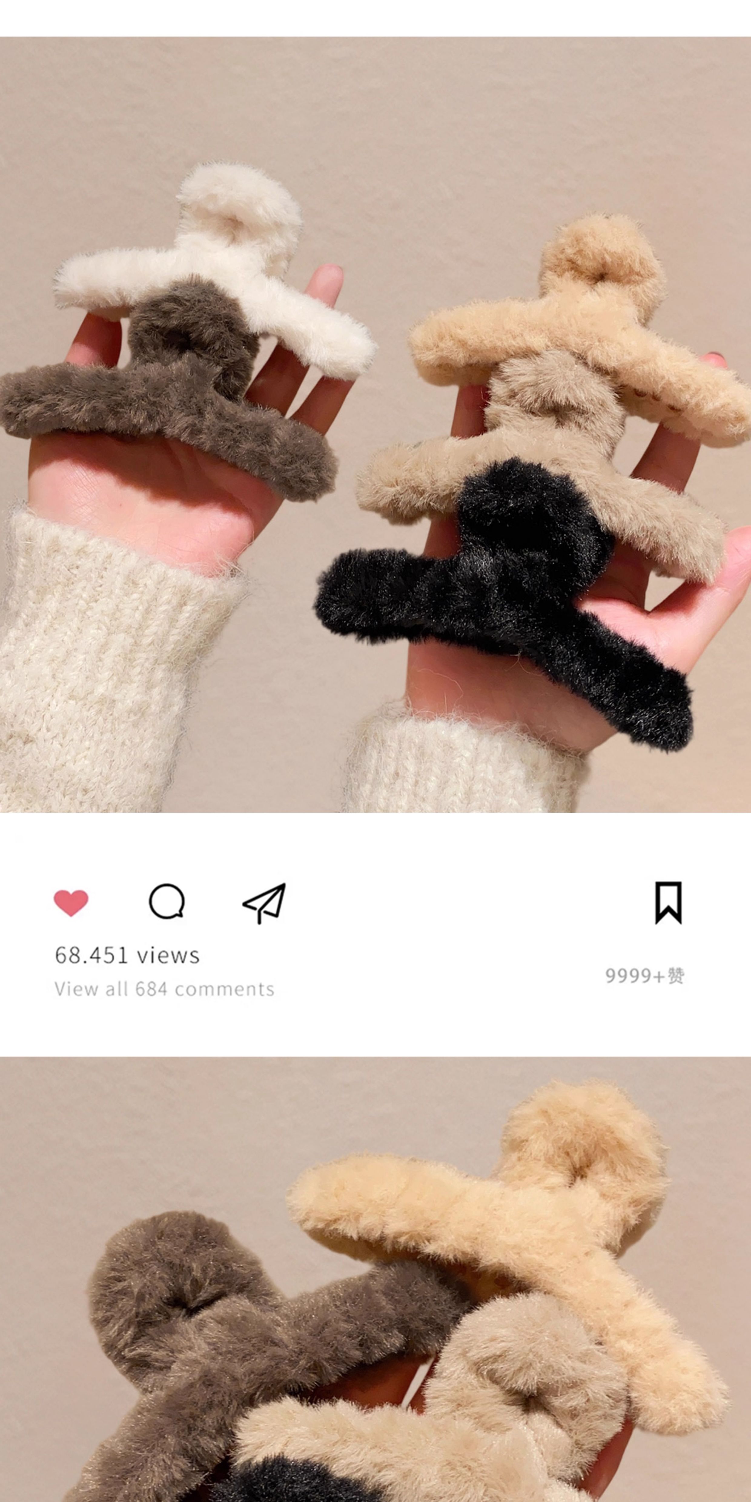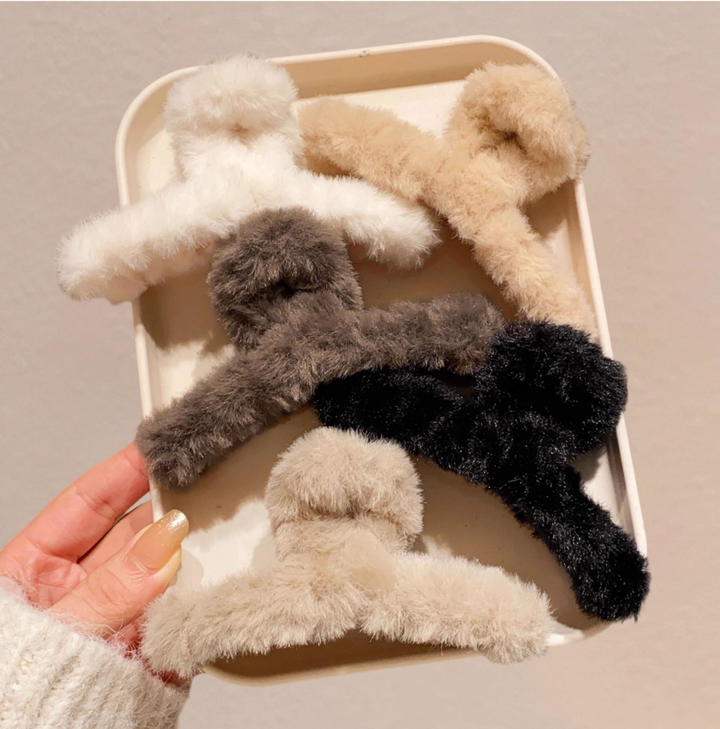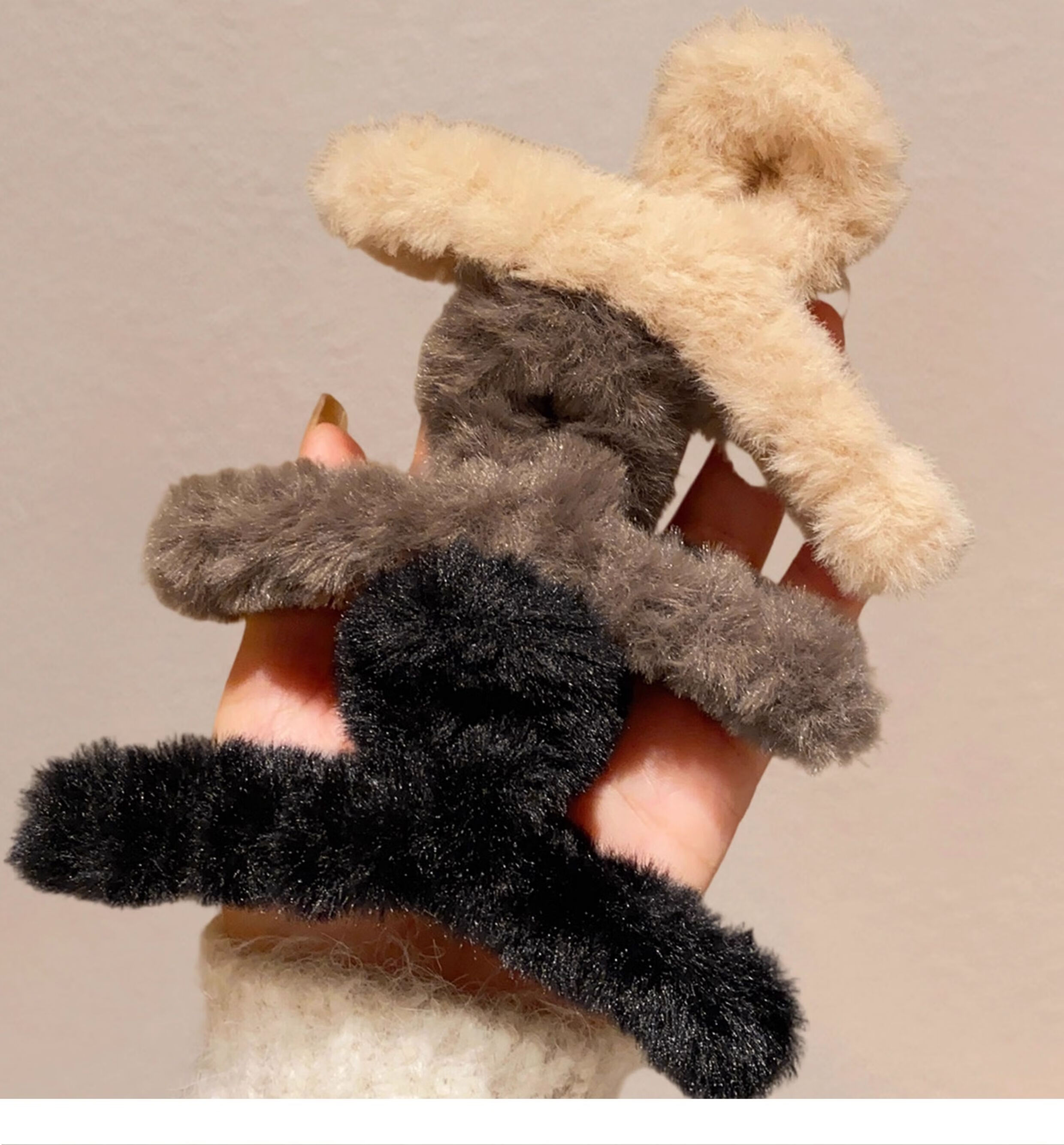 Autumn and winter plush large grabber clip for women 2025 new hairpin back of head hair clip headwear high-end shark clip 11# off-white + black