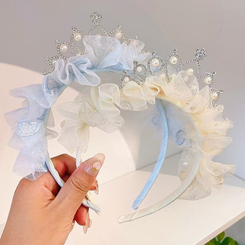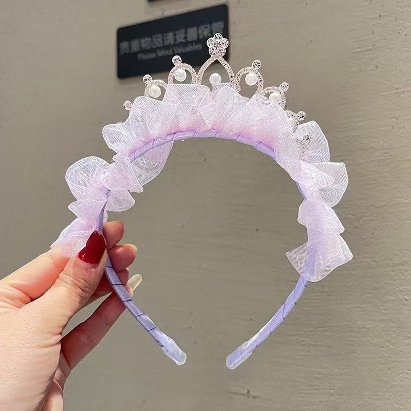 Children's Super Fairy Princess Crown Hairband Sweet and Cute Baby Birthday Crown Gauze Headband Hairpin Girls Hair Accessories 04 Purple Crown