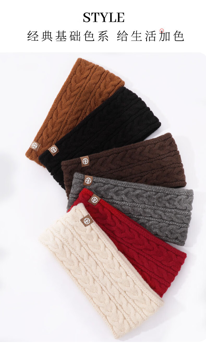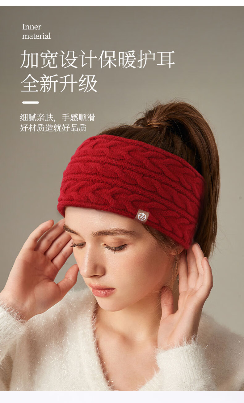 Autumn and winter widened warm ear protection headband for women outdoor sports cycling headband for men thickened knitted cable headband for women red