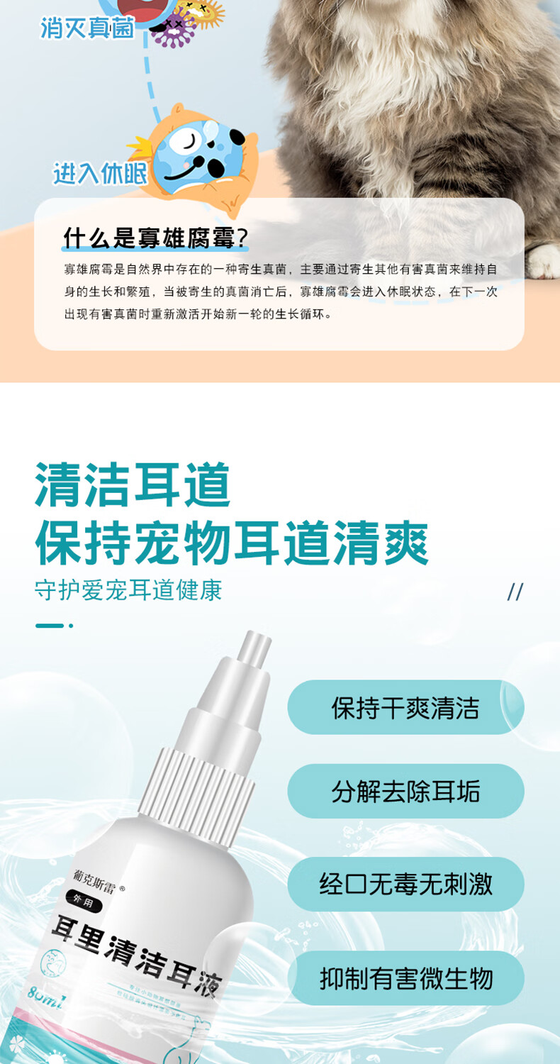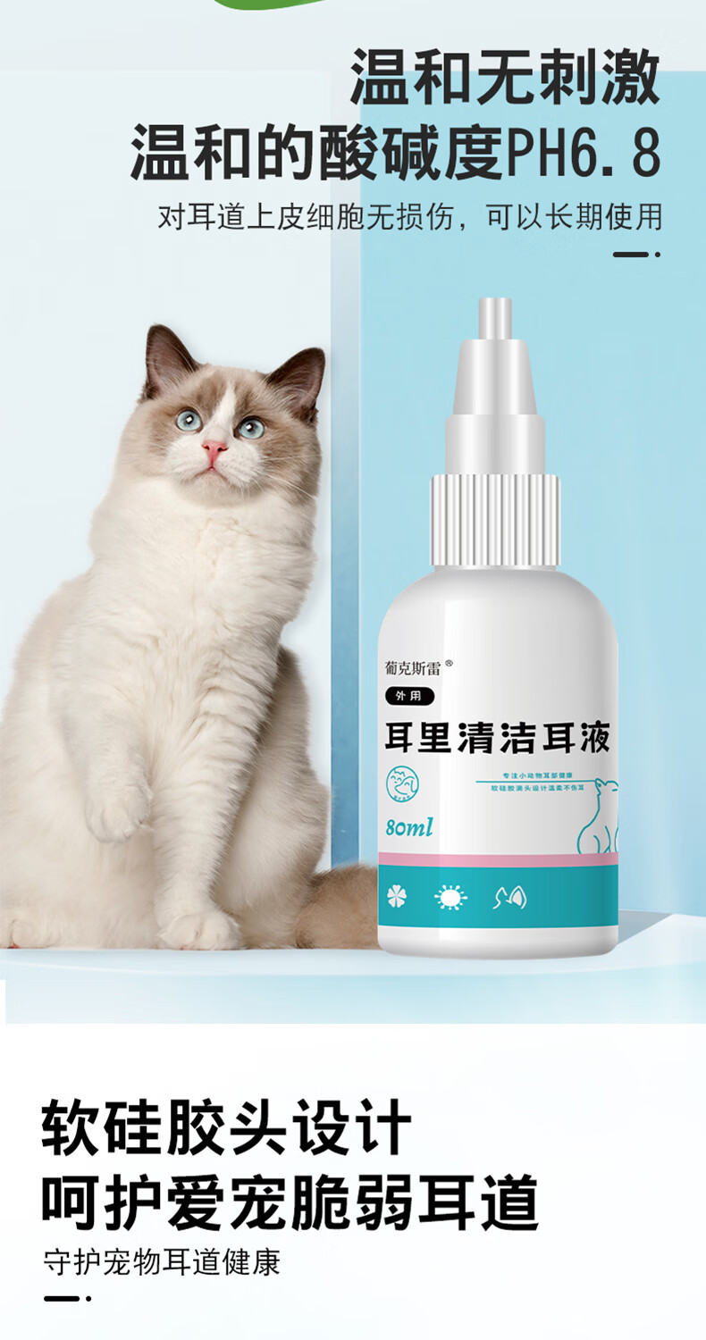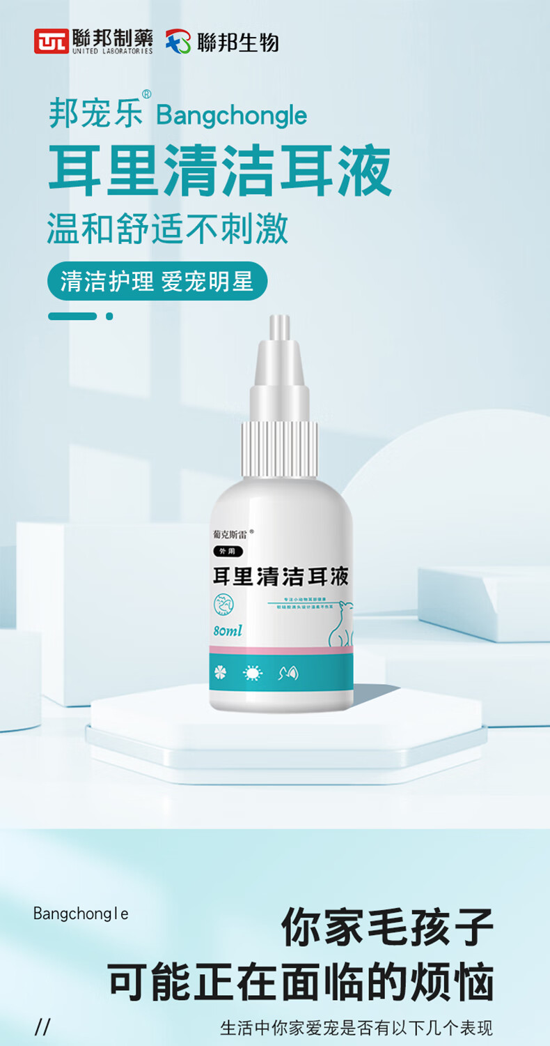 Gluxray gentle and non-irritating general ear cleaning liquid for dogs and cats United Pharmaceuticals Federal Biotechnology Ear Drops Ear Cleansing Liquid Ear Skin Ling Ear Bleaching Cat Nose Branch Ear Cleansing Liquid 50ml