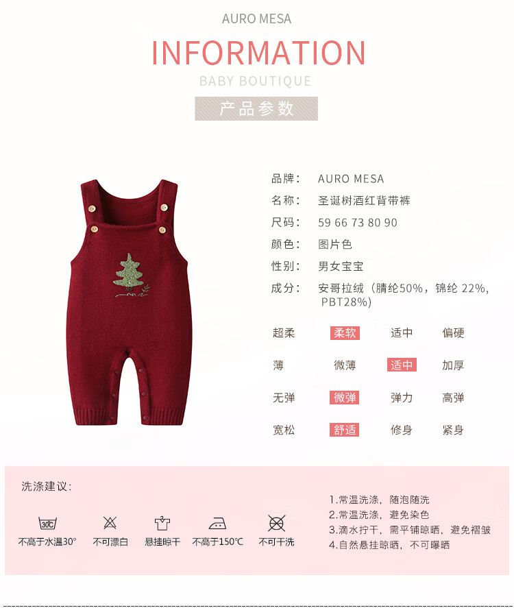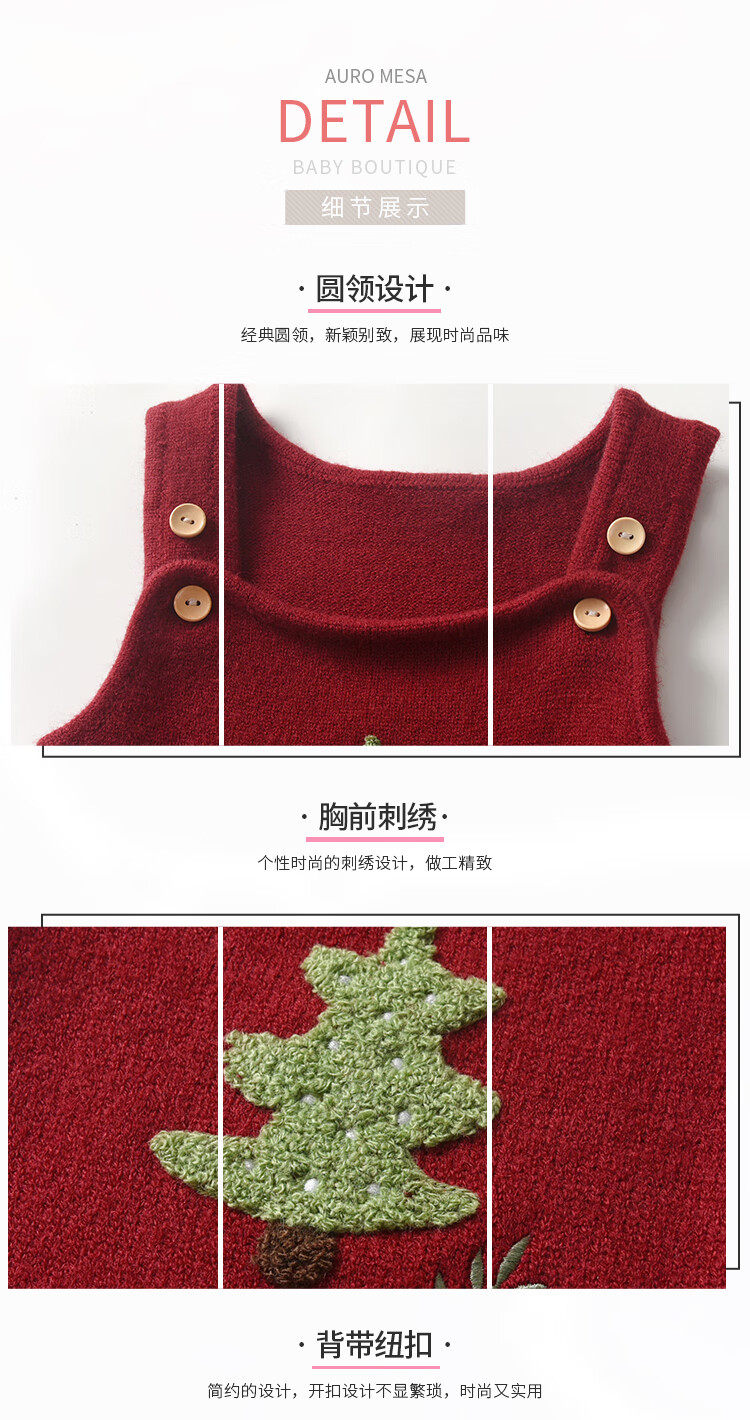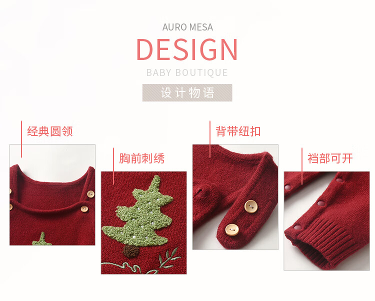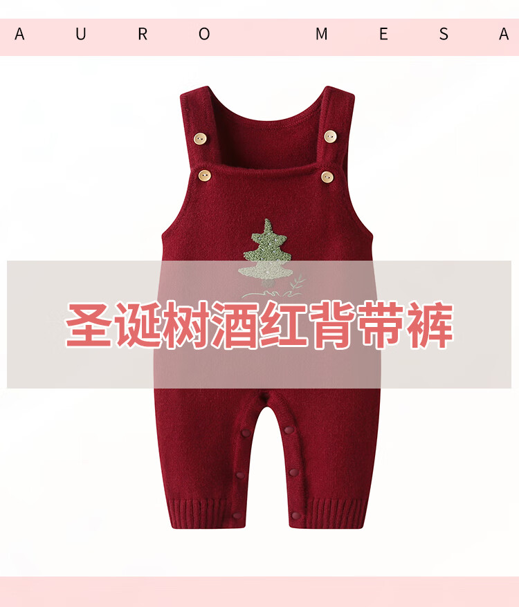 Auro Mesa Autumn and Winter Baby Clothes New Year Red Men and Women Baby Christmas Tree Overalls Knitted Sweater Pants Burgundy 90cm