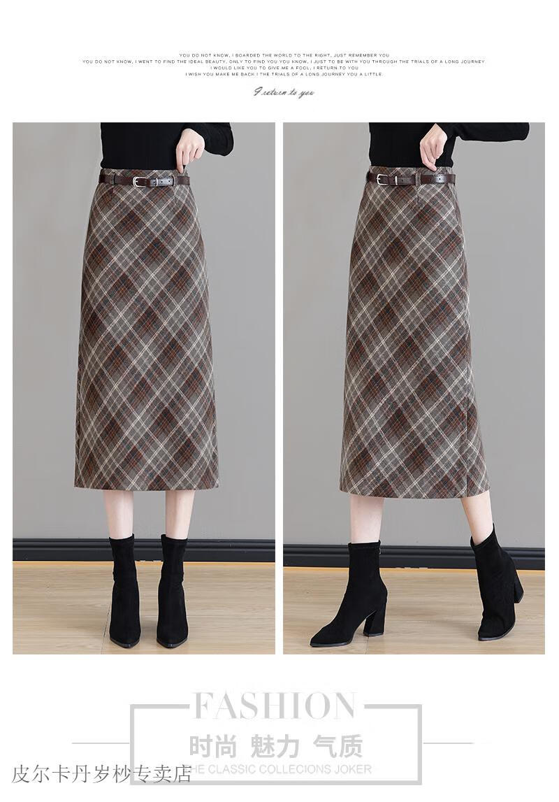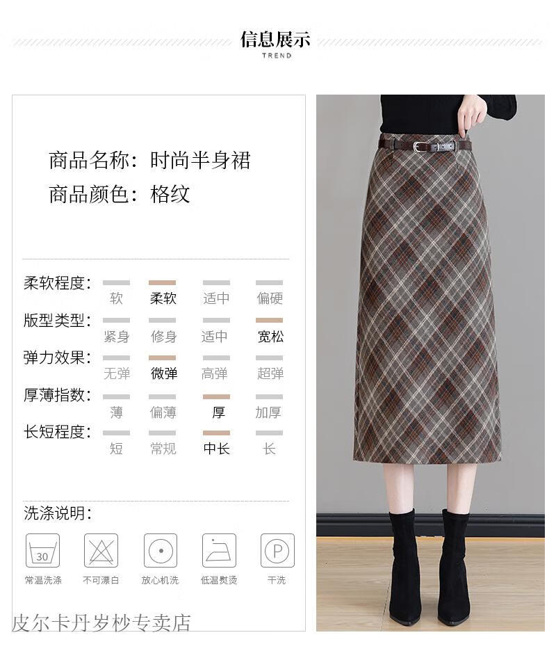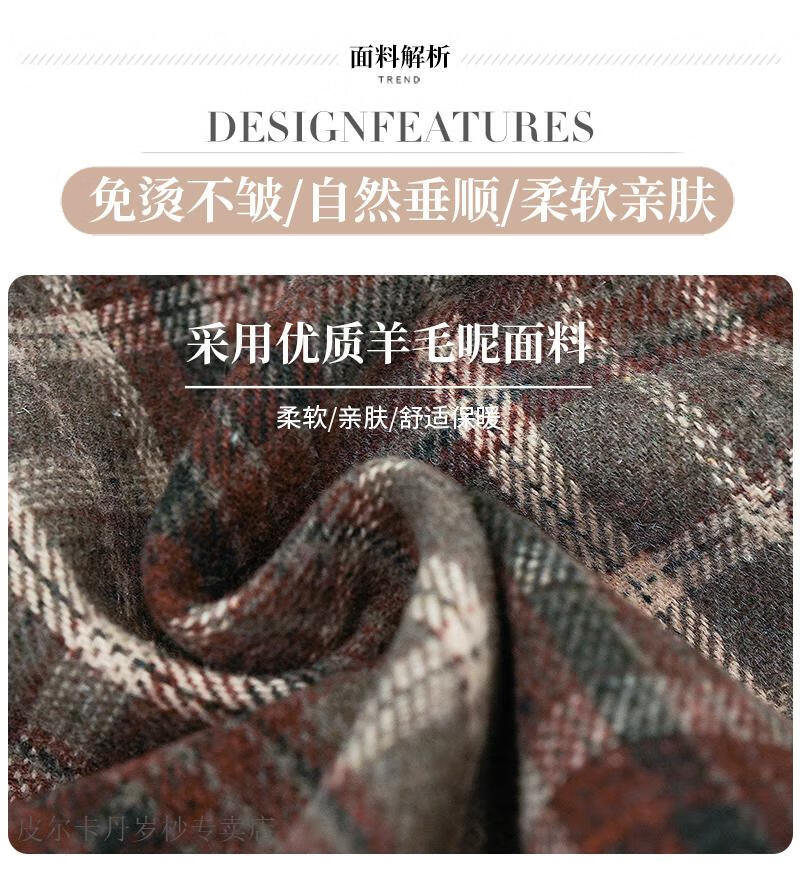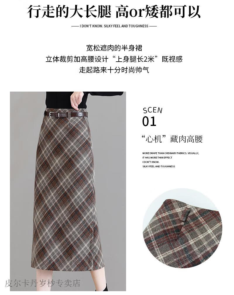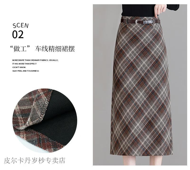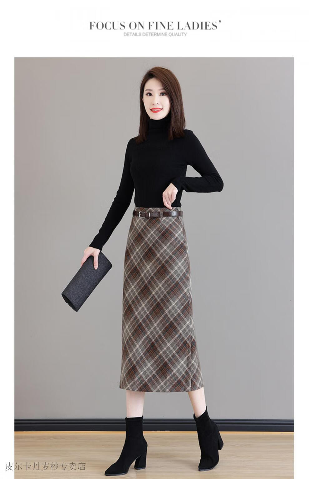 Pierre Cardin plaid woolen skirt for women 2025 autumn and winter new style high-waisted mid-length a-line thickened one-step hip skirt plaid M 27