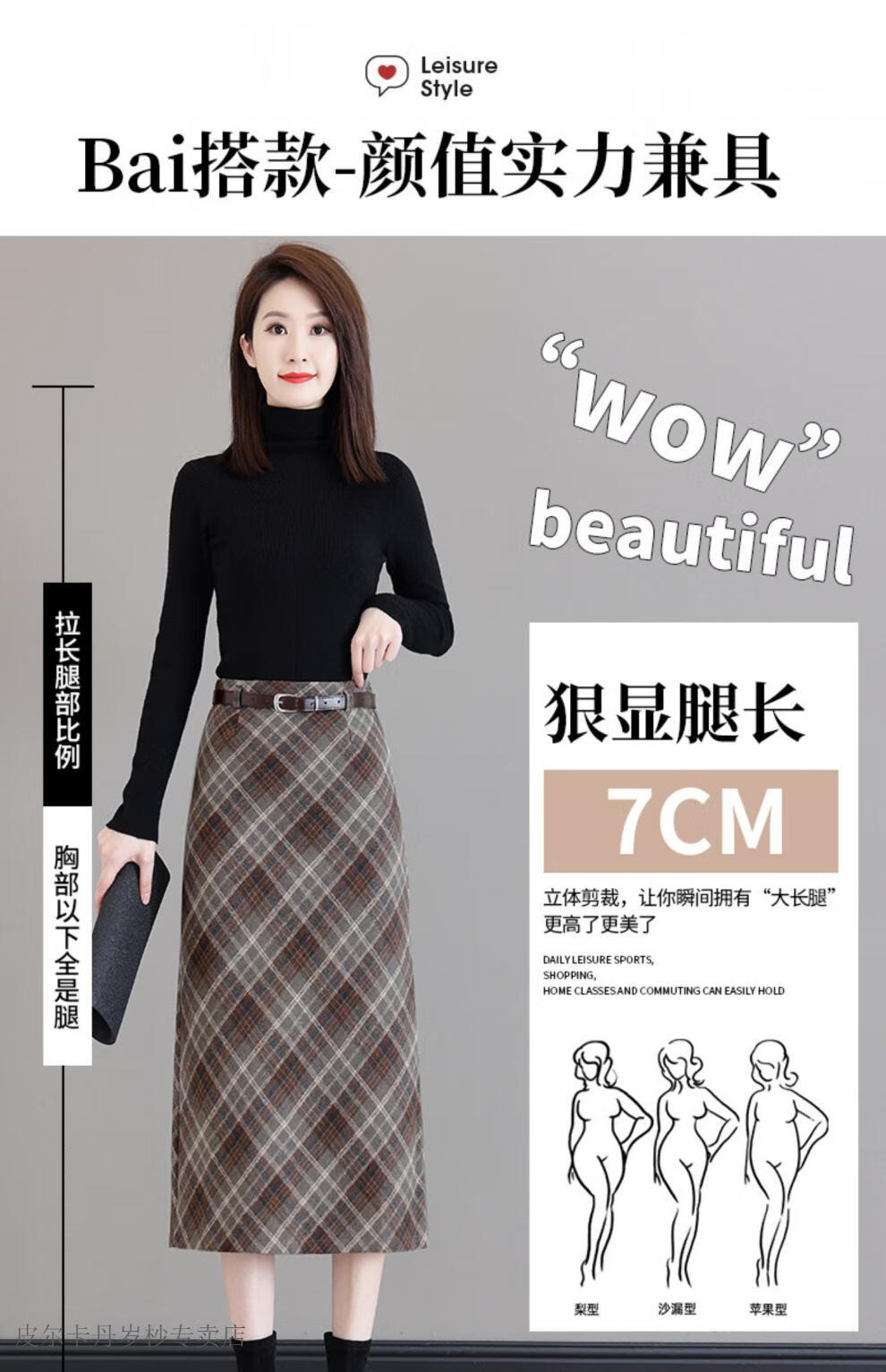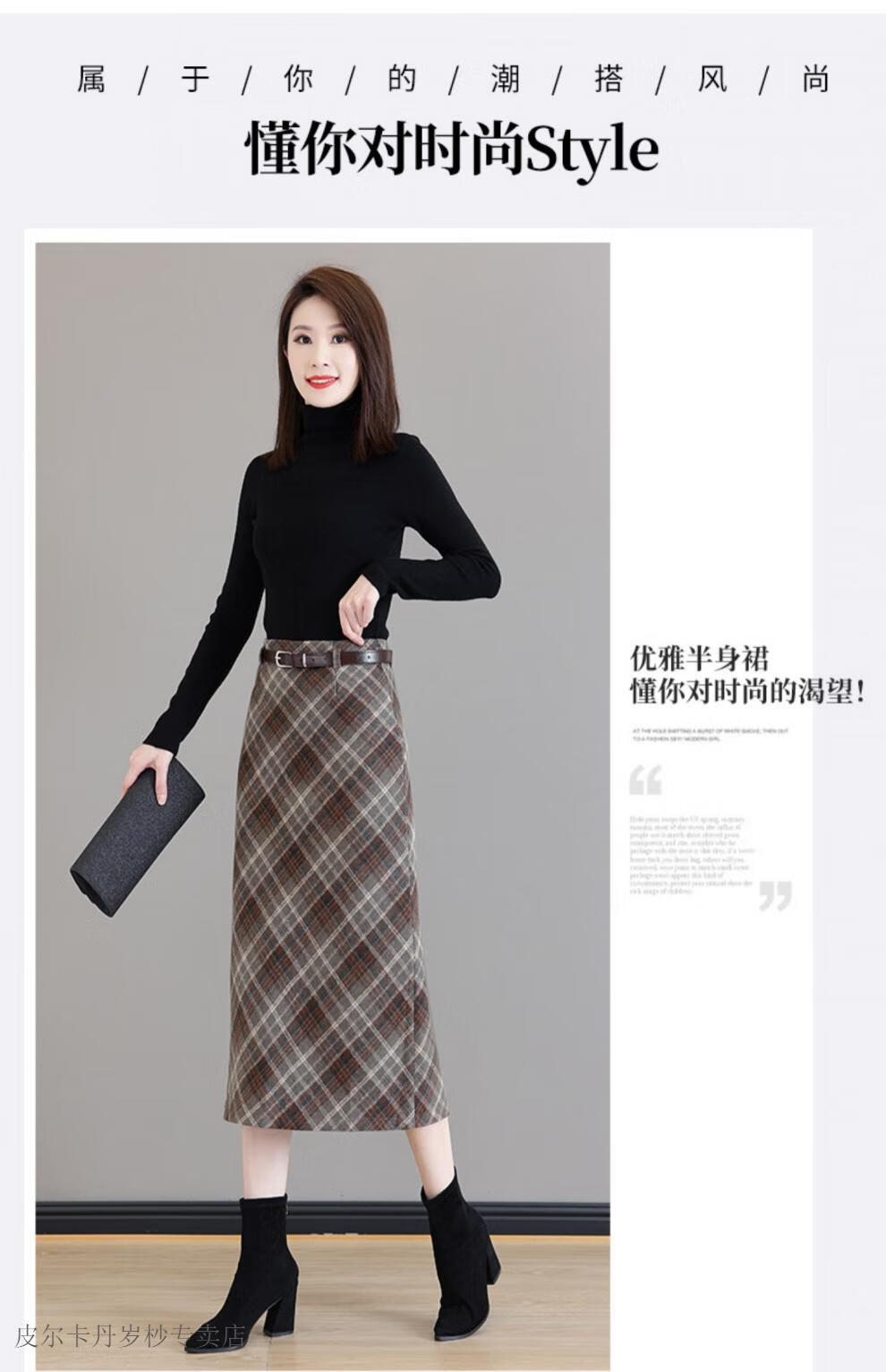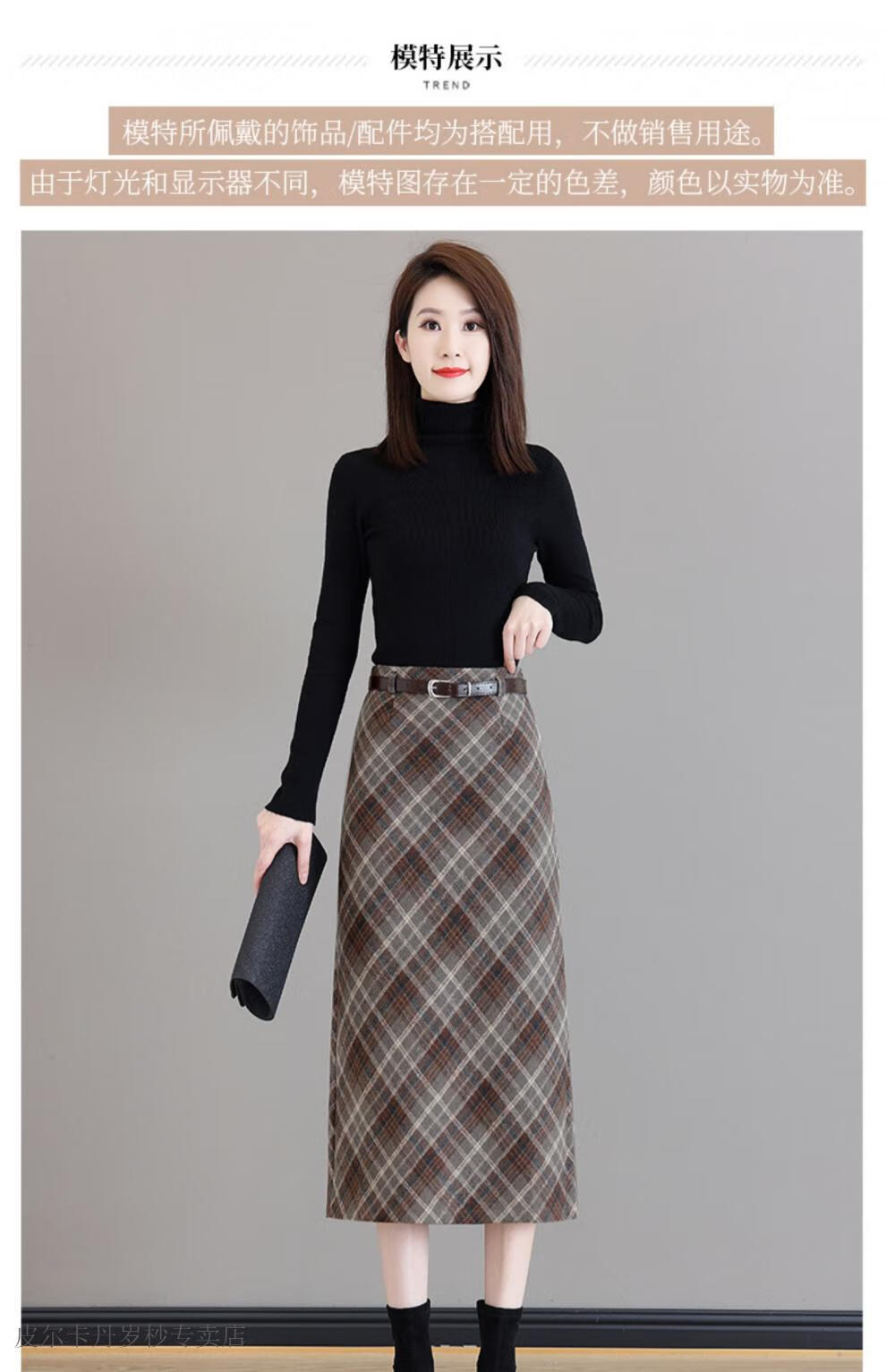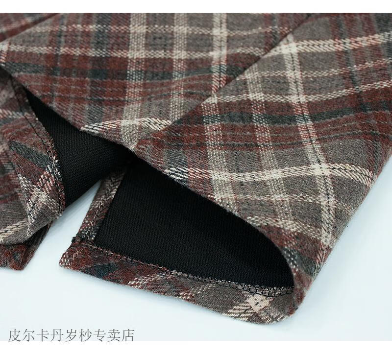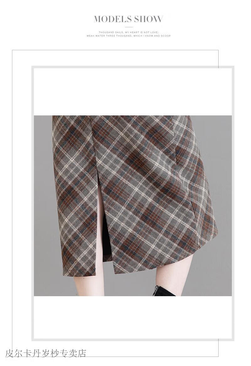 Pierre Cardin plaid woolen skirt for women 2025 autumn and winter new style high-waisted mid-length a-line thickened one-step hip skirt plaid M 27