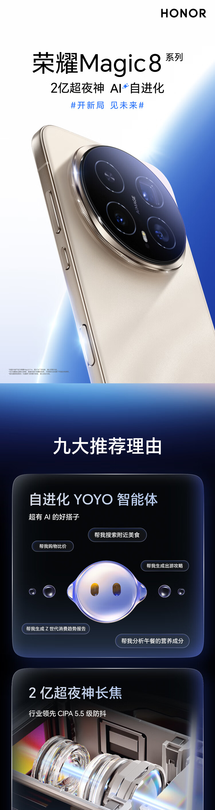 HONOR Magic8 Pro New 5GAI Mobile Phone Fifth Generation Snapdragon 8 Extreme Edition YOYO Smart Super Night God Telephoto Nicholas Tse's Same Style Sky Blue 16GB+1TB 2 Years Broken Screen Insurance 24 Periods Interest-Free Package