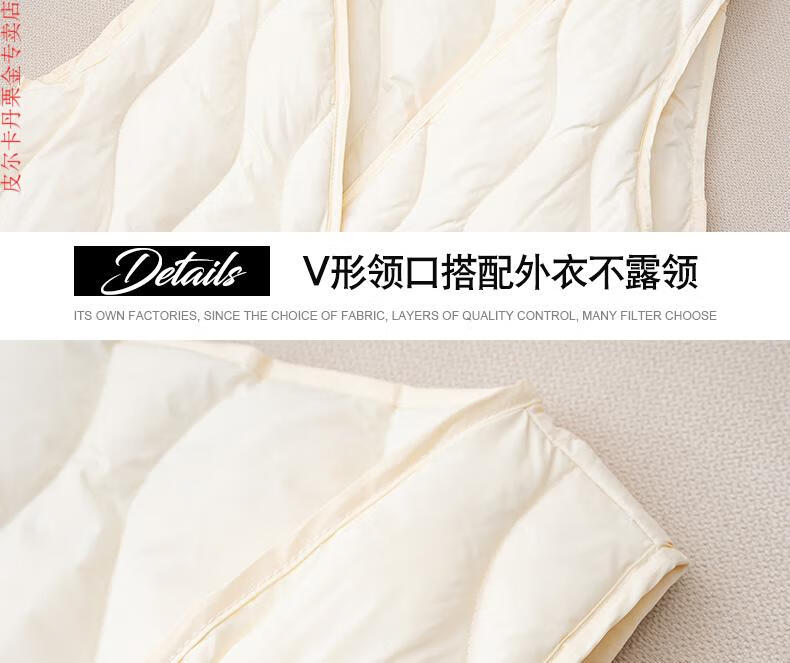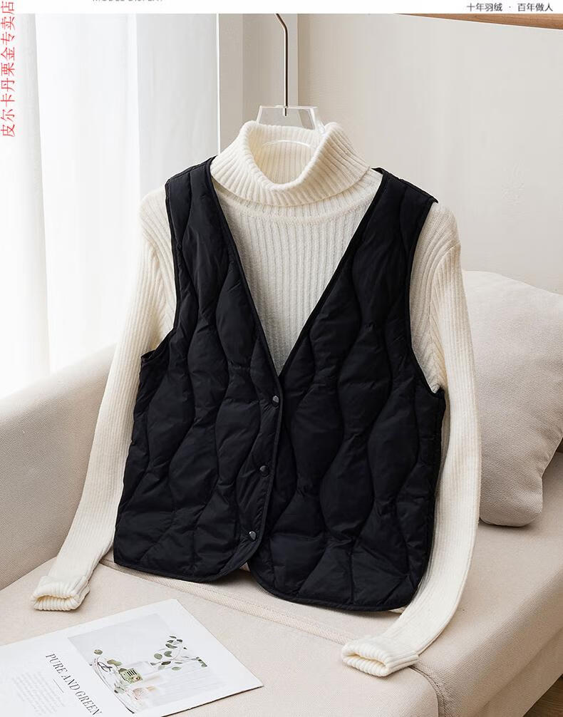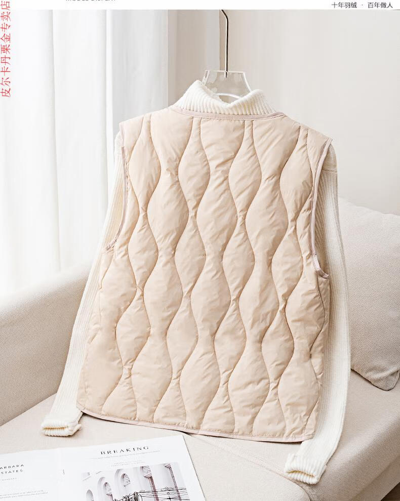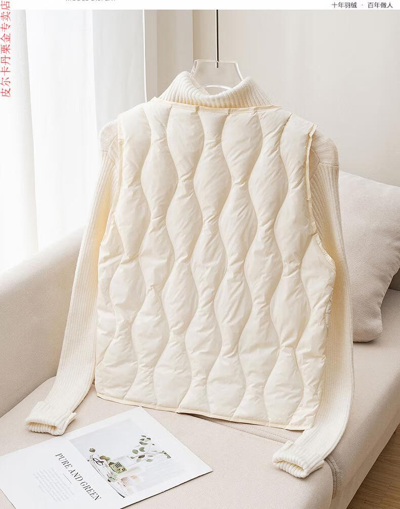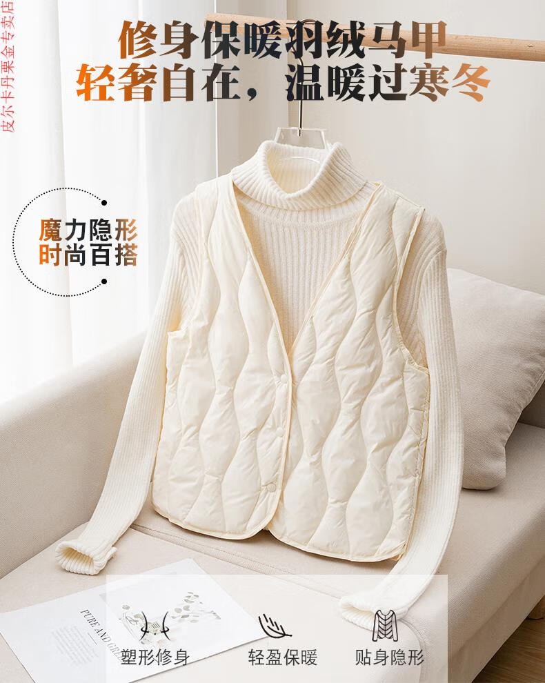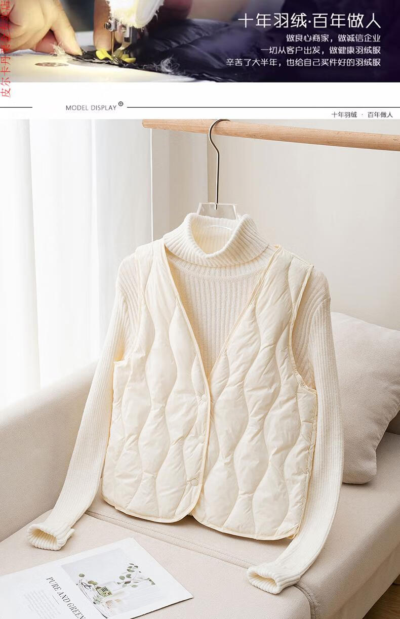 Pierre Cardin women's short down vest autumn and winter new slim fit thin warm inner vest with coat V-neck duck down liner milky white S