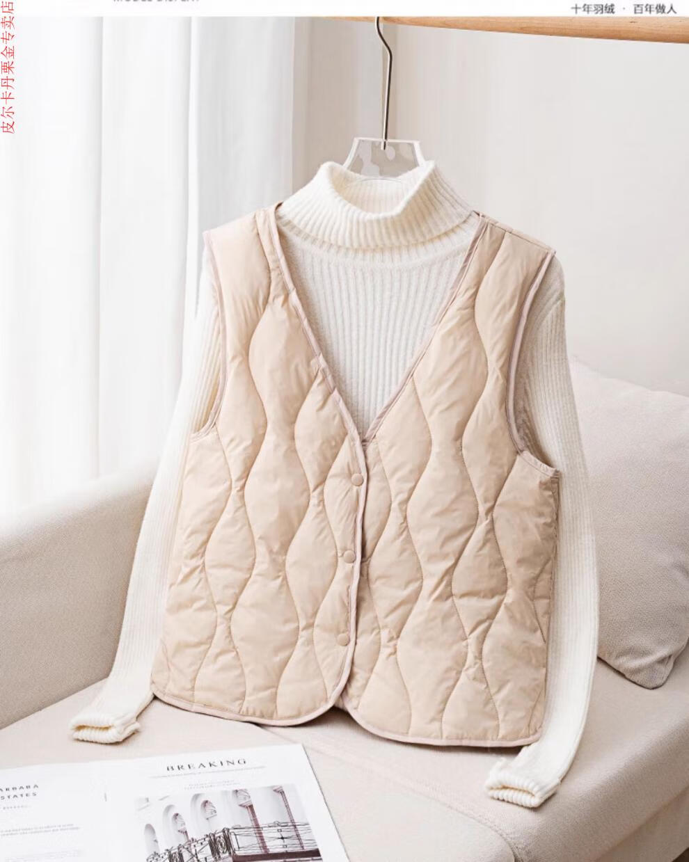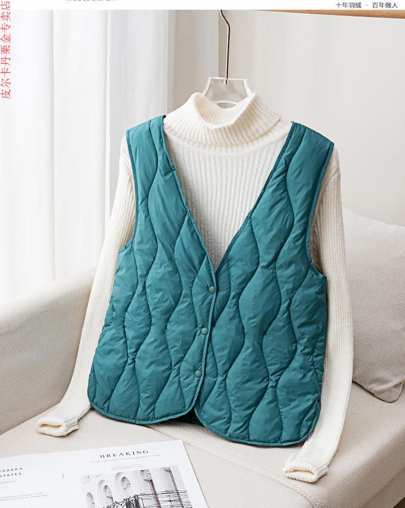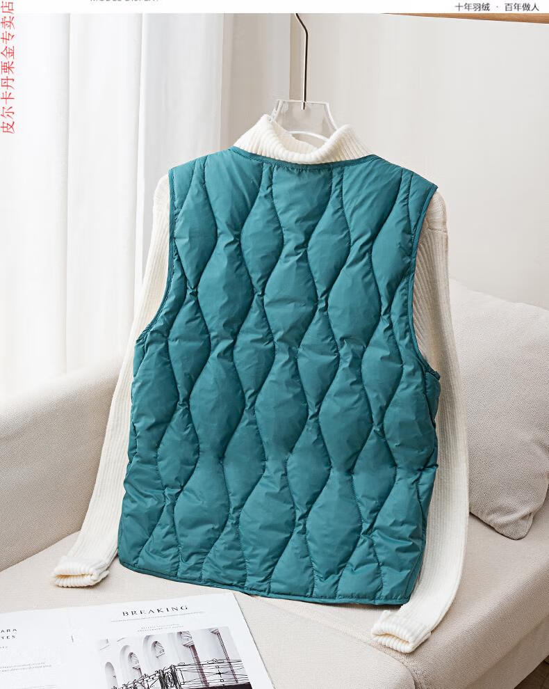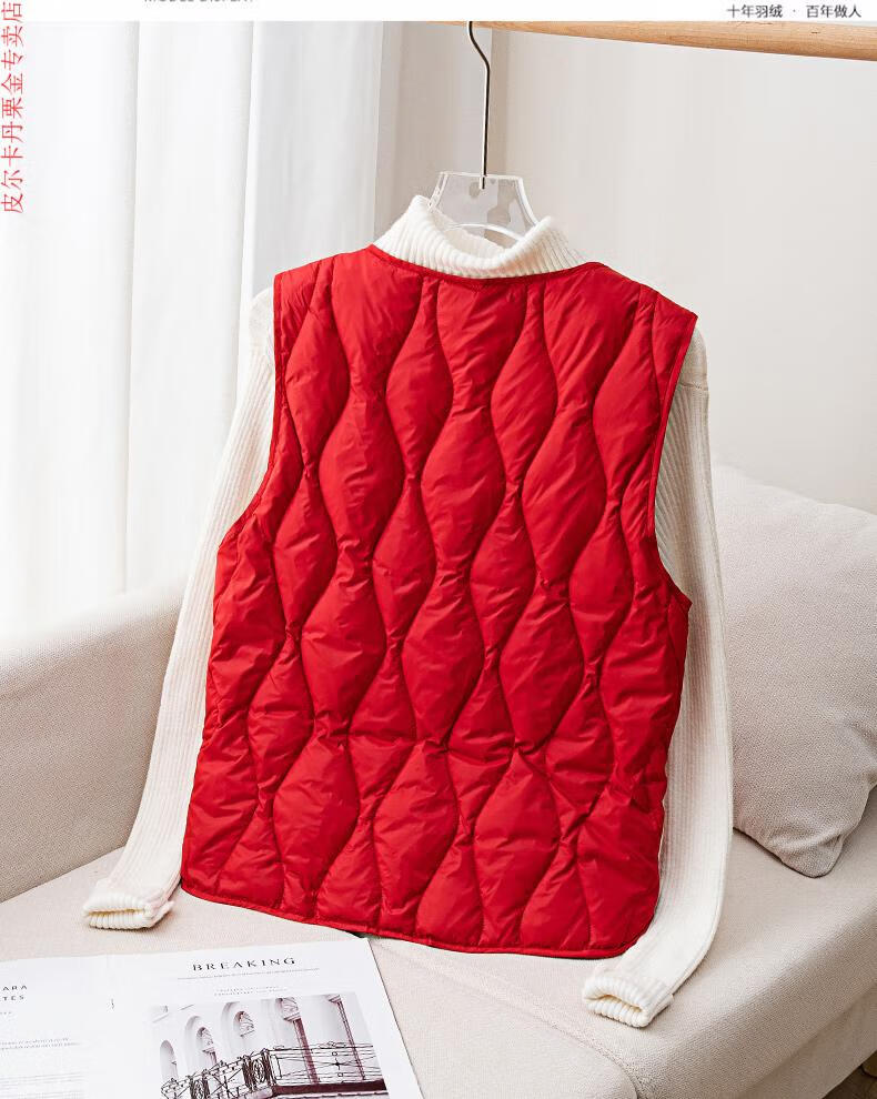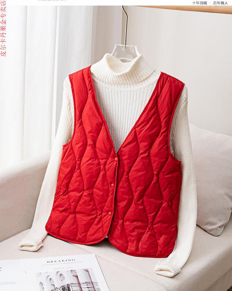 Pierre Cardin women's short down vest autumn and winter new slim fit thin warm inner vest with coat V-neck duck down liner milky white S