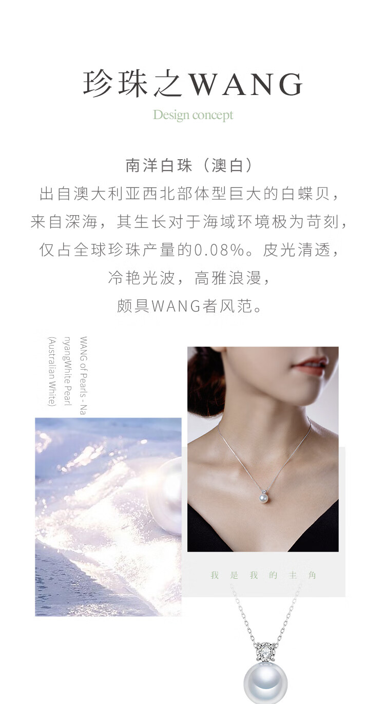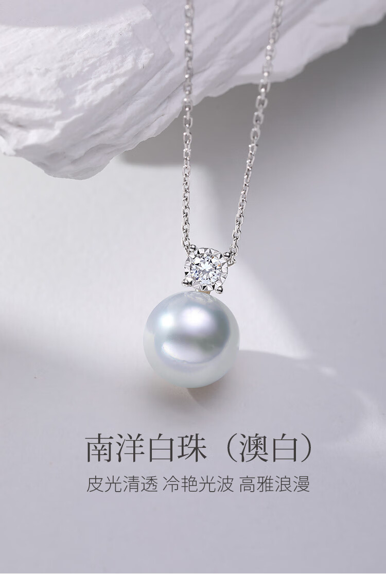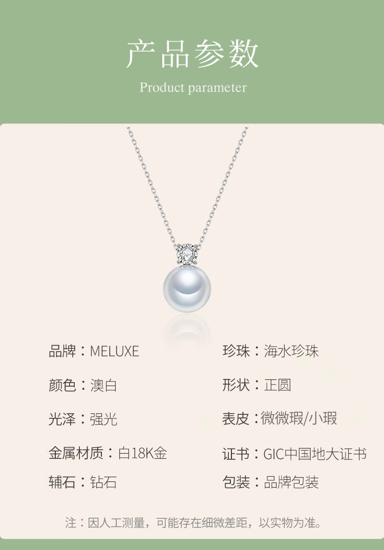 Meluxe 18K gold seawater pearl pendant Australian white pearl clavicle chain Princess Diana series birthday gift for wife Xiaoxia 14-14.5mm