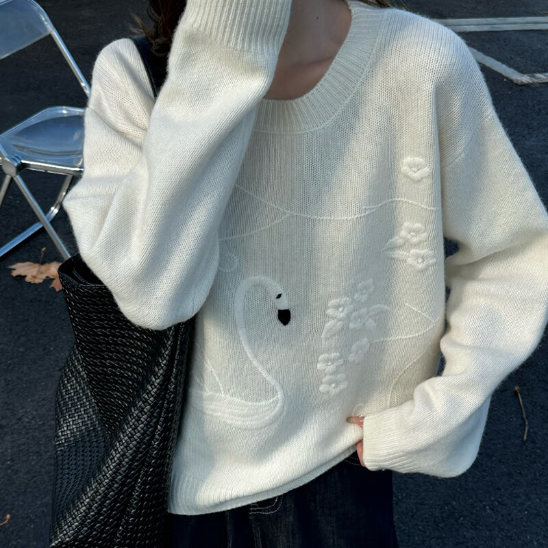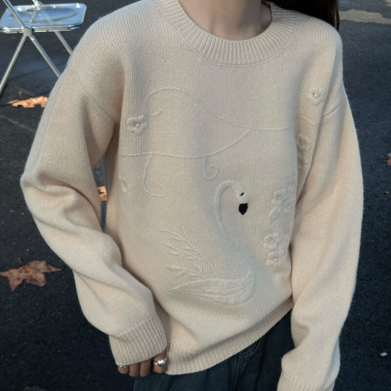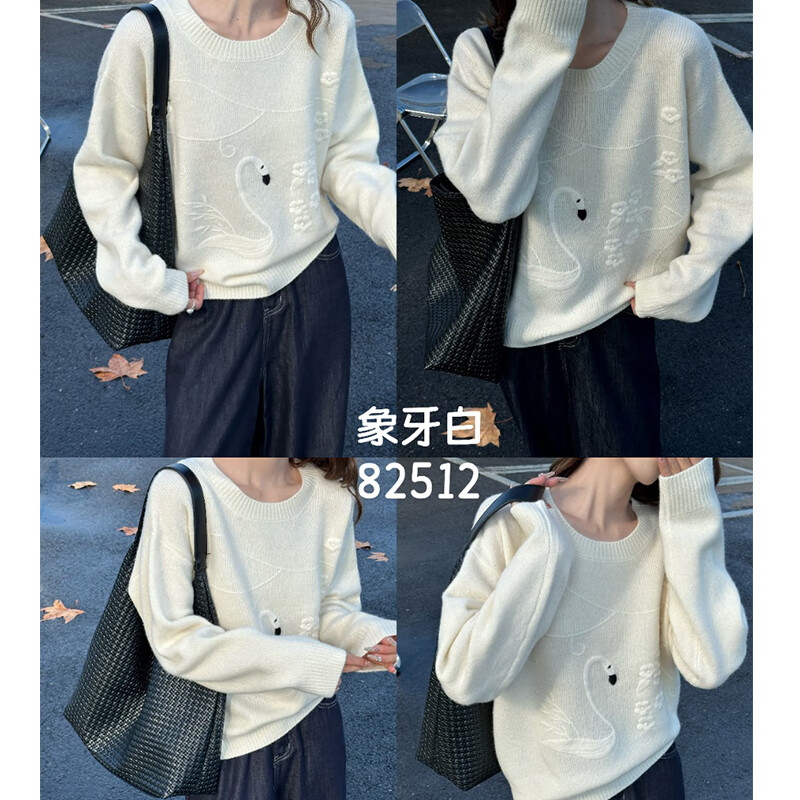 Baoye round neck 100% wool sweater pullover sweater for women autumn and winter style inner layering shirt loose and versatile knitted sweater top retro gray one size