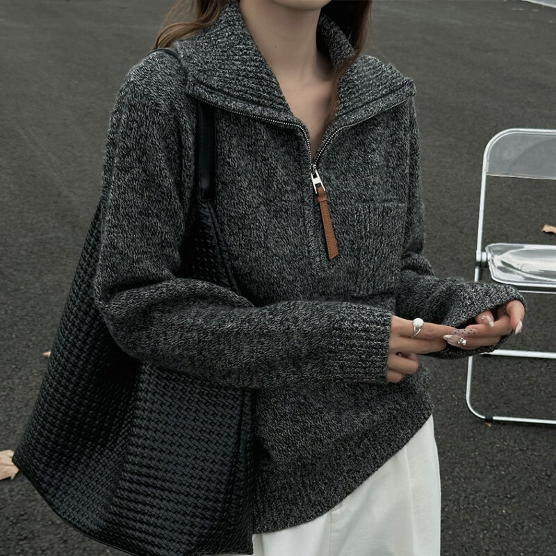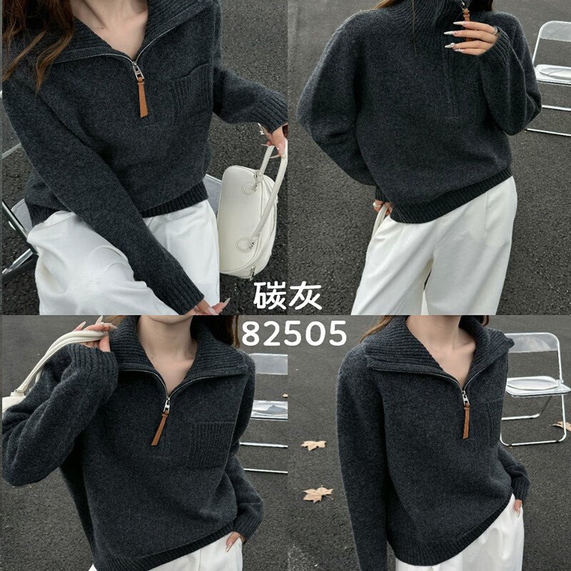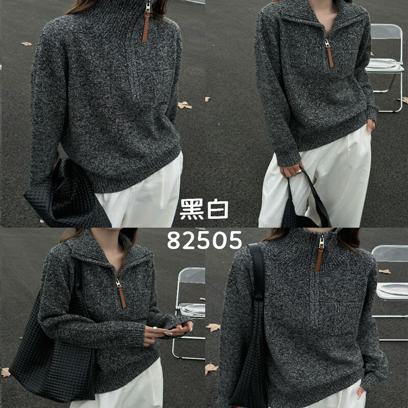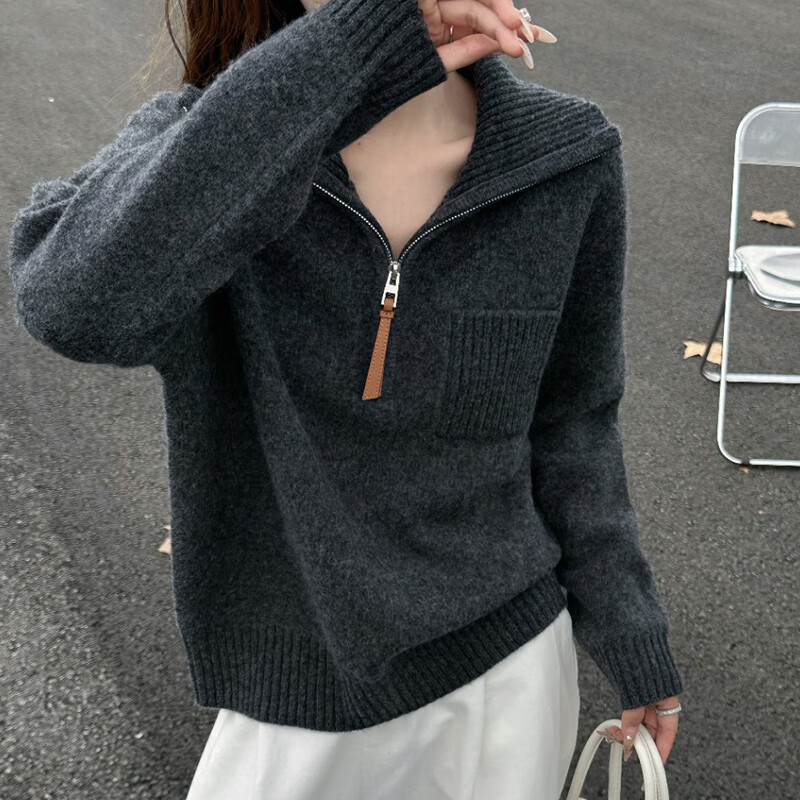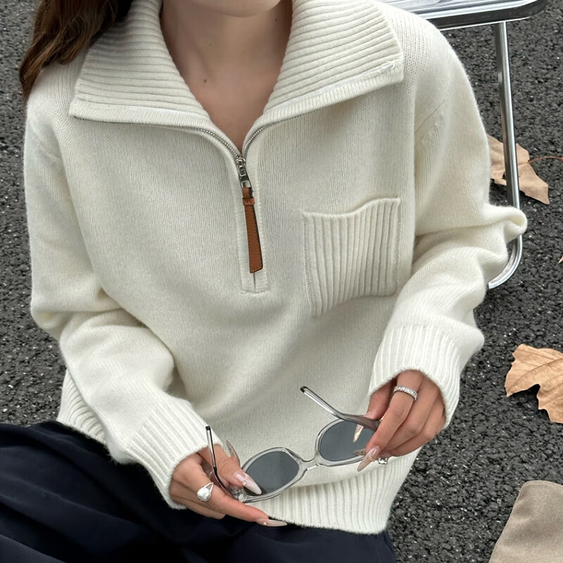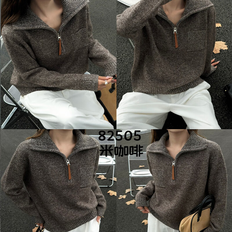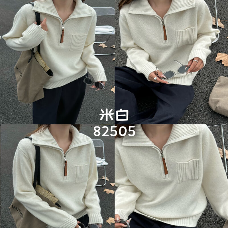 Baoye Half Turtle Collar Pure Wool Sweater Women's Autumn and Winter Thickened Warm Bottoming Shirt Zipper Design Niche Knitted Sweater Rice Coffee One Size