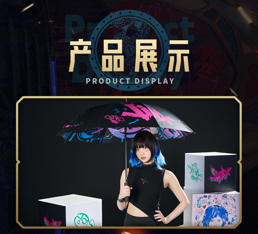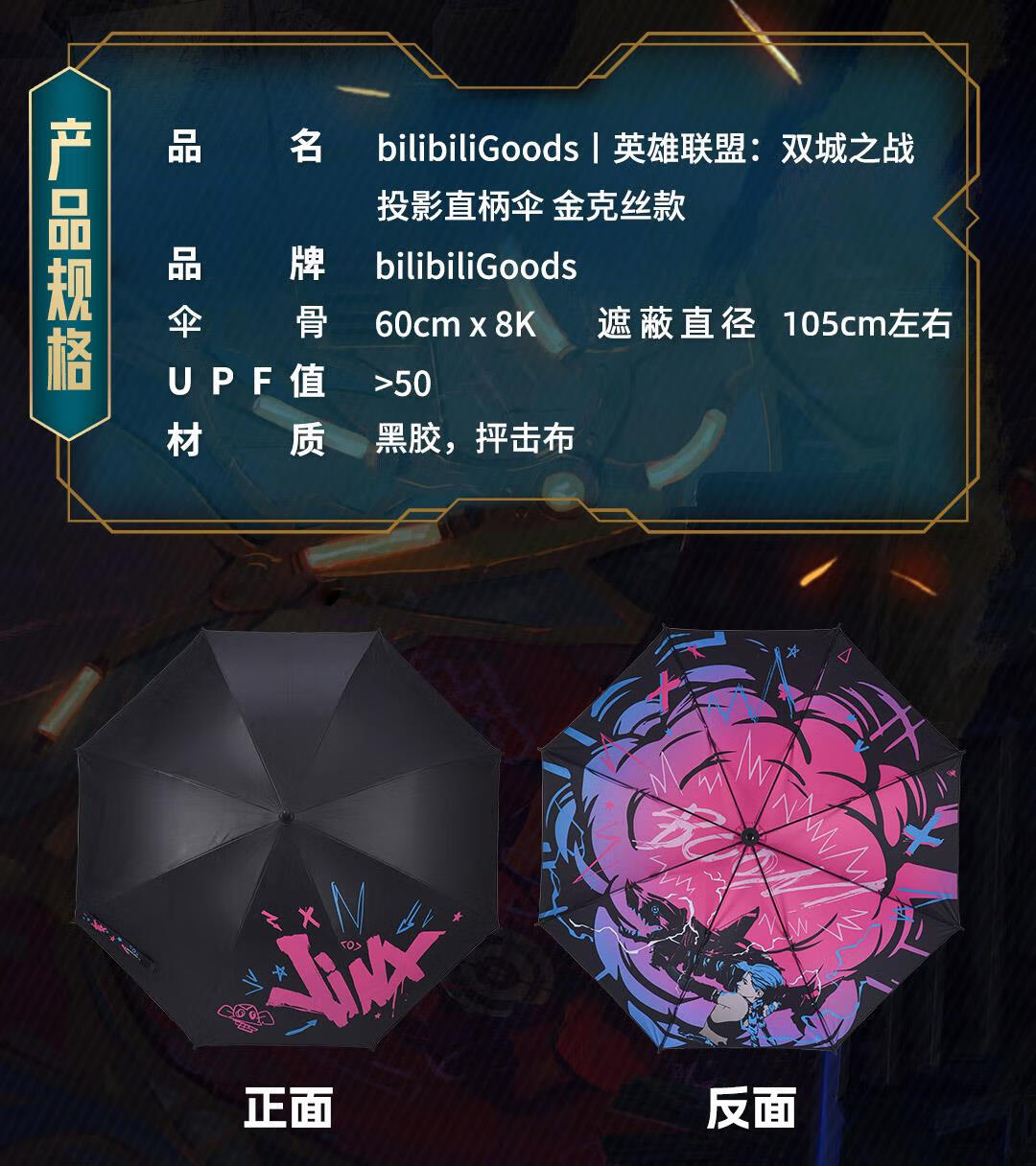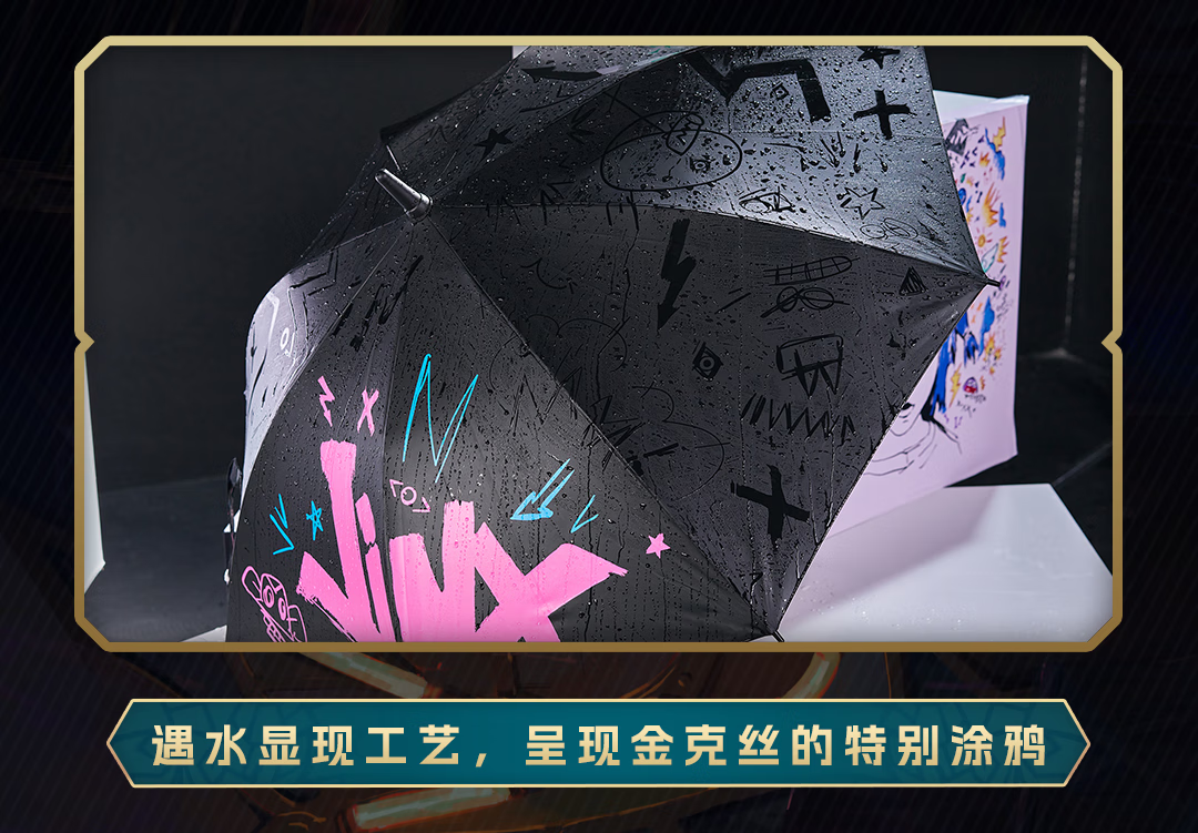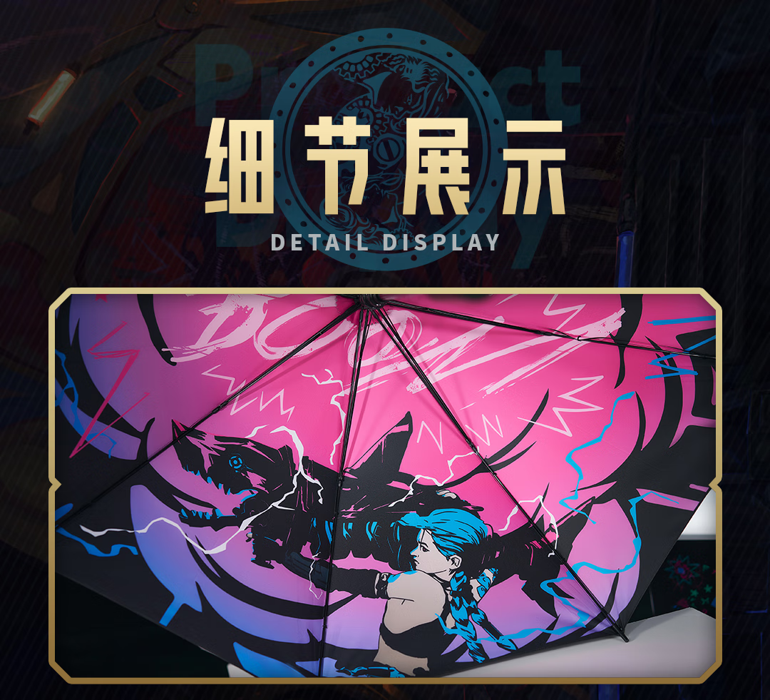 League of Legends bilibiliGoods Battle of Two Cities Jinx Graffiti Projection Umbrella Straight Handle Umbrella Vinyl Umbrella Game Peripheral Projection Umbrella