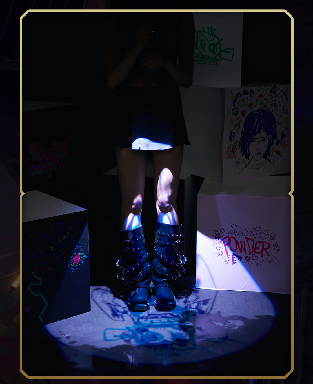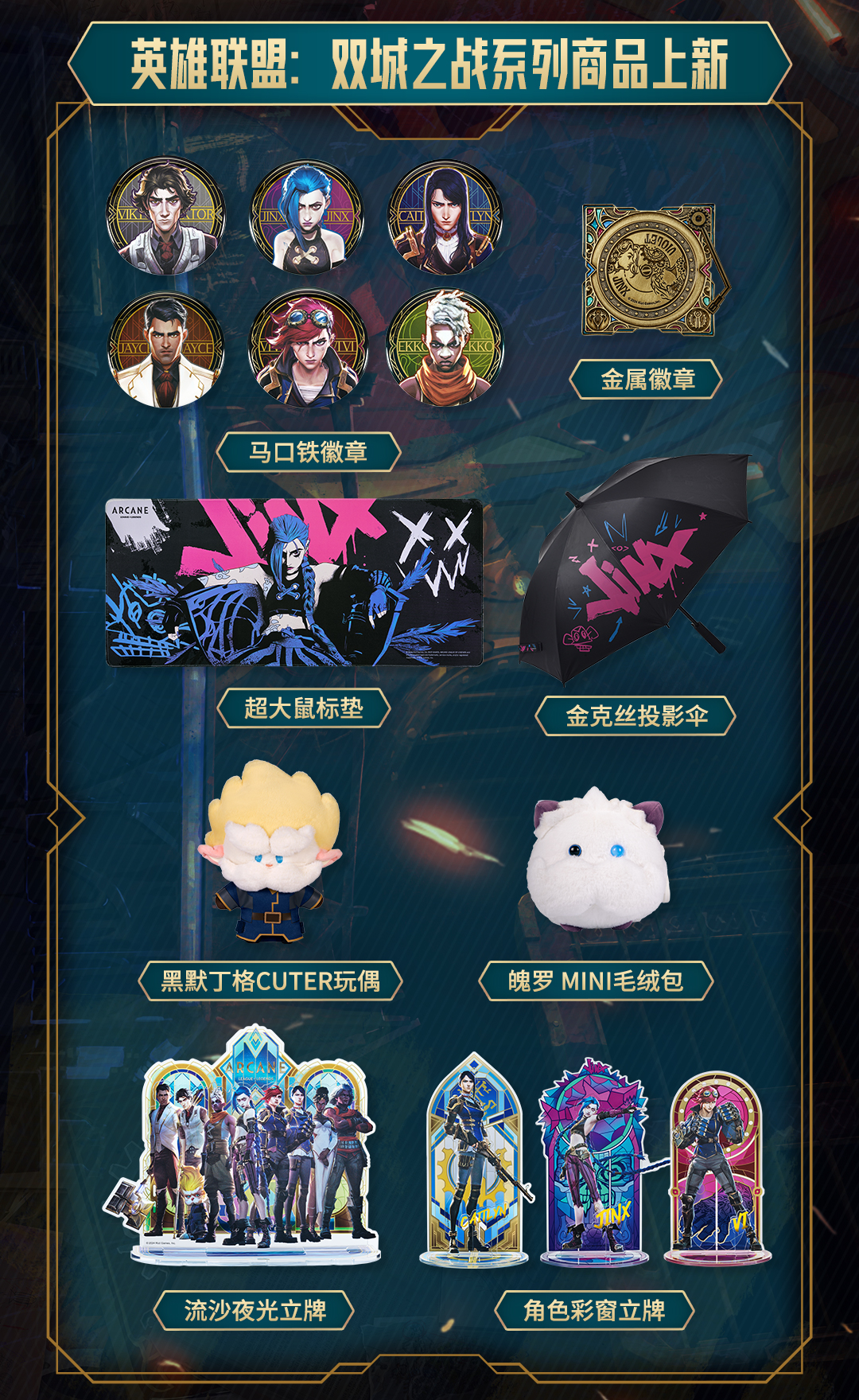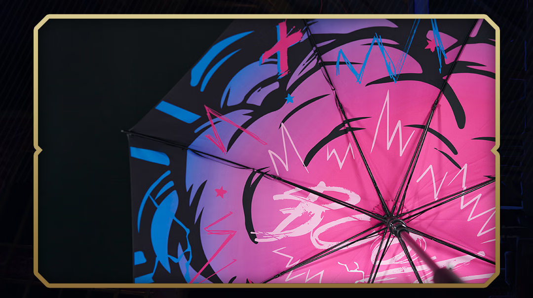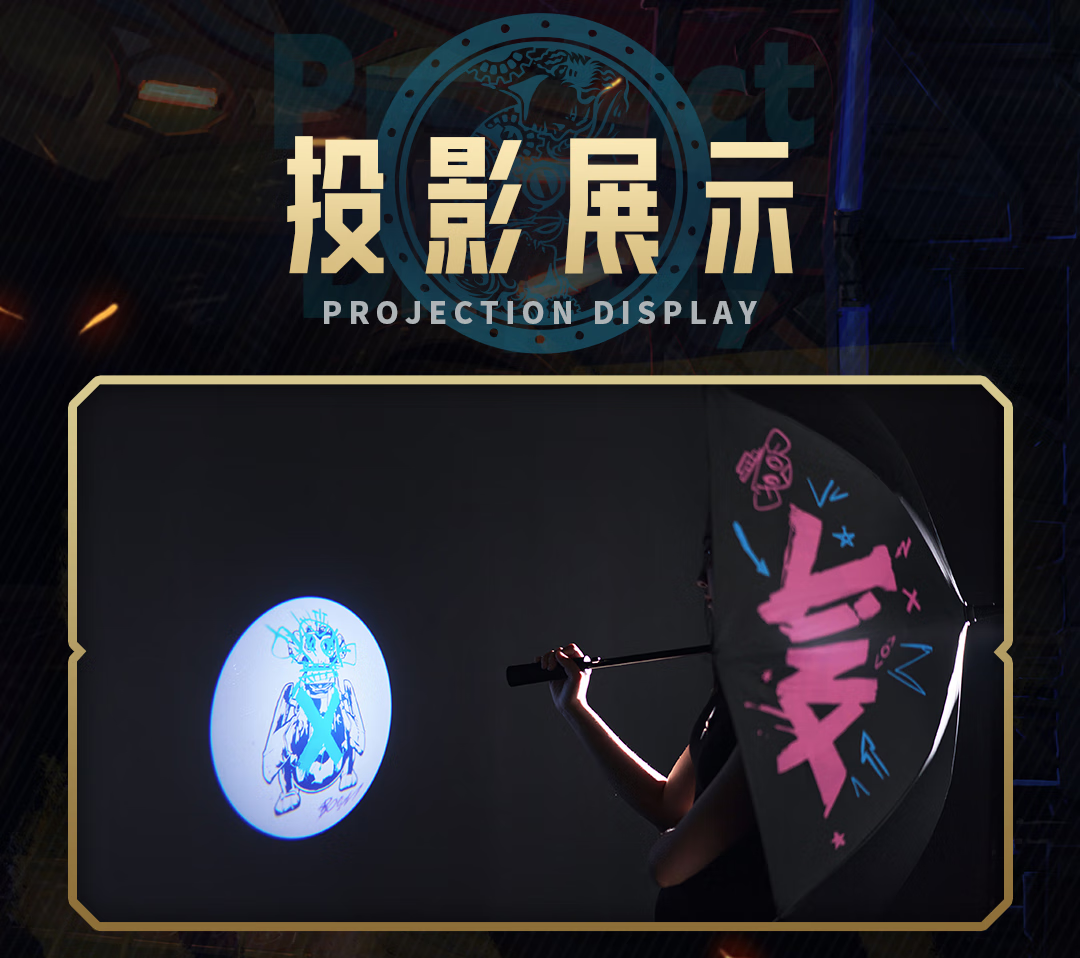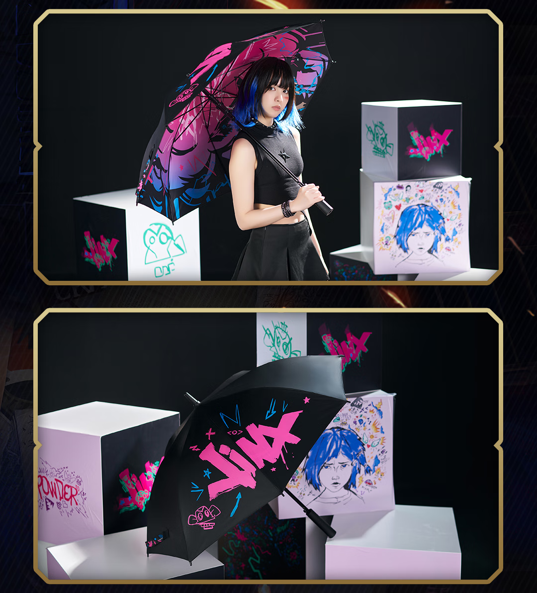 League of Legends bilibiliGoods Battle of Two Cities Jinx Graffiti Projection Umbrella Straight Handle Umbrella Vinyl Umbrella Game Peripheral Projection Umbrella