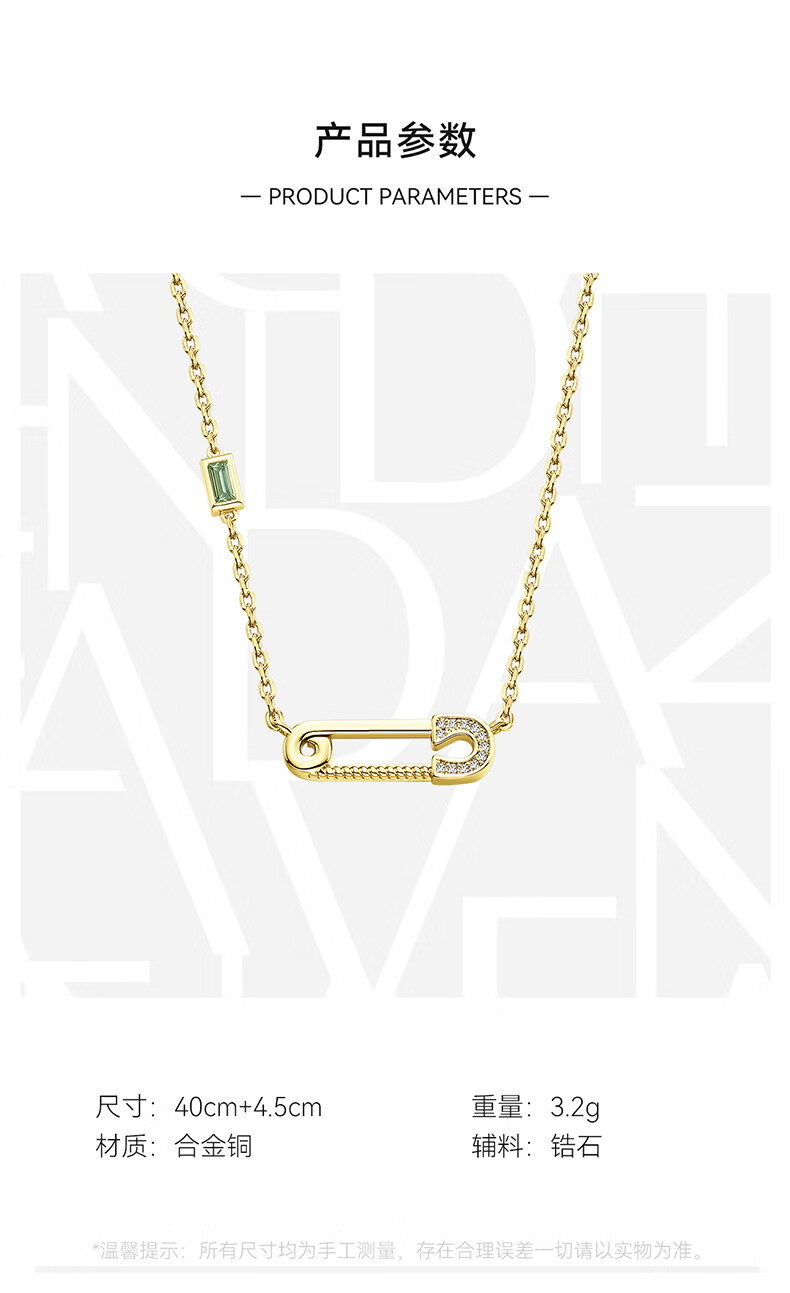 Davena small pin lucky brooch necklace women's light luxury clavicle chain birthday gift for girlfriend gold 40cm 1 piece