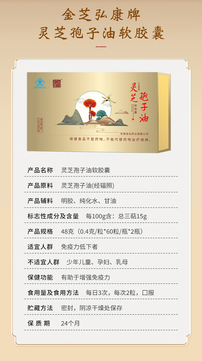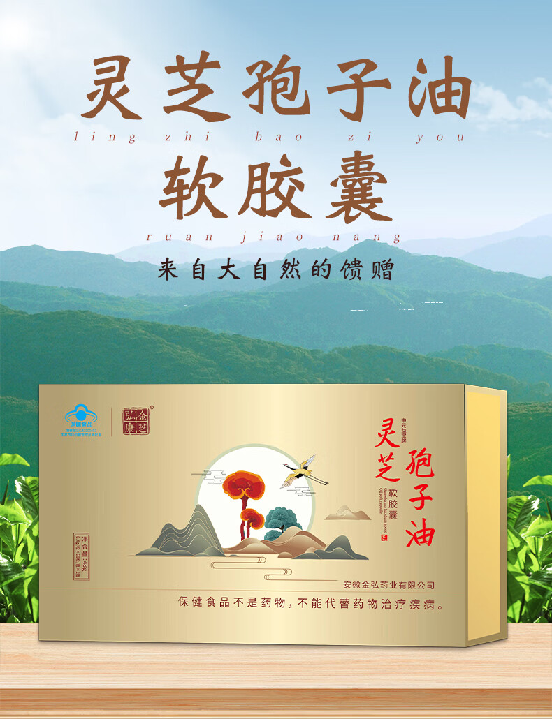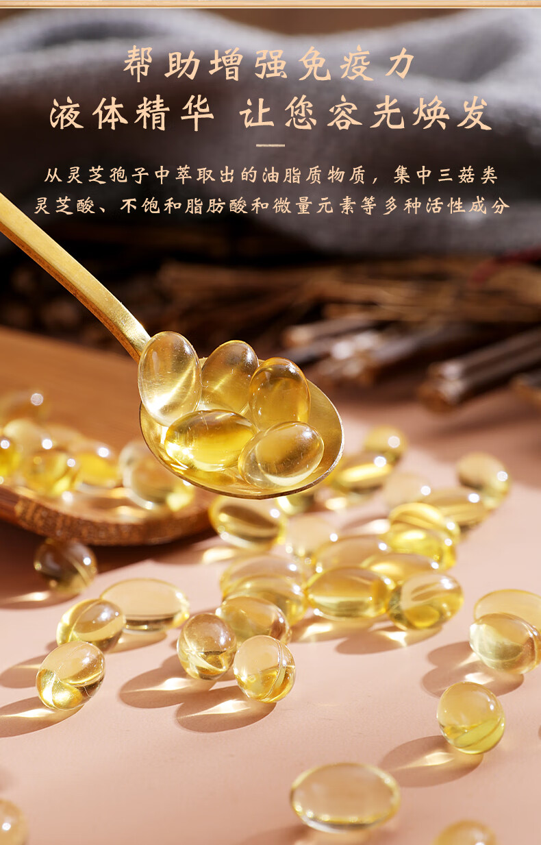 Jinzhi Hongkang High Content Ganoderma Spore Oil Soft Capsule Red Ganoderma Spore Powder Extraction Enhances Immunity for Adults Middle-aged and Elderly Nutrition High Content Spore Oil 120 Capsules Two Boxes Ganoderma Spore Oil