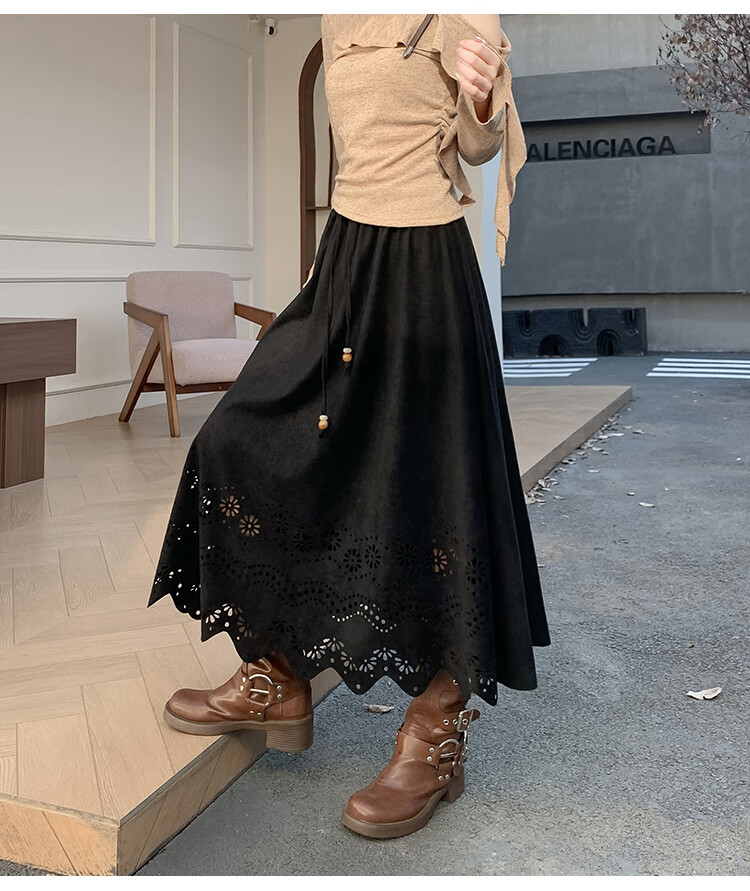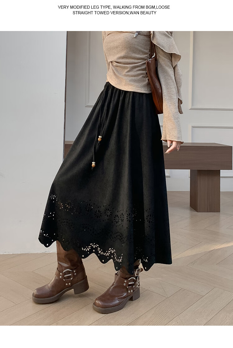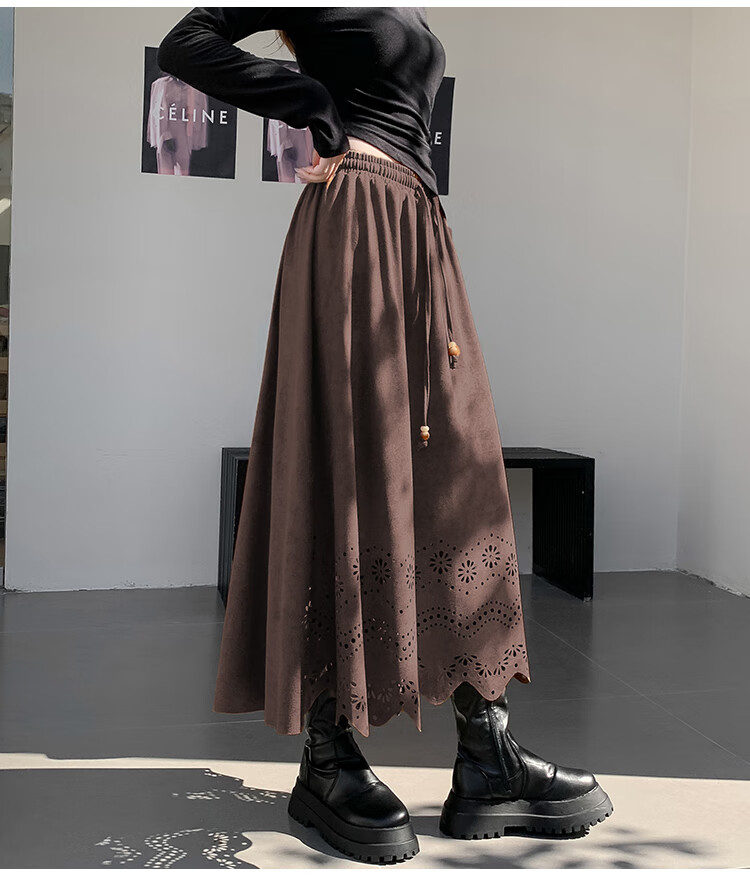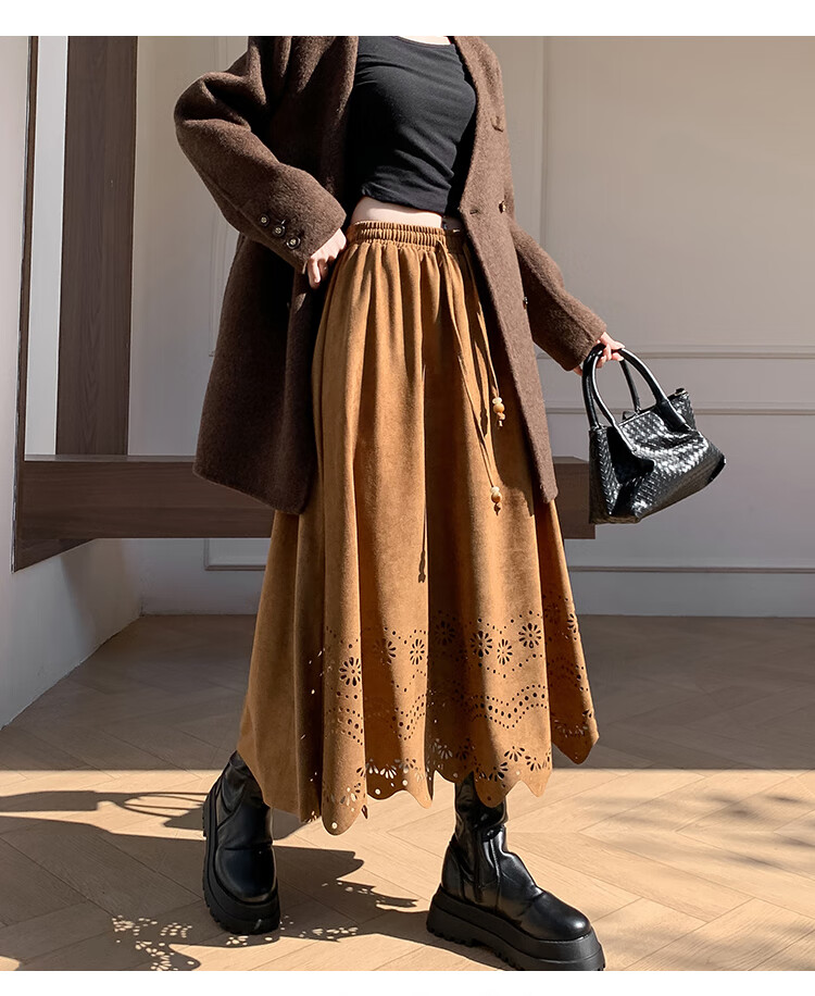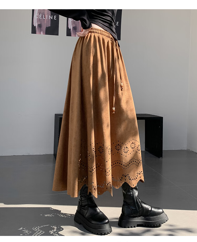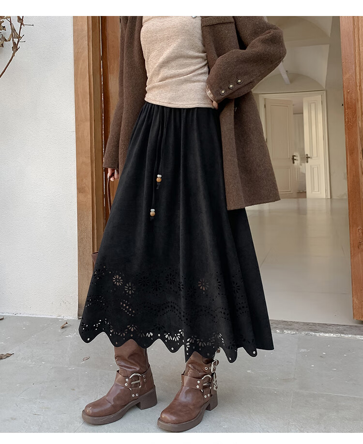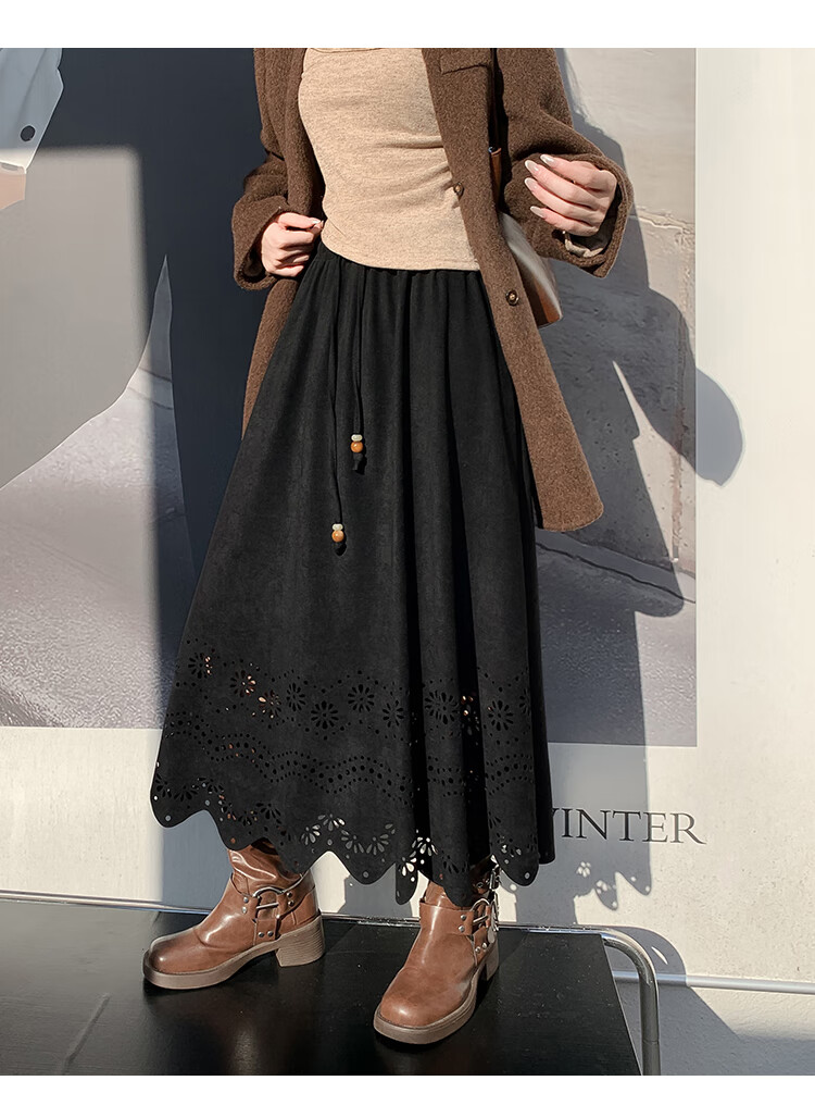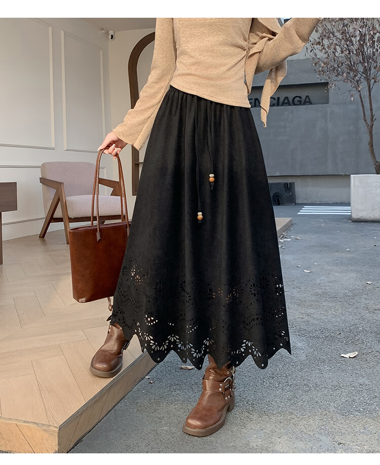 A-line skirt for women 2025 new autumn and winter pleated long skirt, high-end, small, suede, versatile, black, one size