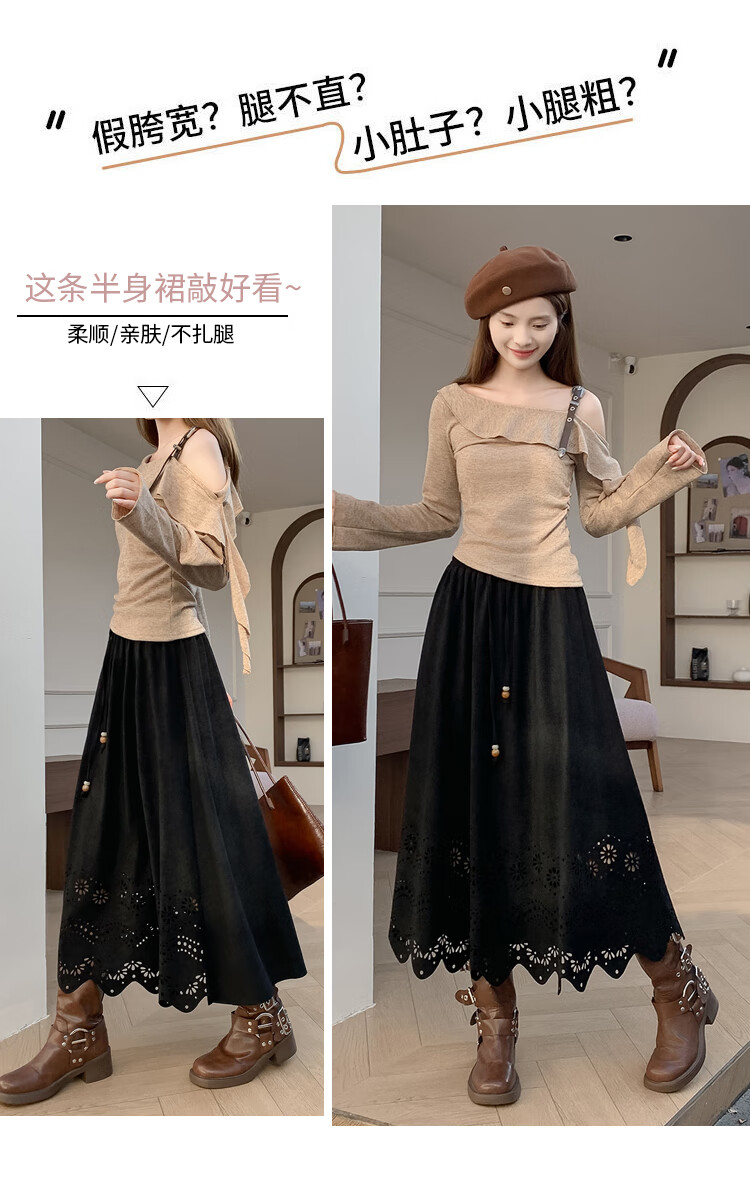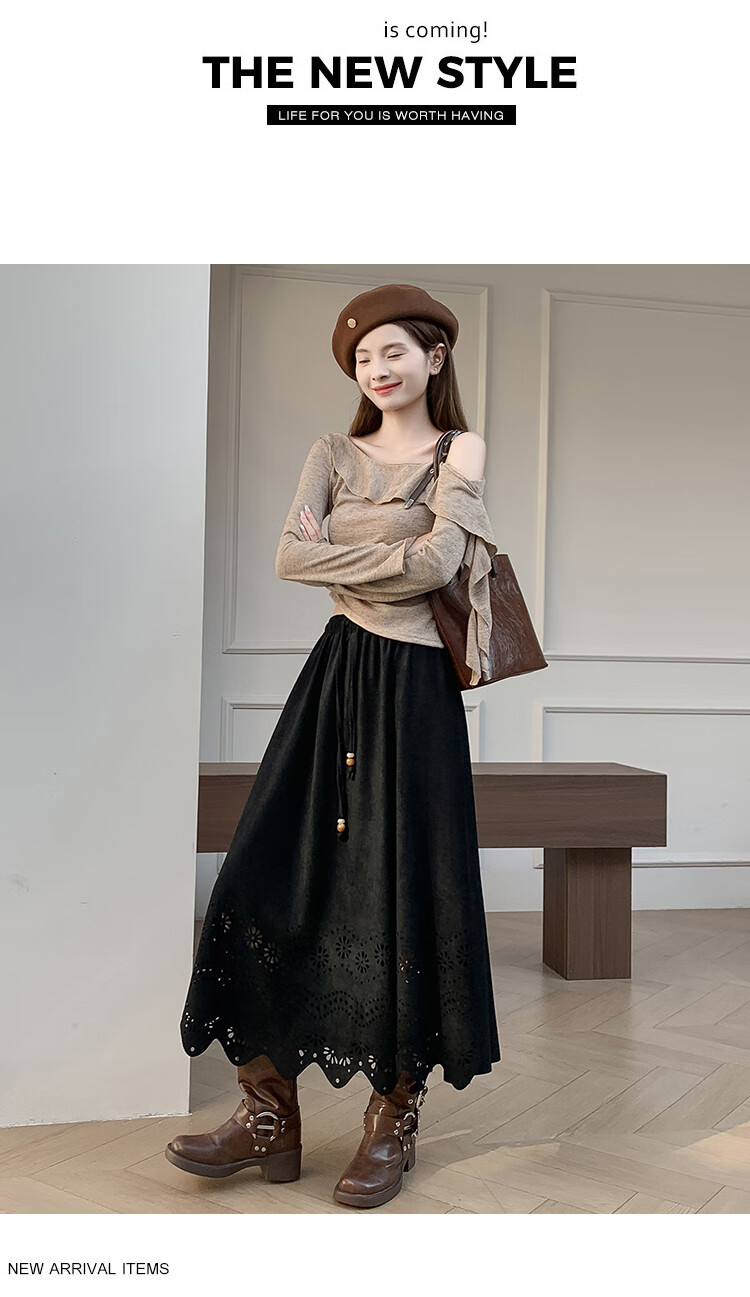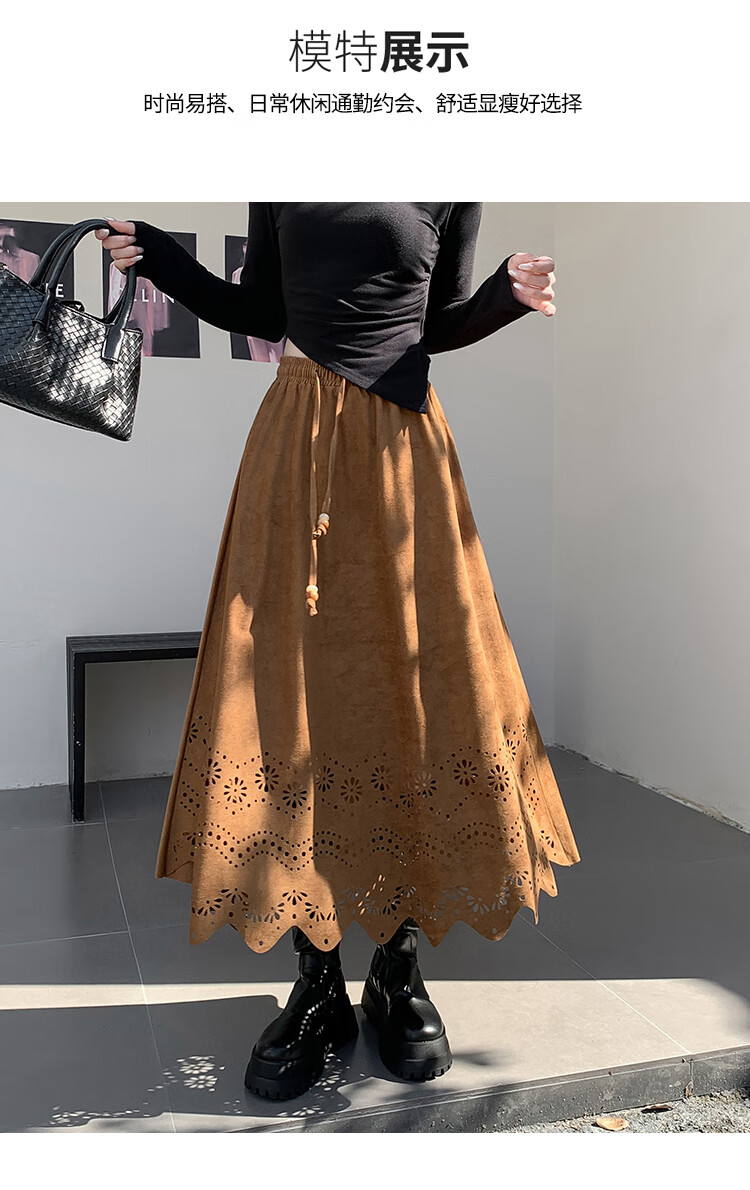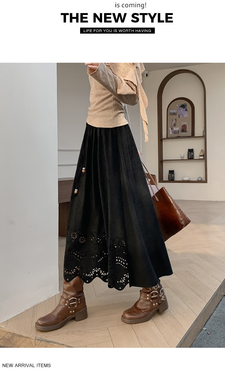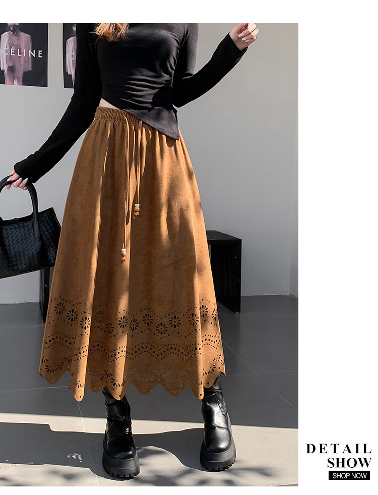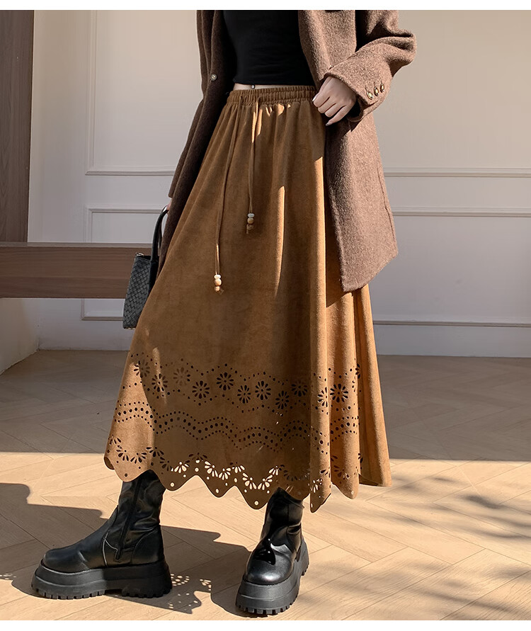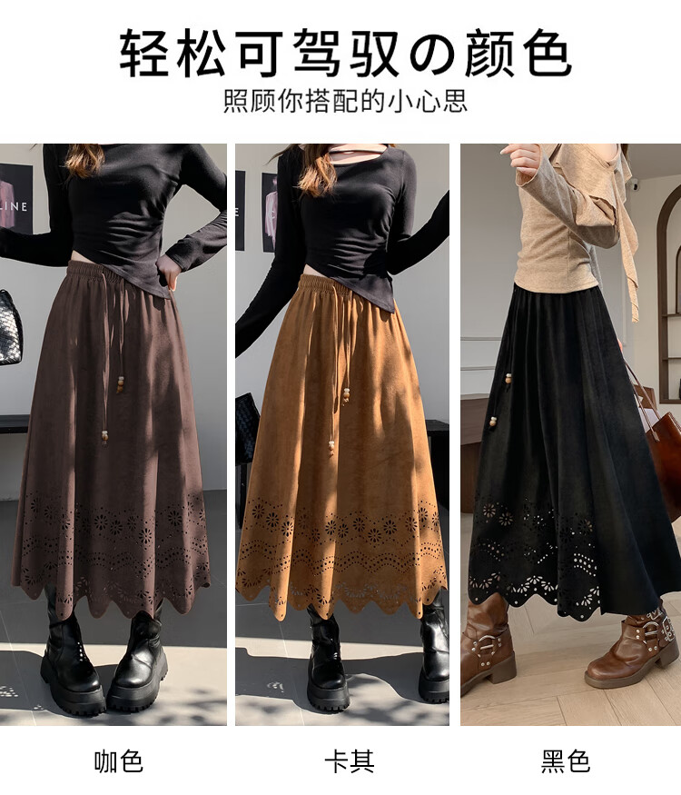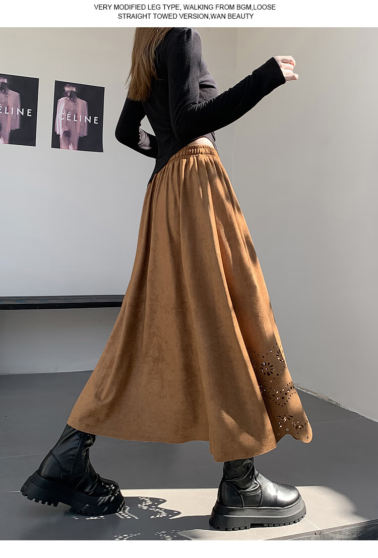 A-line skirt for women 2025 new autumn and winter pleated long skirt, high-end, small, suede, versatile, black, one size