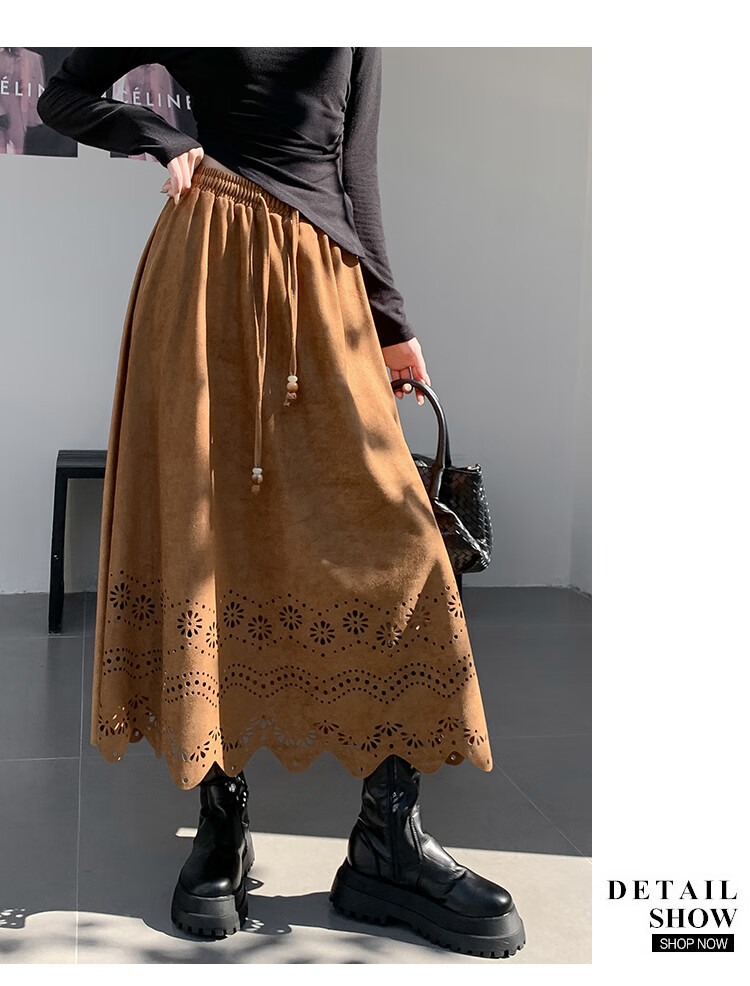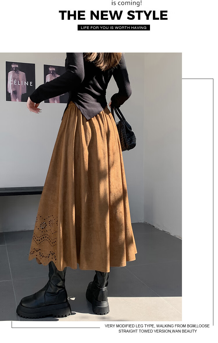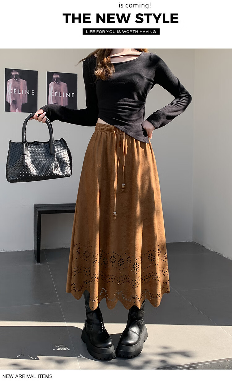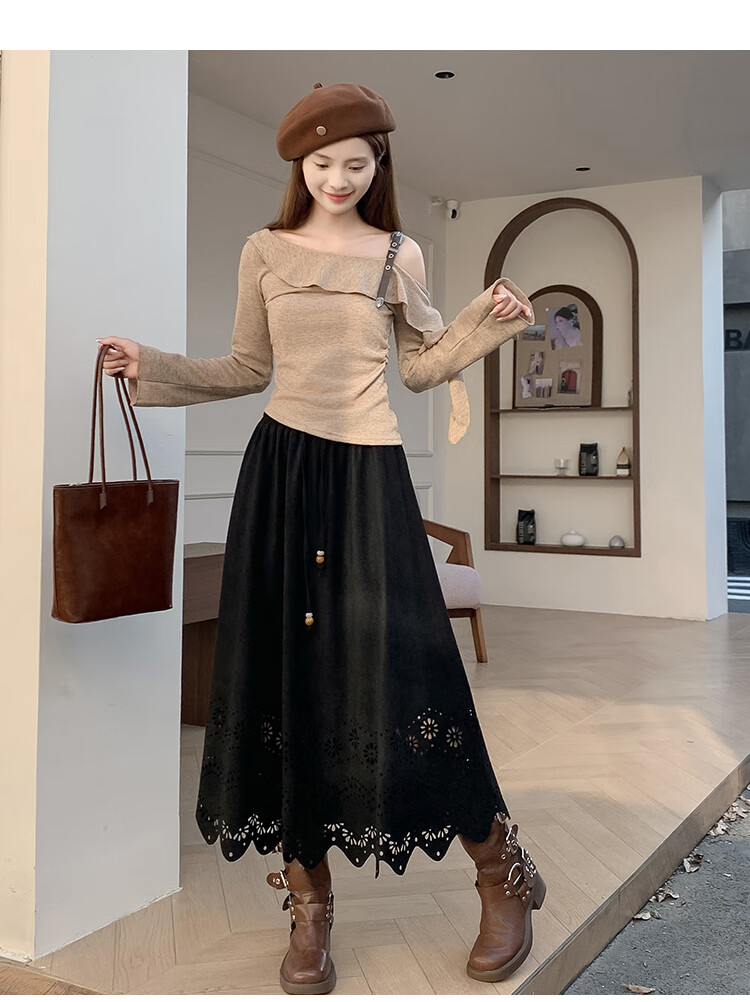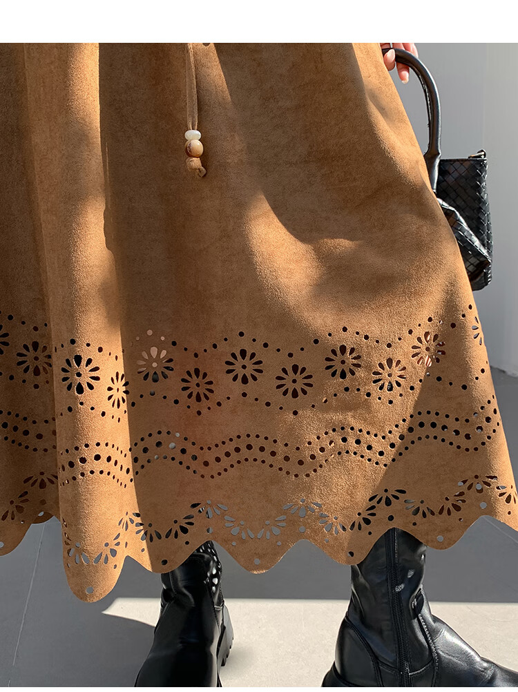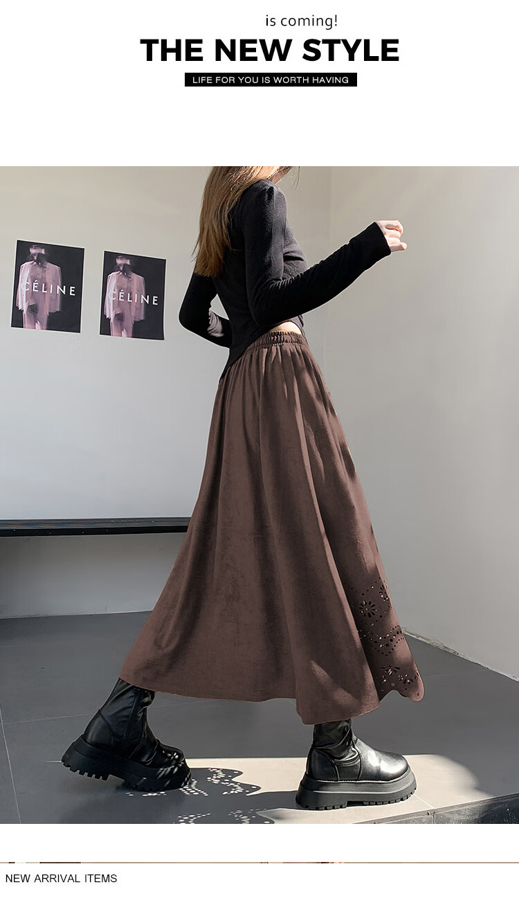 A-line skirt for women 2025 new autumn and winter pleated long skirt, high-end, small, suede, versatile, black, one size