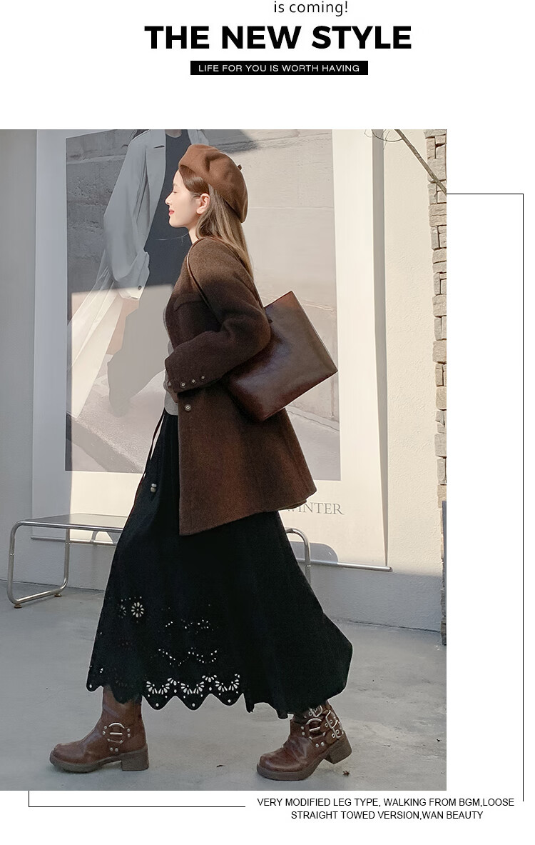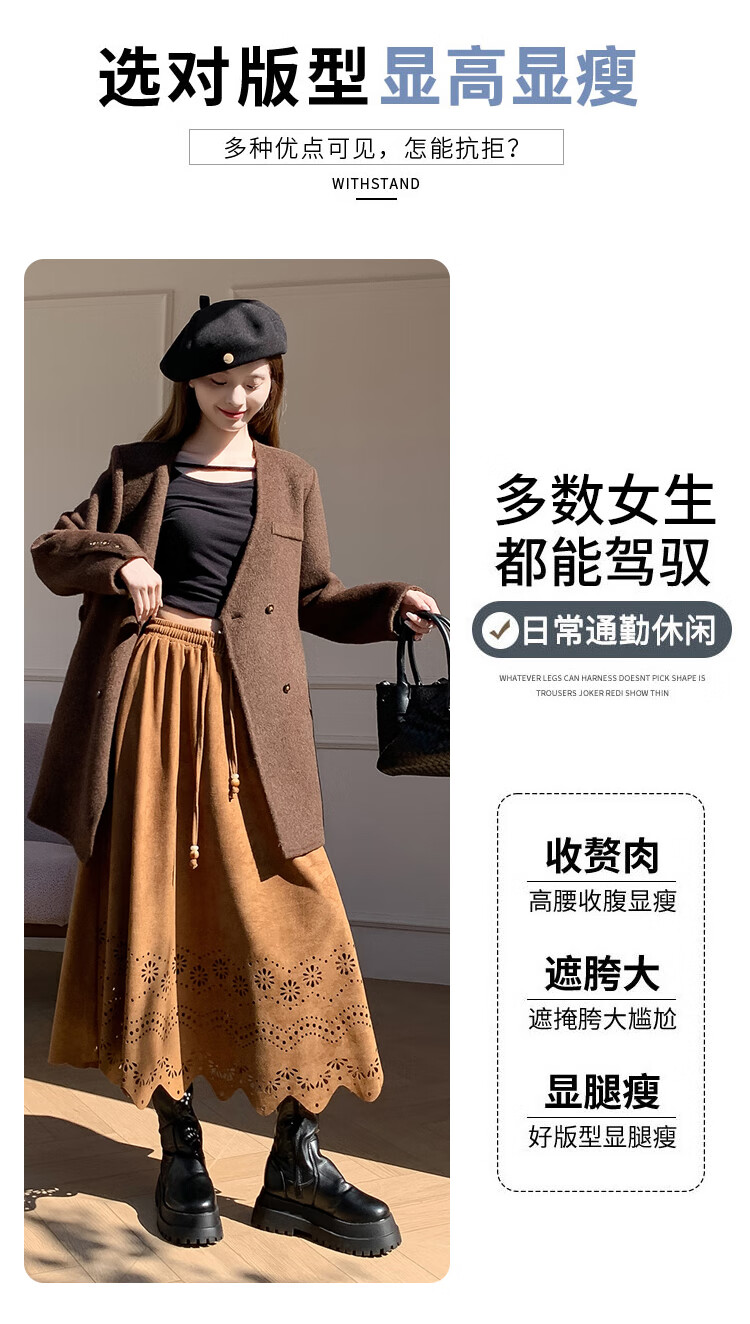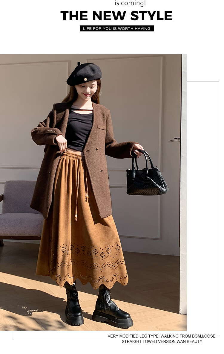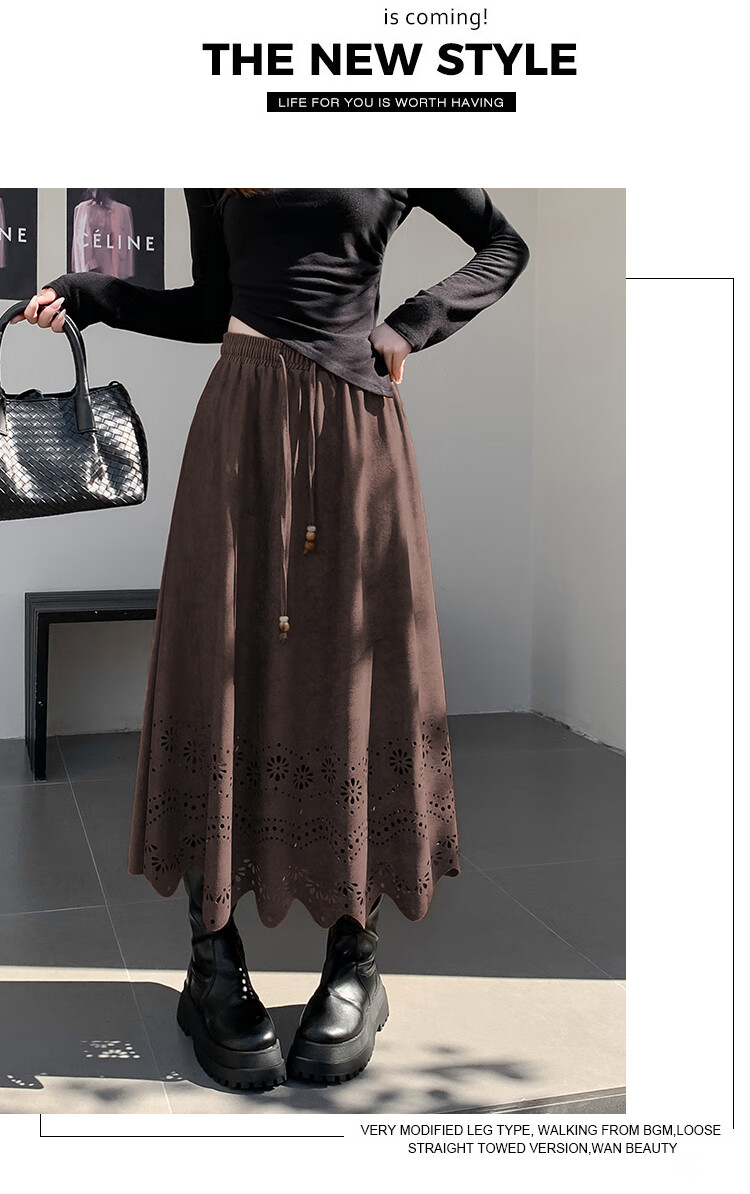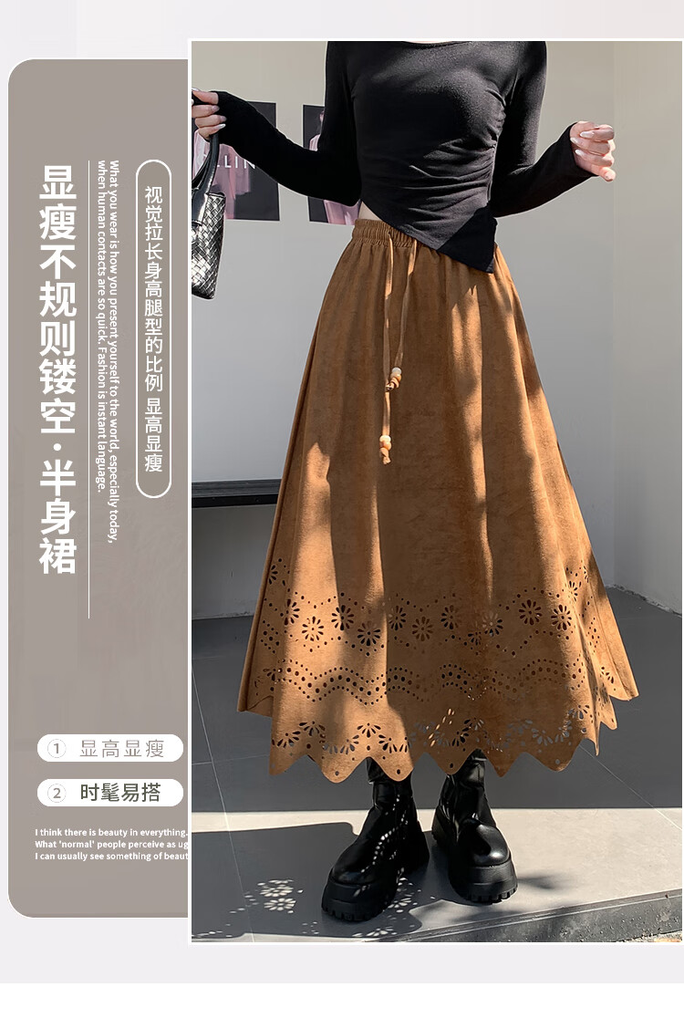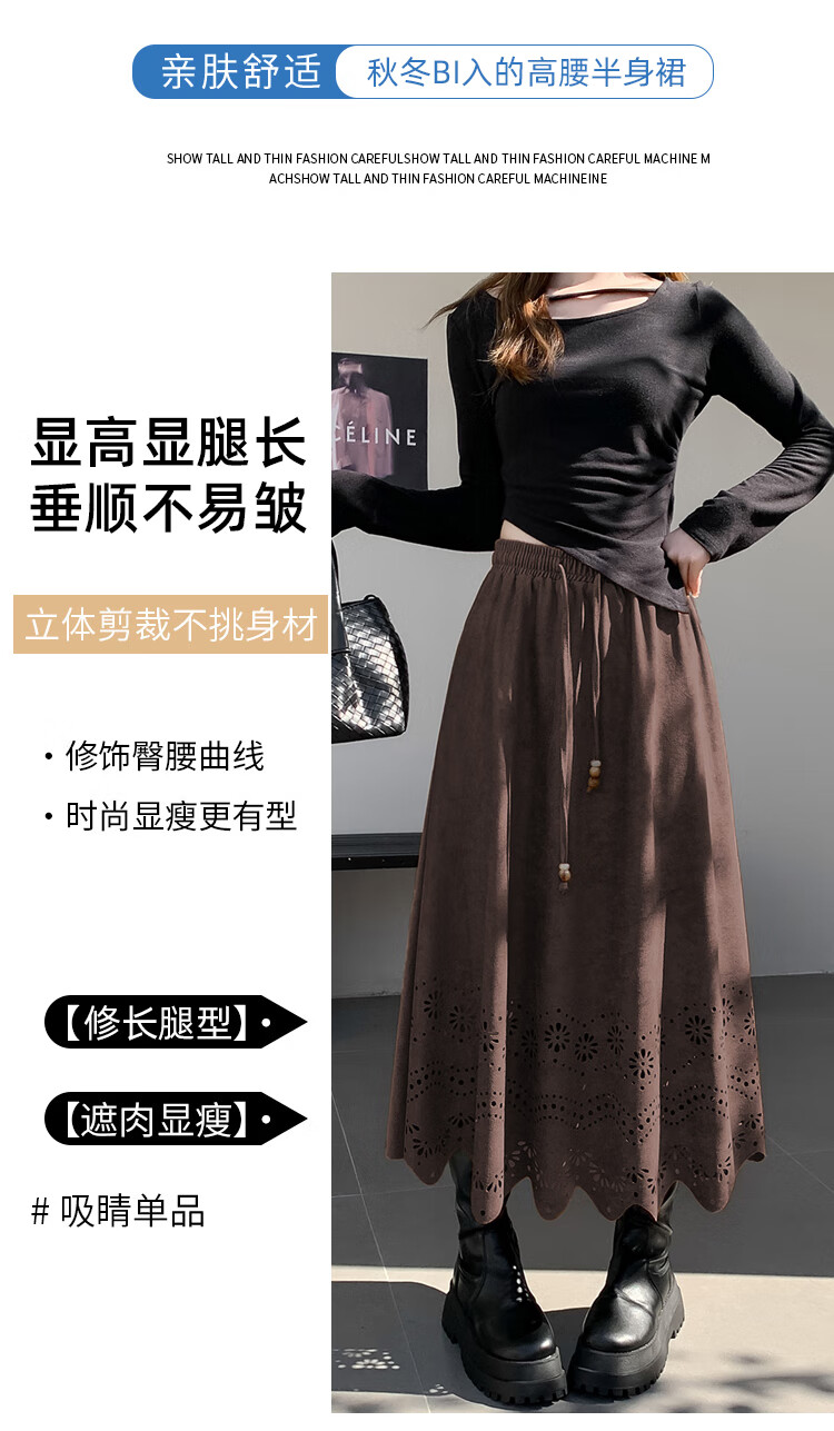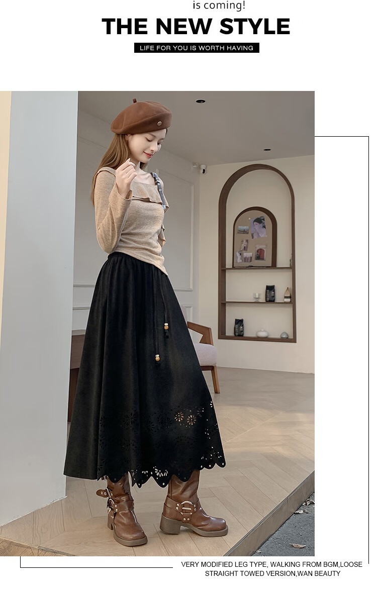 A-line skirt for women 2025 new autumn and winter pleated long skirt, high-end, small, suede, versatile, black, one size