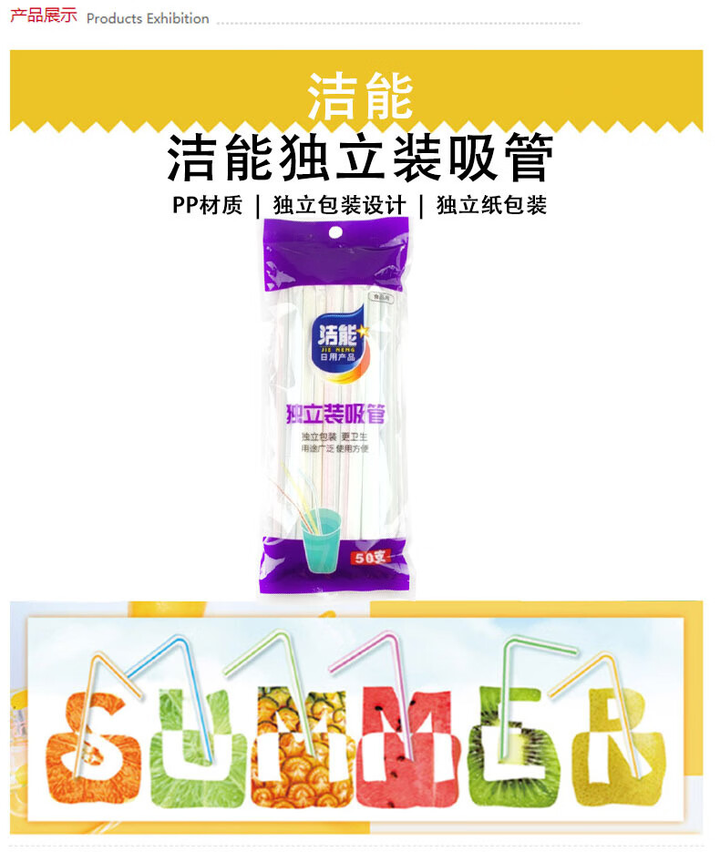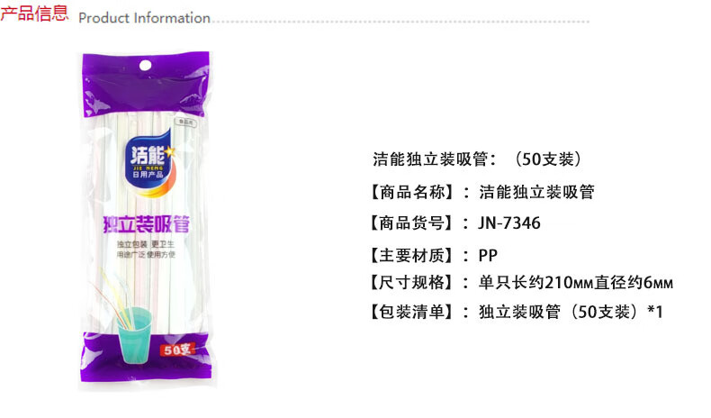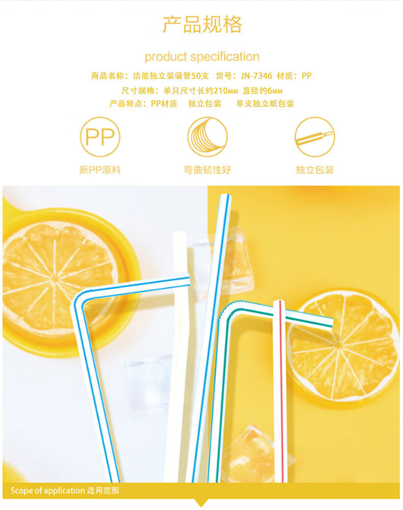 Jie Neng disposable straws individually packaged elbow plastic straws 1 pack 50 pieces